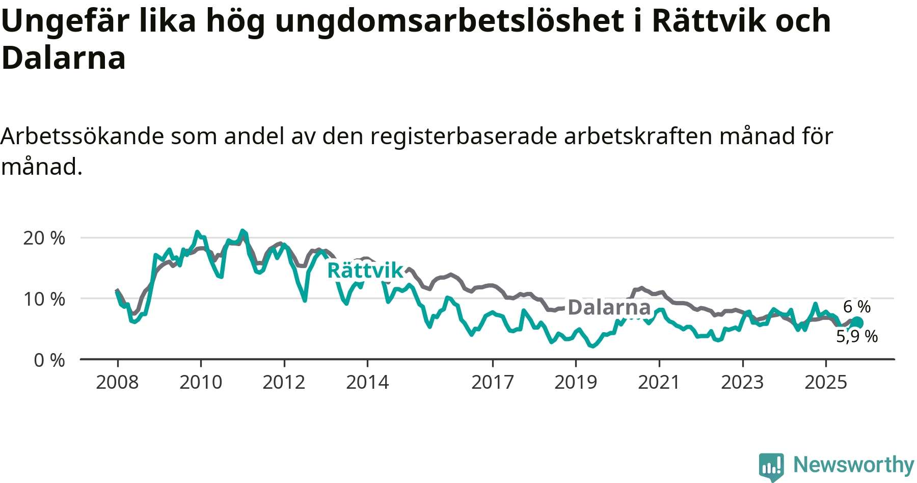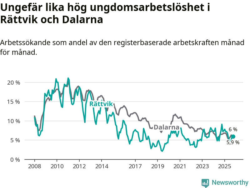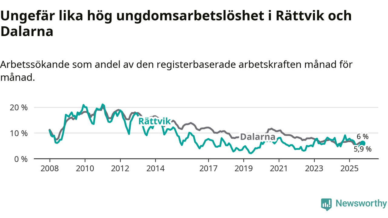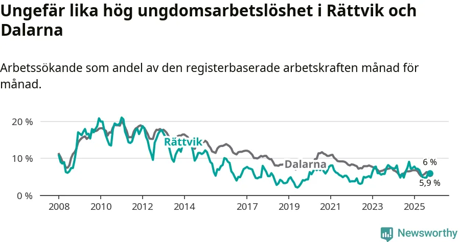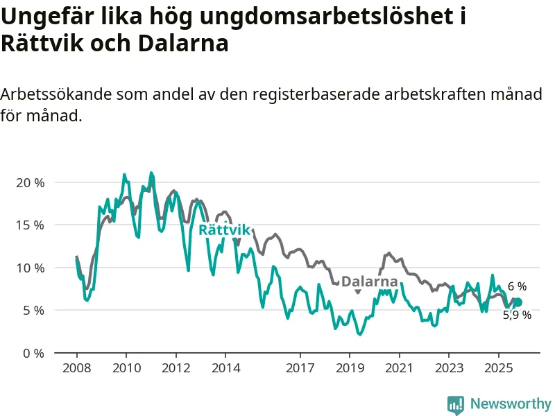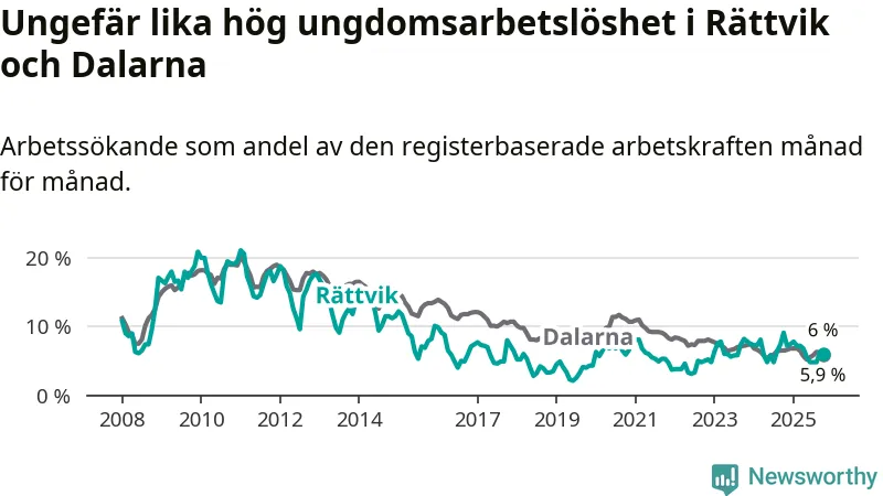 Medan Rättvik har lägre total arbetslöshet än Dalarna, ligger ungdomsarbetslösheten på i stort sett samma nivå.