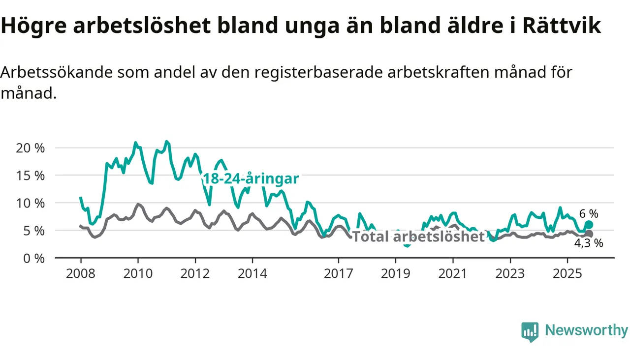 | Bland ungdomar | 6,0 % | −3,1 % ▼ | 5,9 % | −0,6 % ▼ | 7,8 % | −0,5 % ▼ |