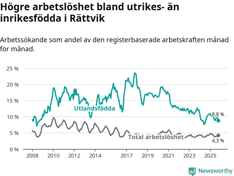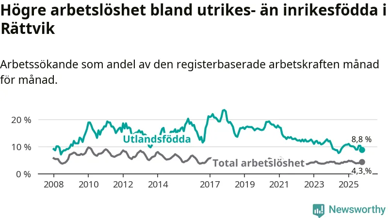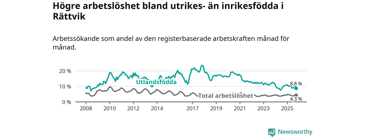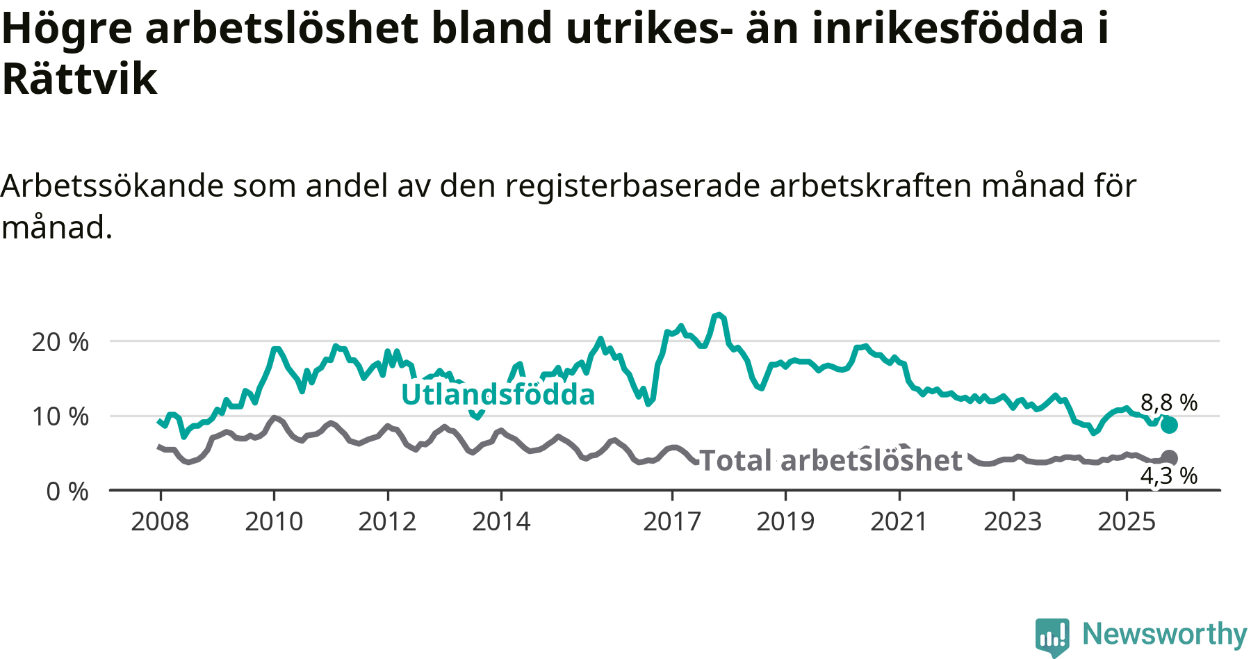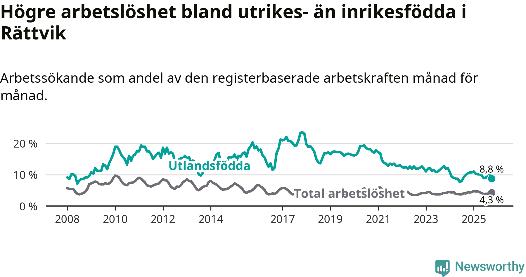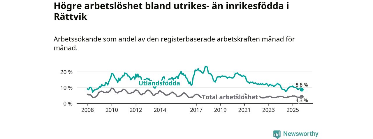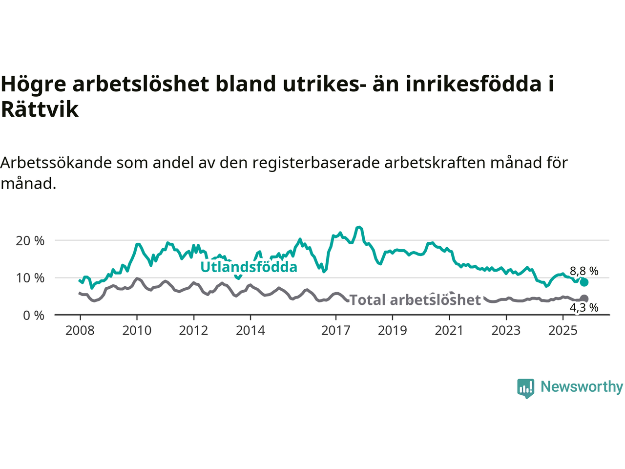 Läs mer om arbetslösheten bland utlandsfödda längre ner i den här texten.