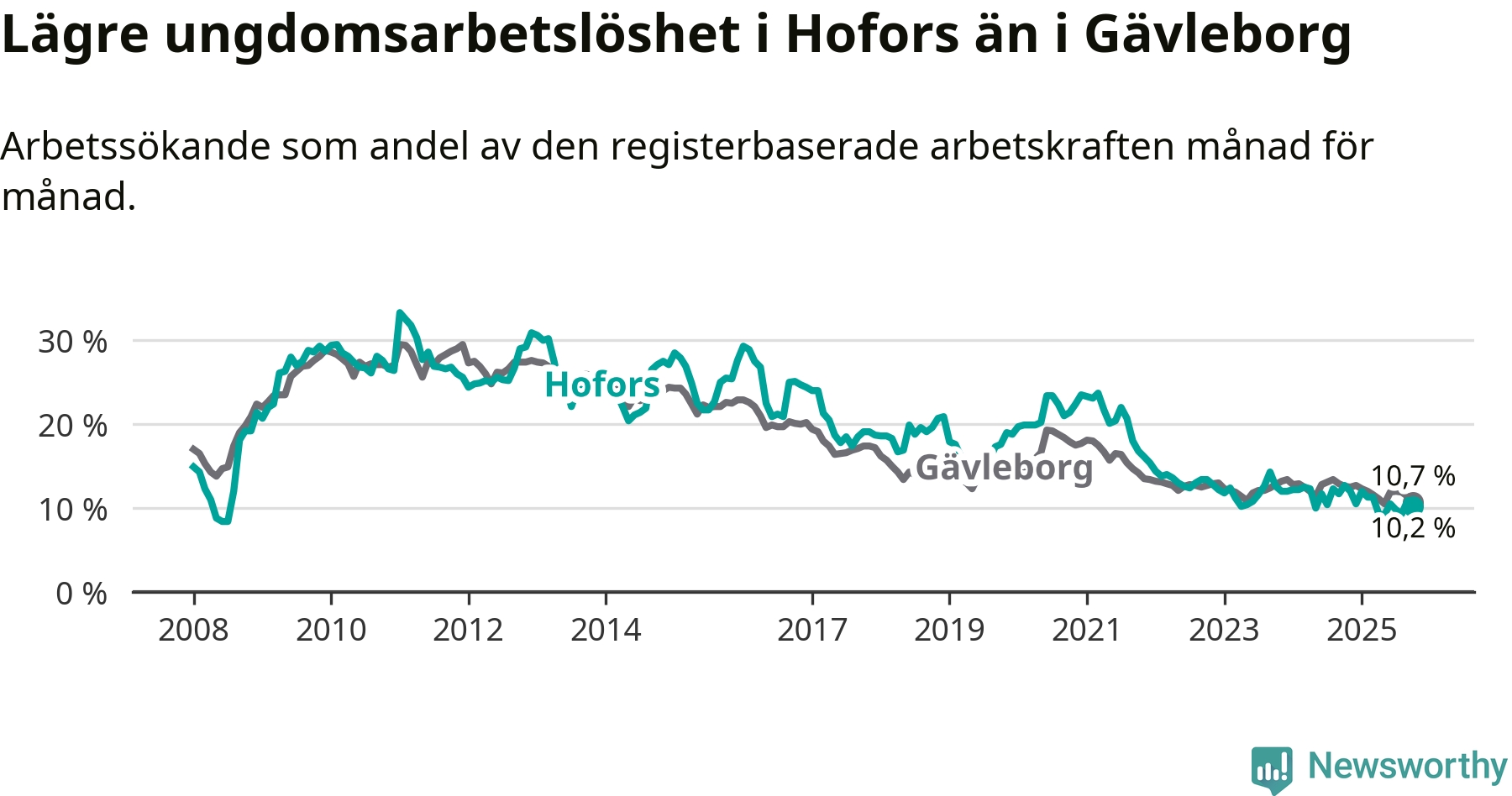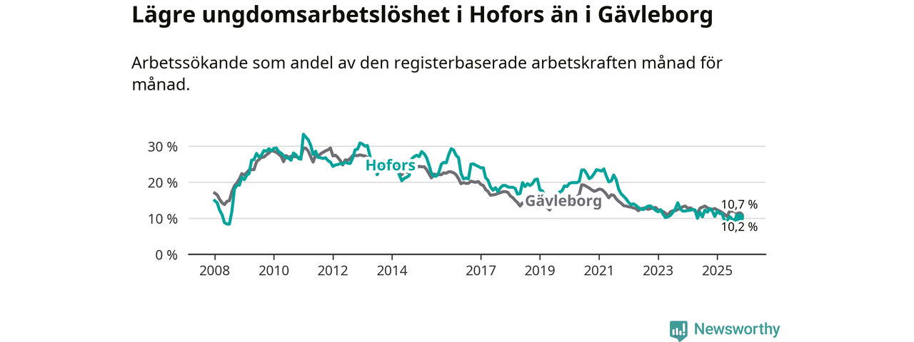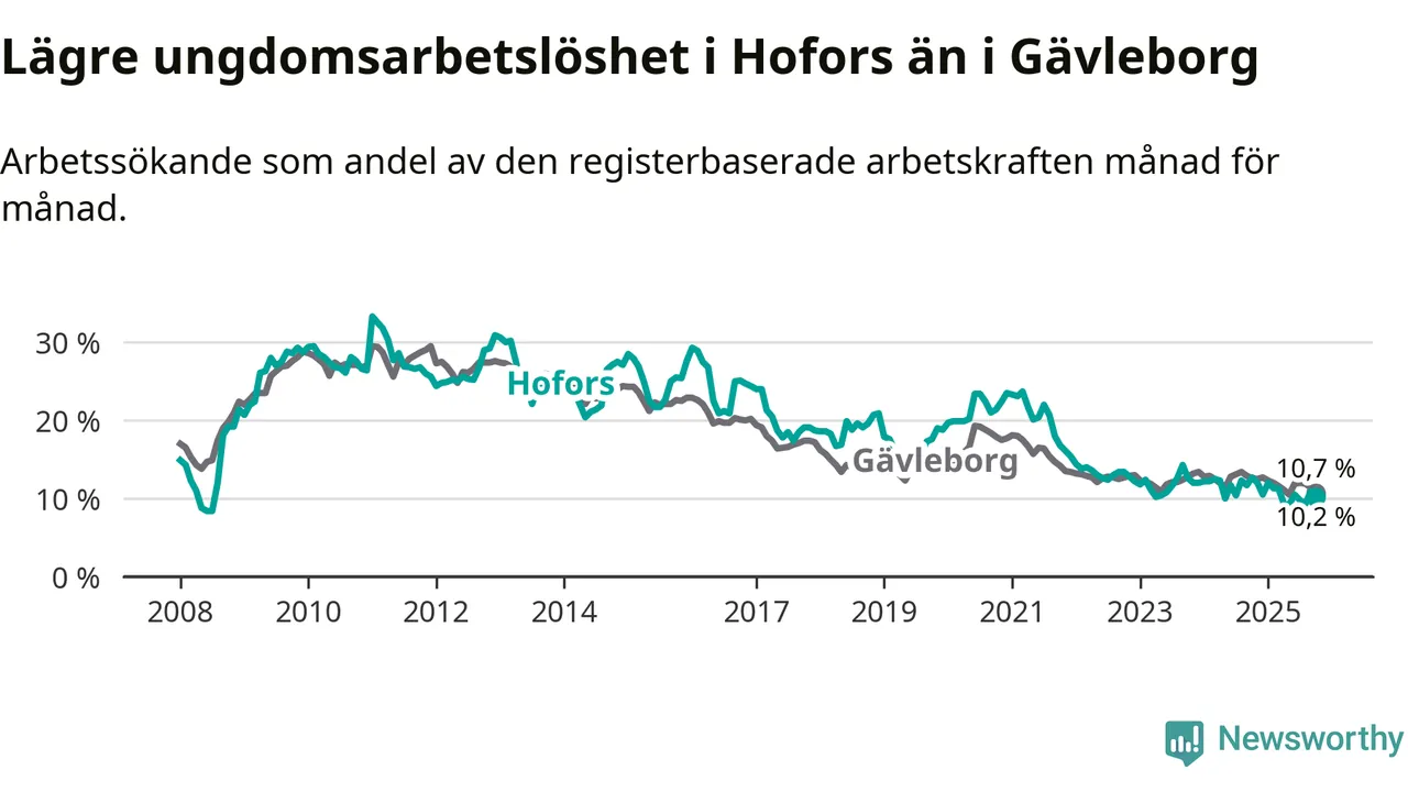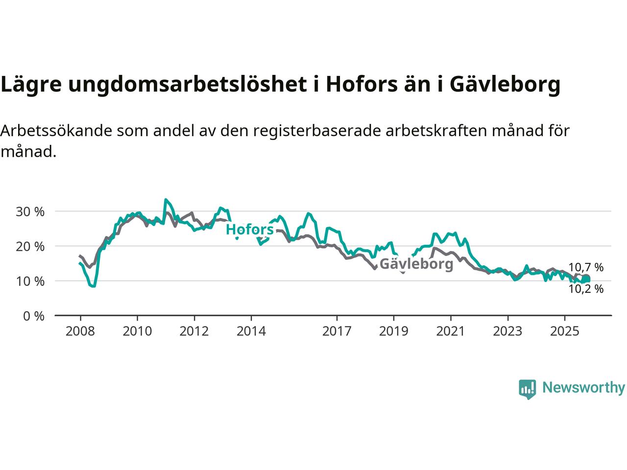 Graf: Arbetslöshet bland unga i Hofors kommun och Gävleborgs län