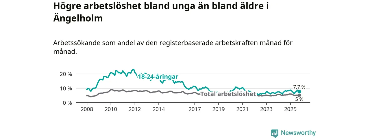 Graf: Arbetslöshet bland unga i Ängelholms kommun och Skåne län