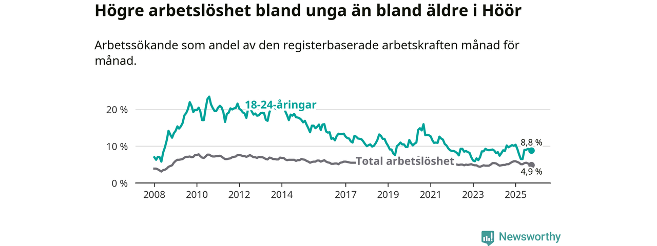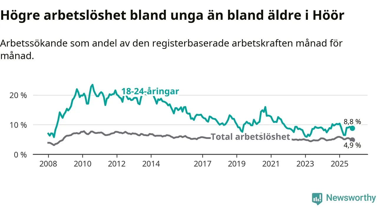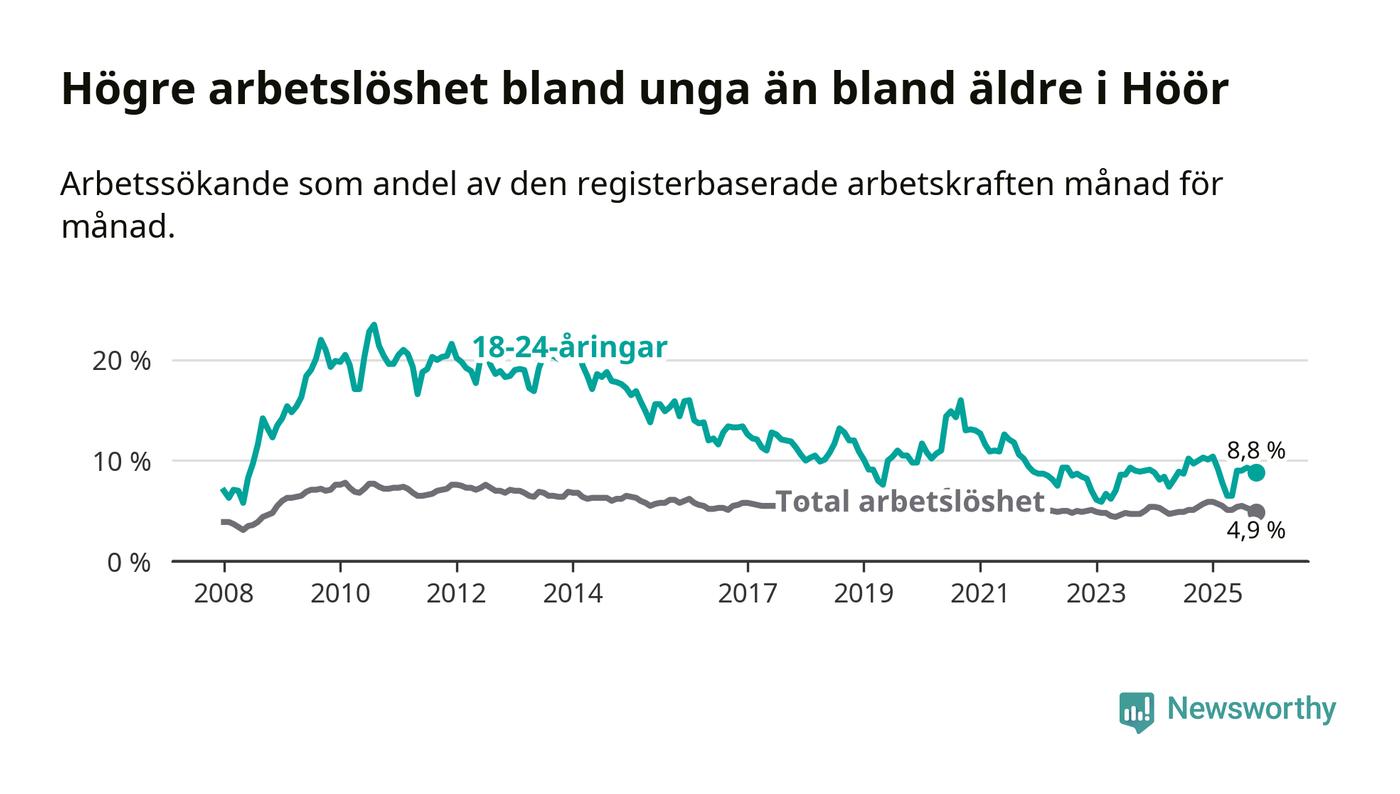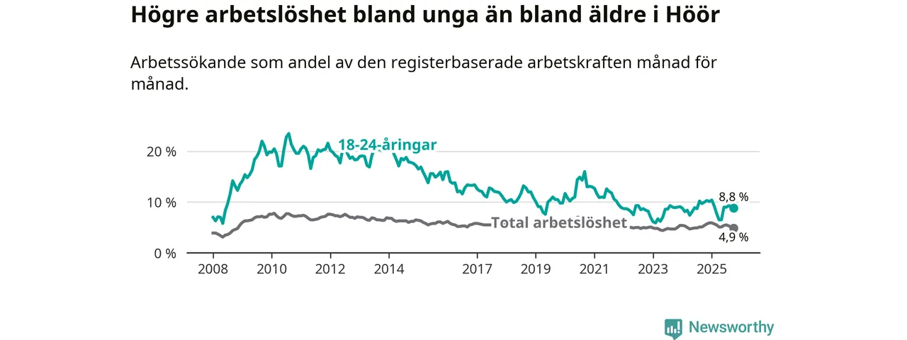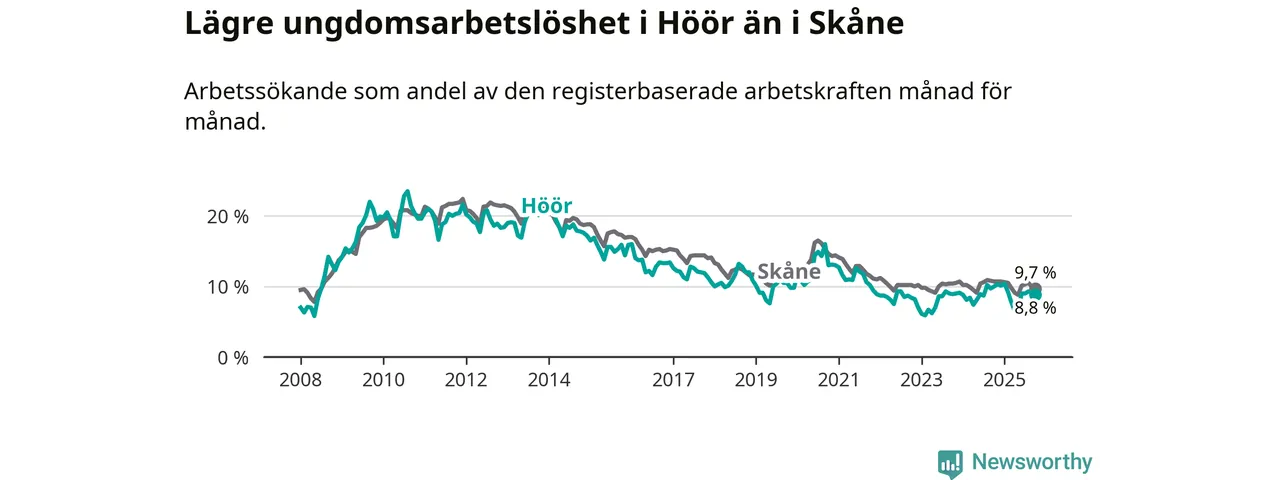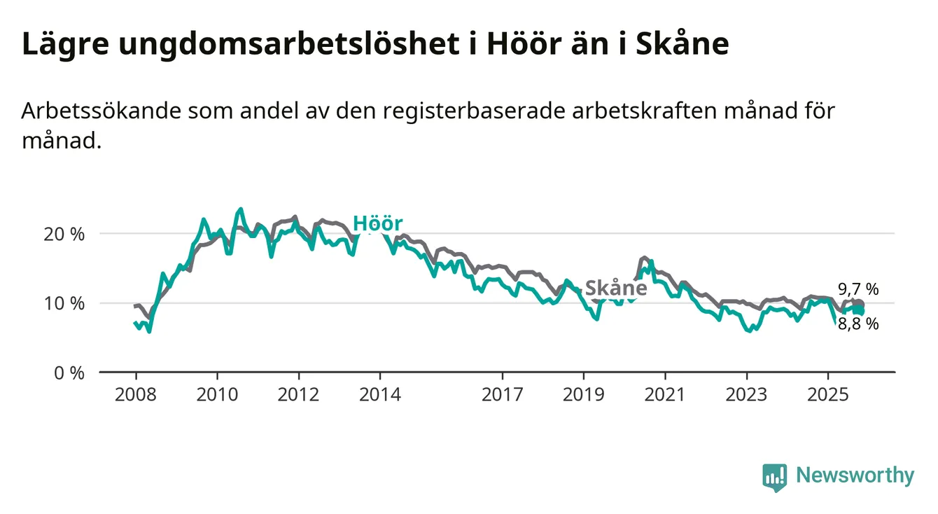 Graf: Arbetslöshet bland unga i Höörs kommun och Skåne län