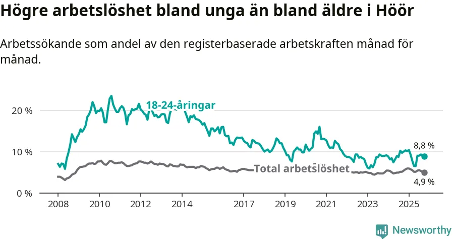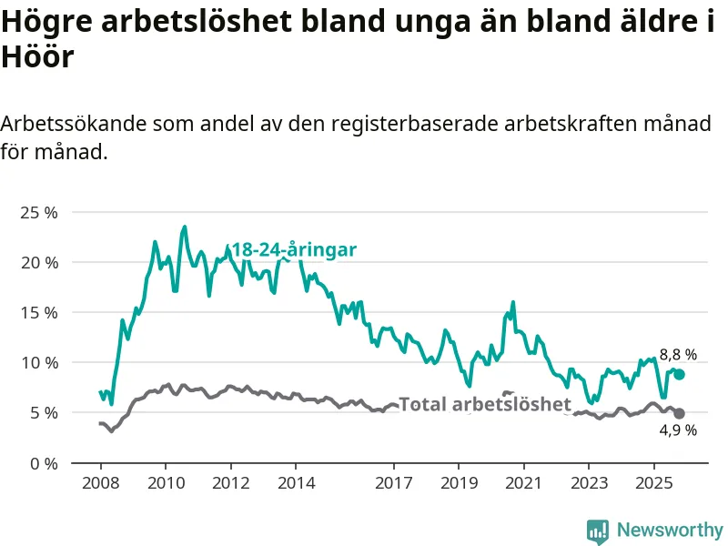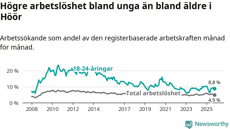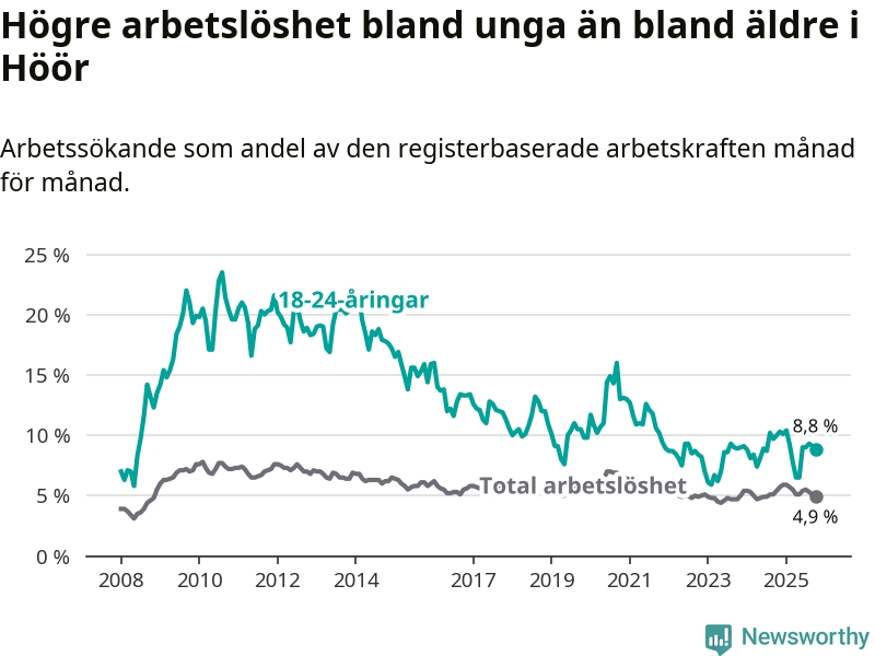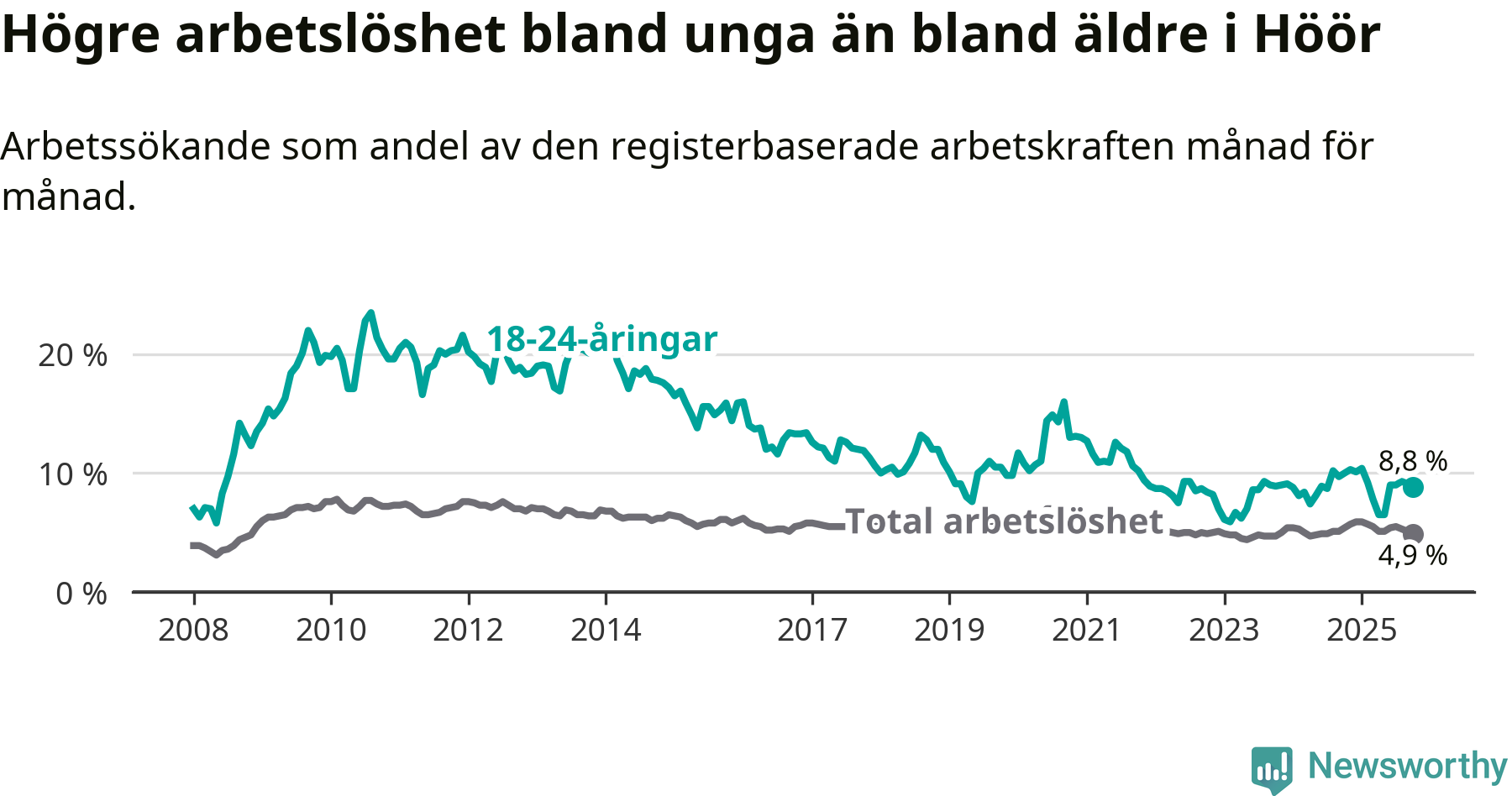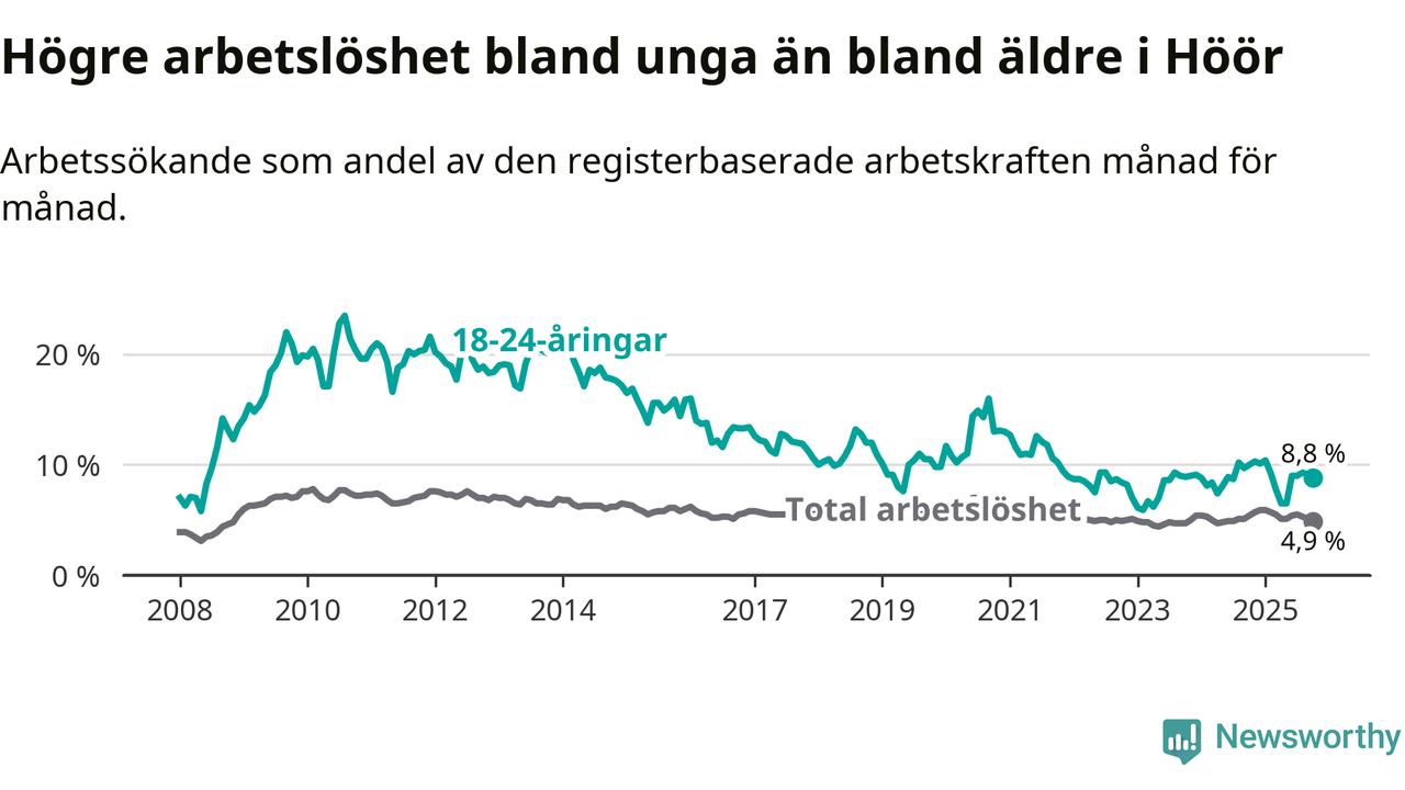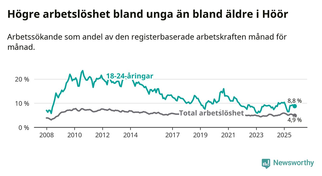 Graf: Arbetslöshet bland unga i Höörs kommun och Skåne län