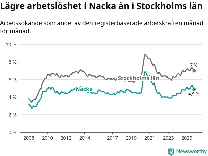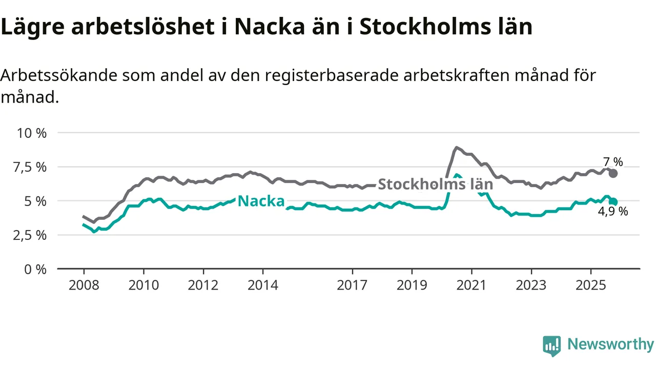 Graf: Arbetslöshet i Nacka kommun och Stockholms län