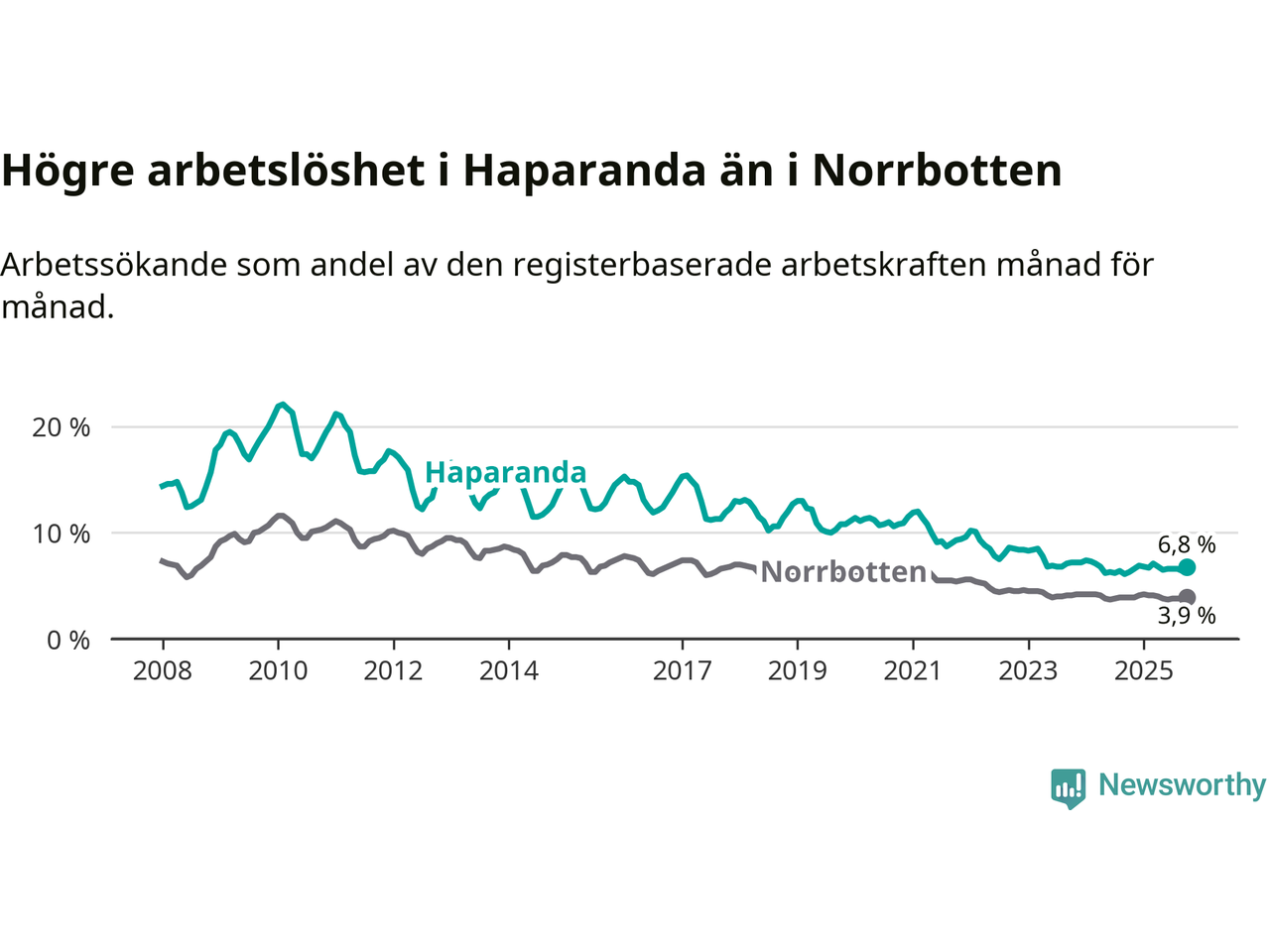 | Haparanda | 6,8 % | +0,5 % ▲ |