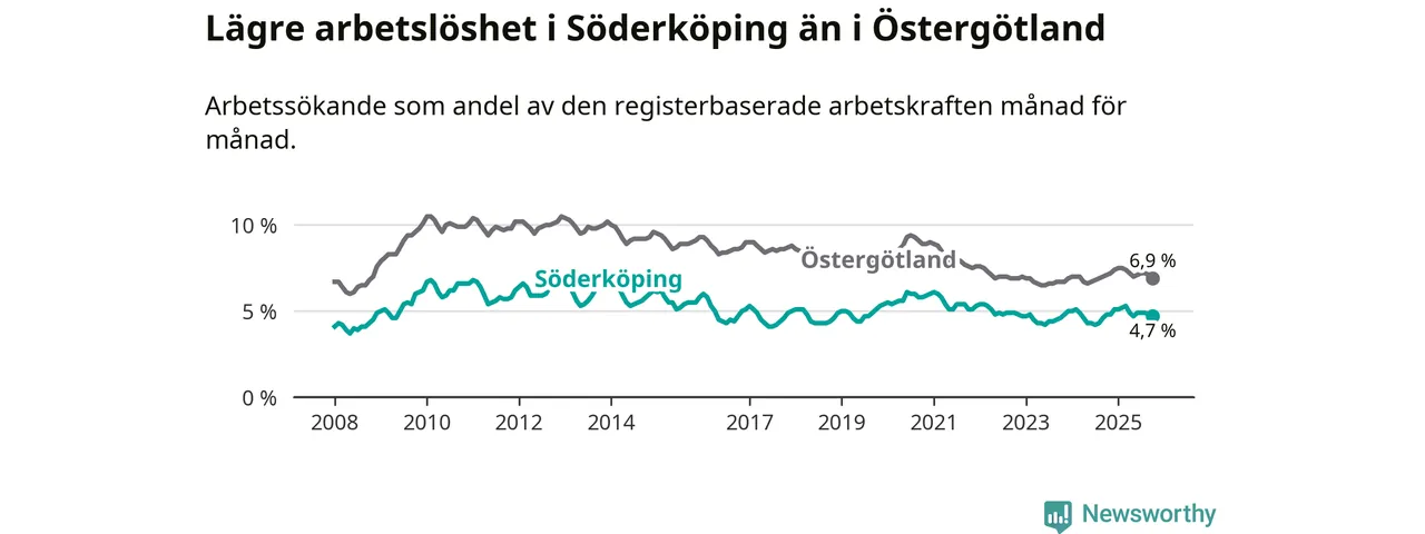 Sedan november 2024 har arbetslösheten i Söderköpings kommun ökat, men i oktober vände utvecklingen då andelen arbetslösa sjönk något jämfört med året innan.