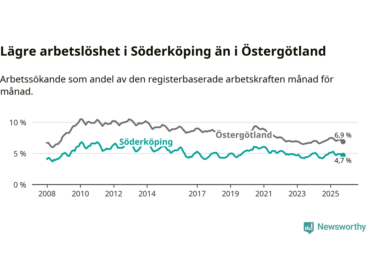 | Söderköping | 4,7 % | −0,1 % ▼ |