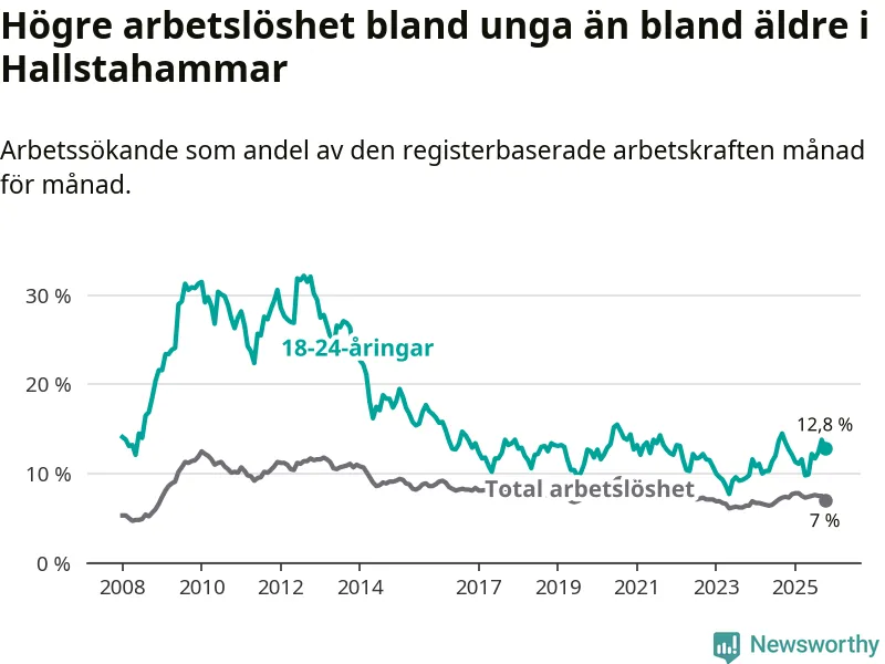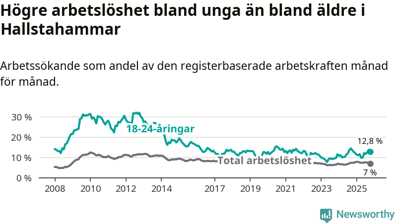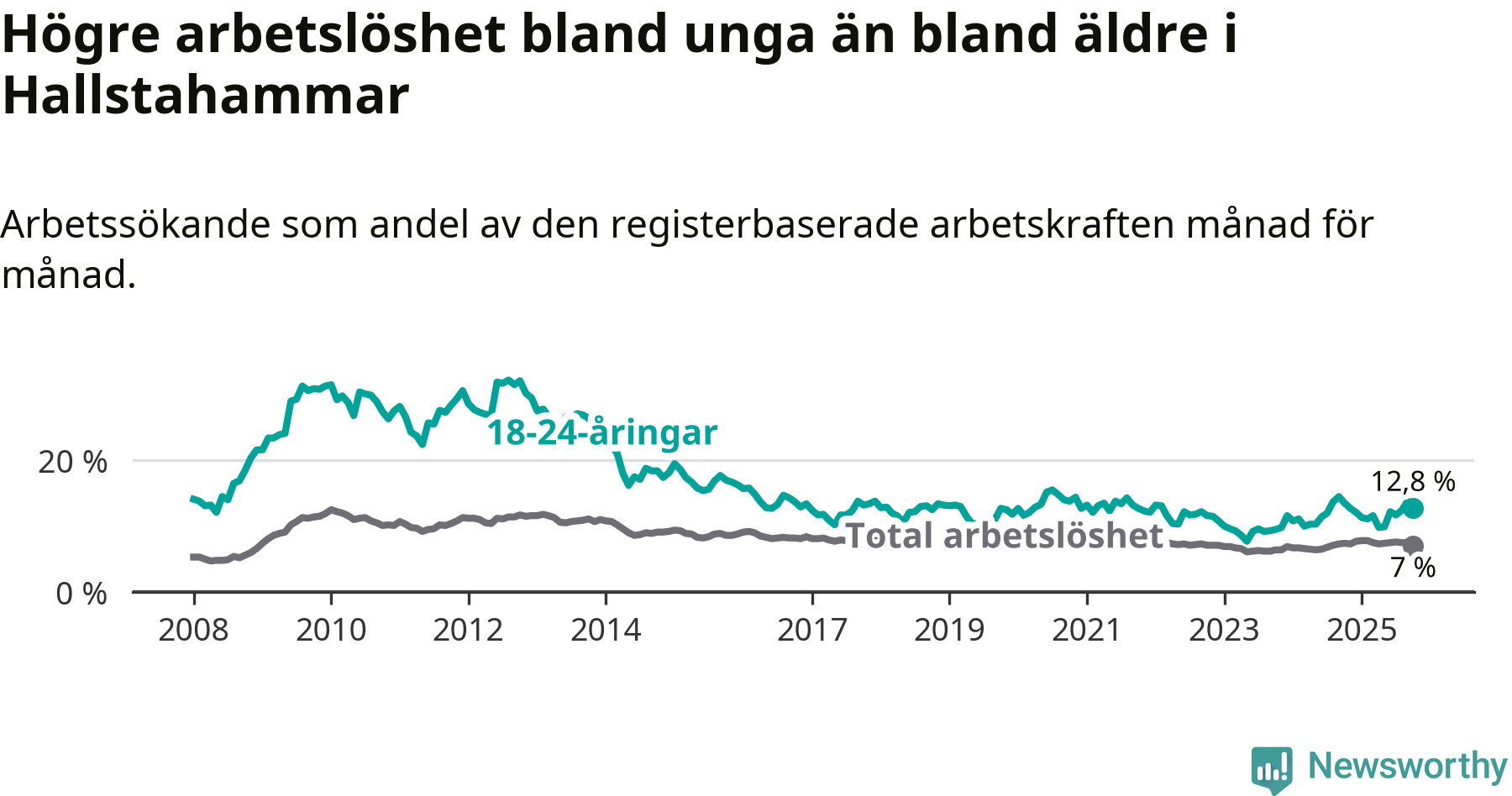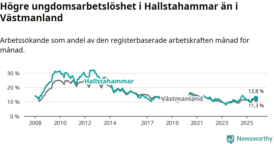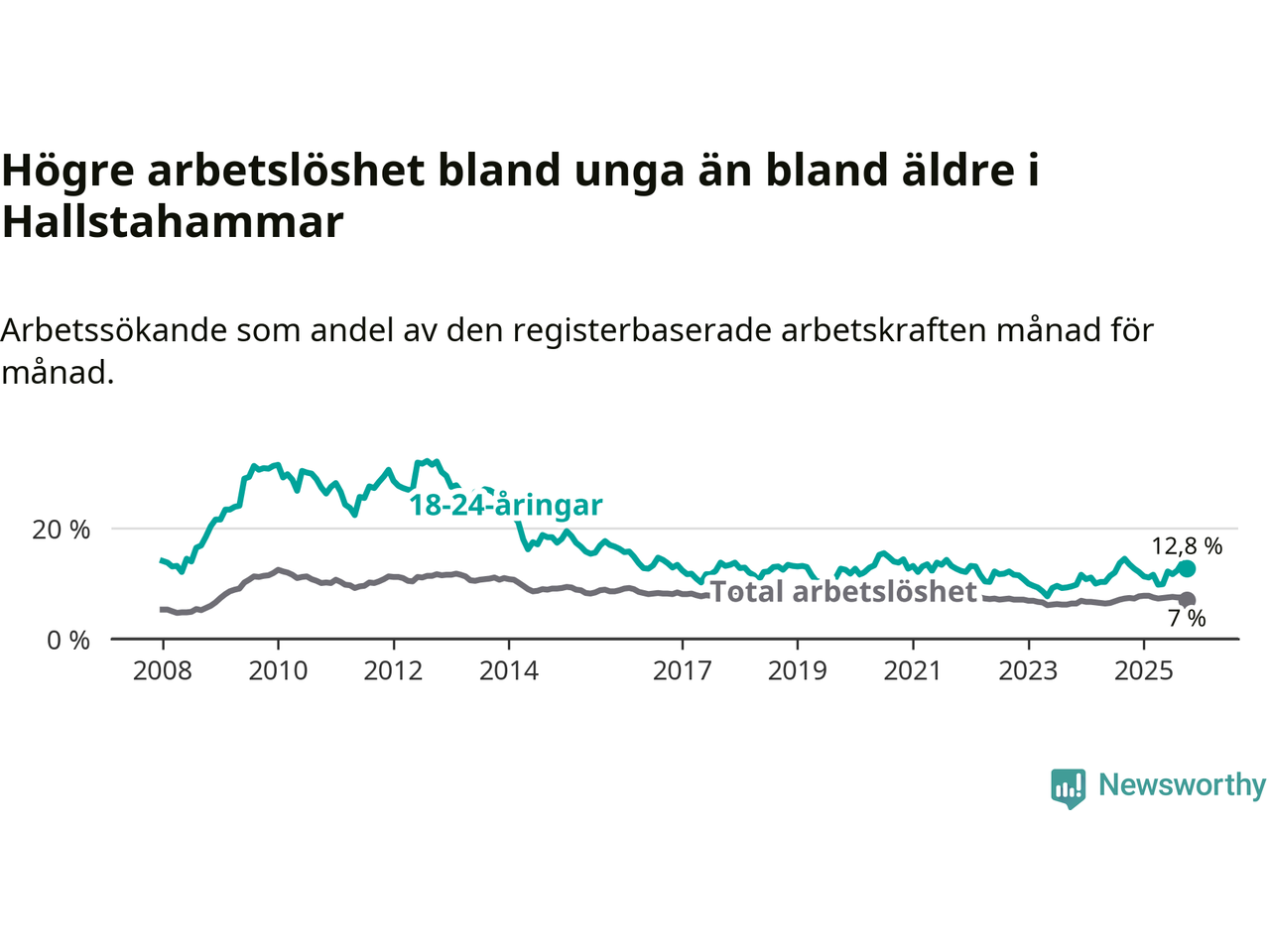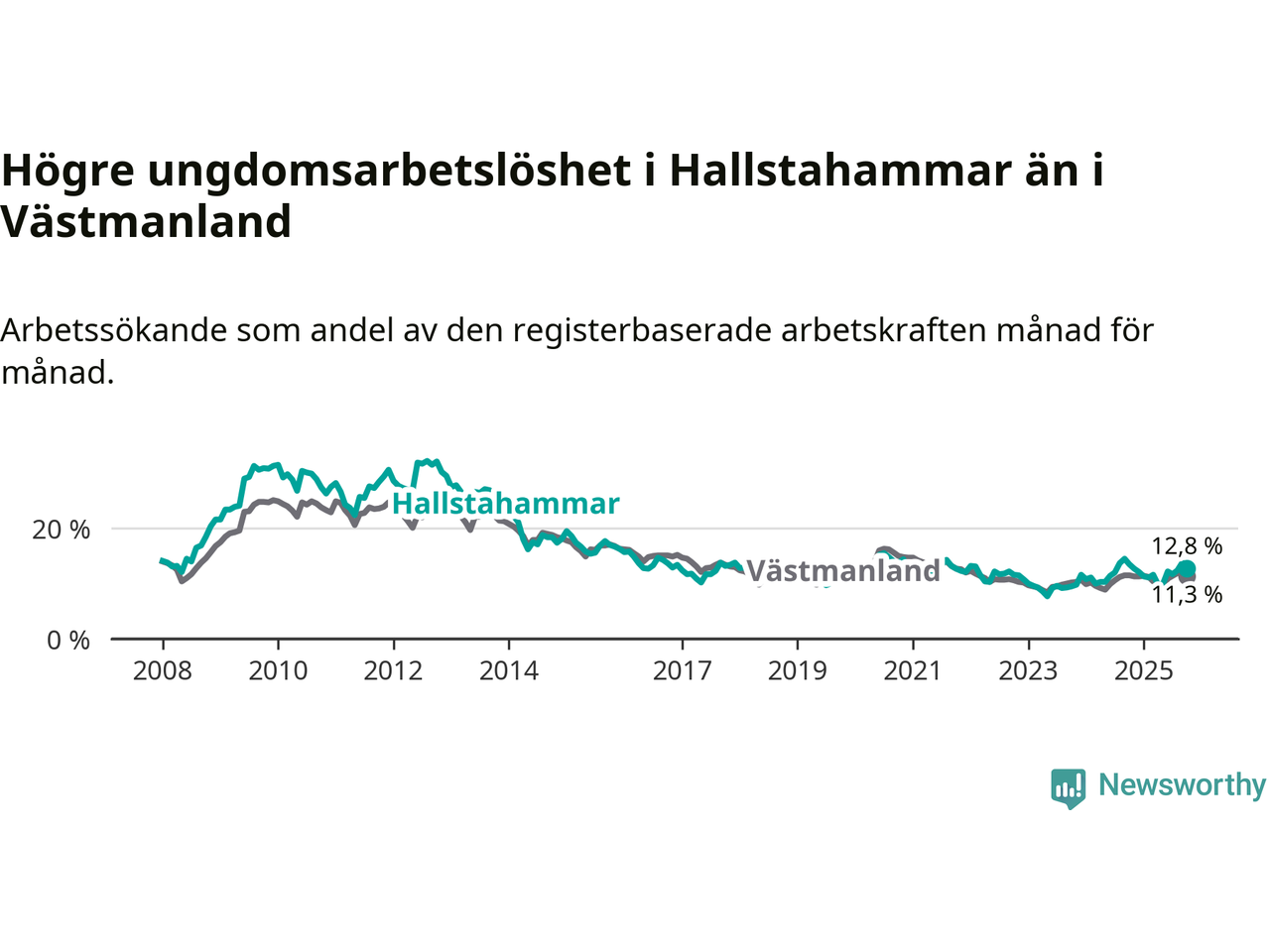 Medan Hallstahammar har lägre total arbetslöshet än Västmanland, ligger ungdomsarbetslösheten 1,5 procentenheter högre i Hallstahammar.