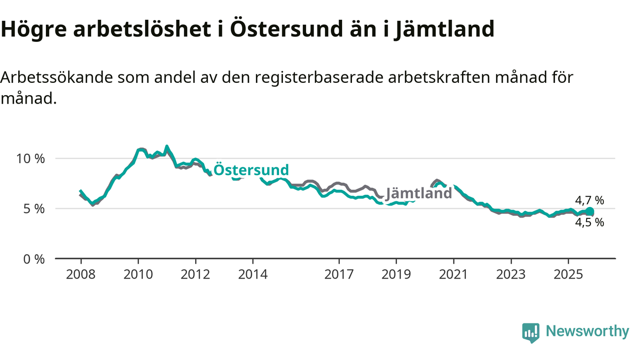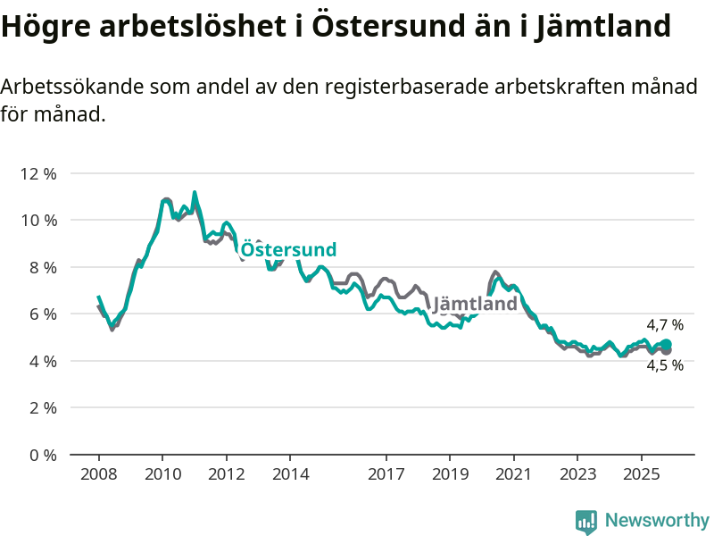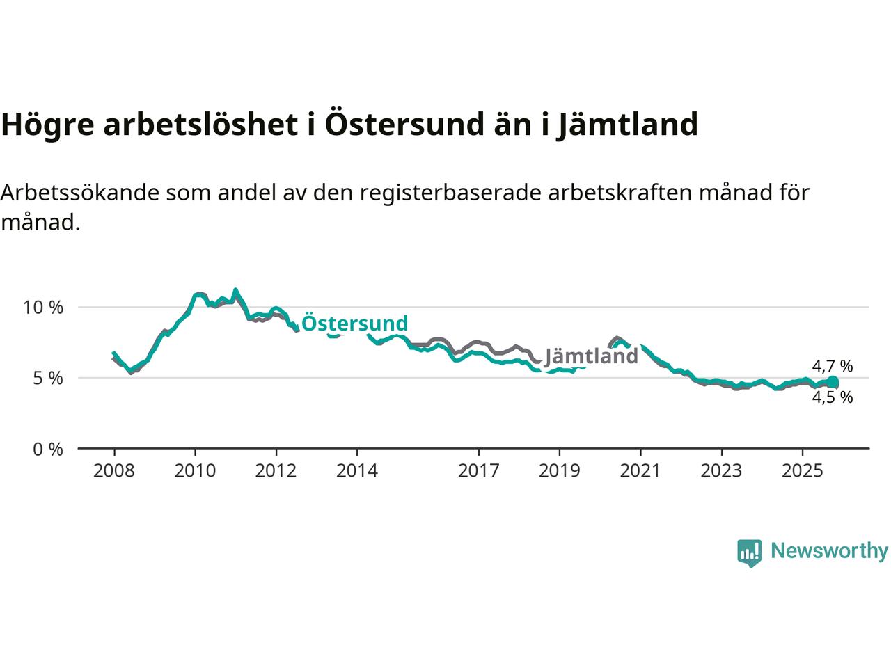 Graf: Arbetslöshet i Östersunds kommun och Jämtlands län