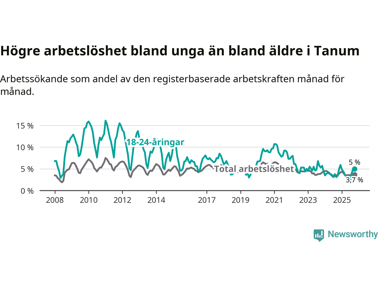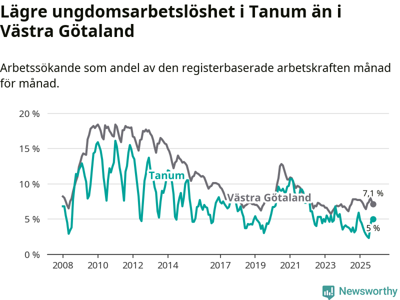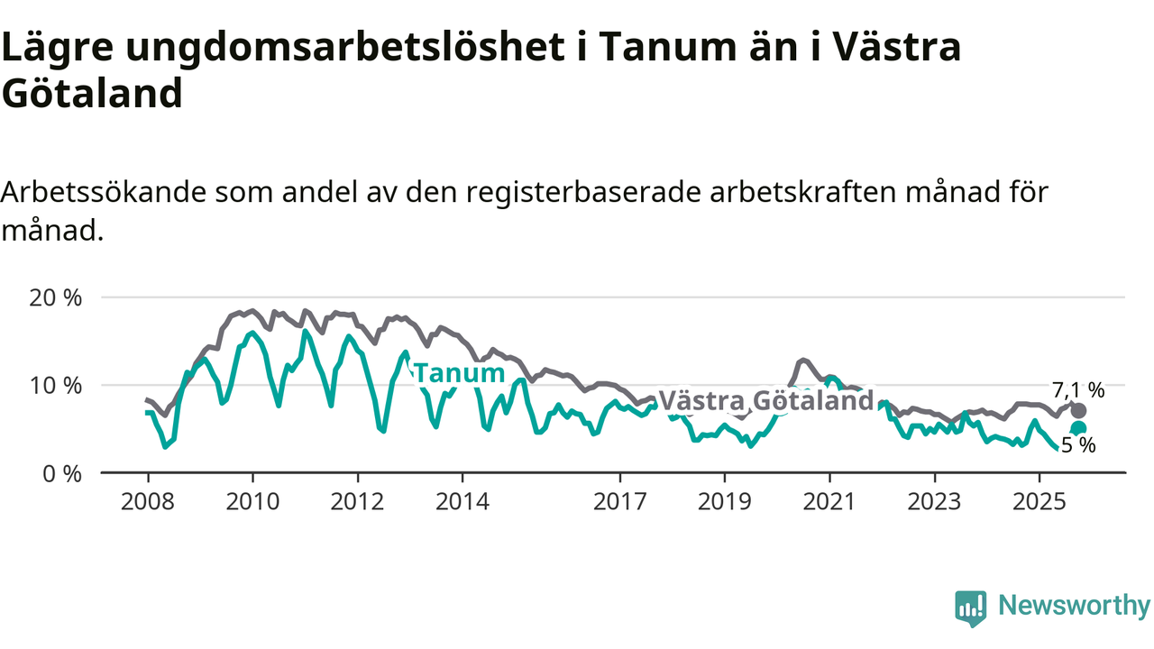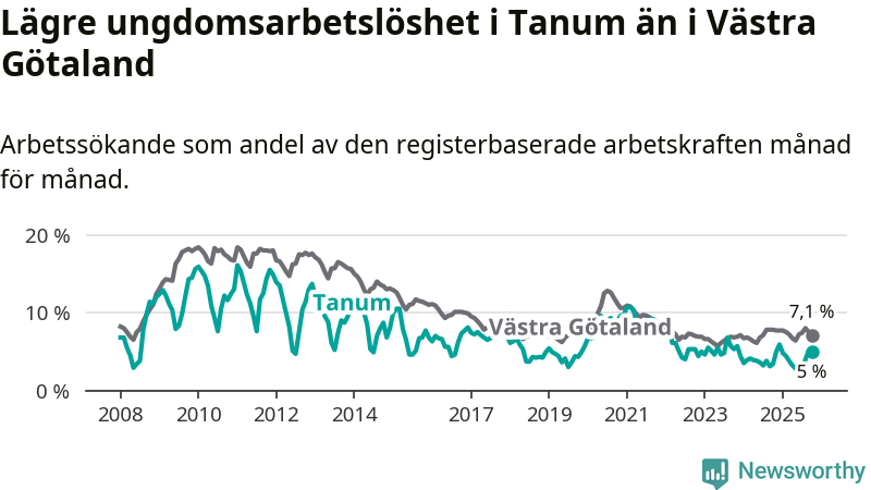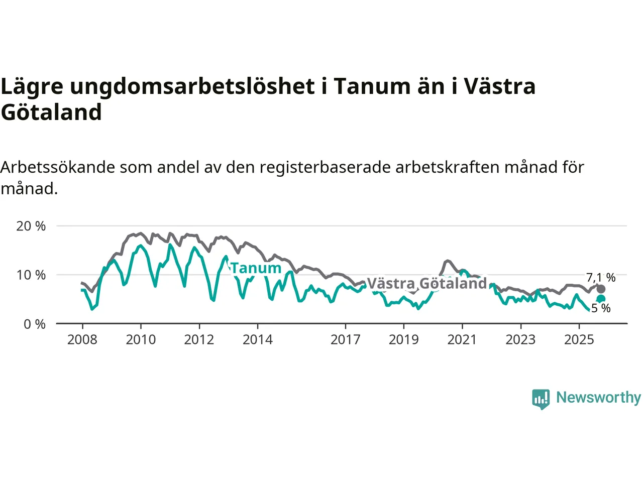 Graf: Arbetslöshet bland unga i Tanums kommun och Västra Götalands län