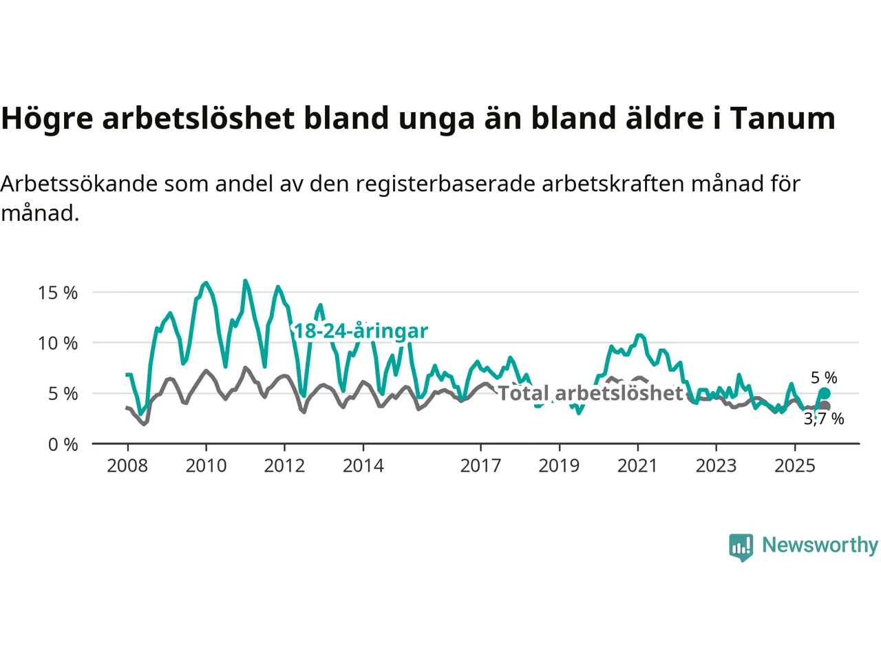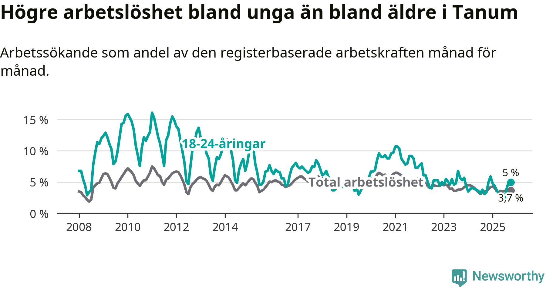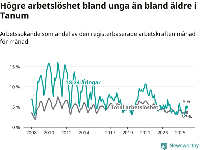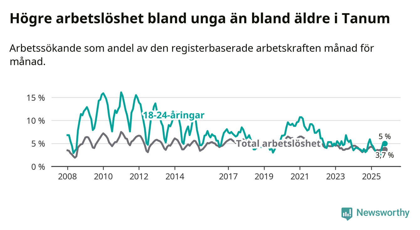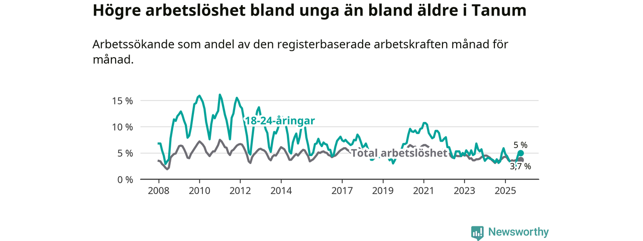 Graf: Arbetslöshet bland unga i Tanums kommun och Västra Götalands län