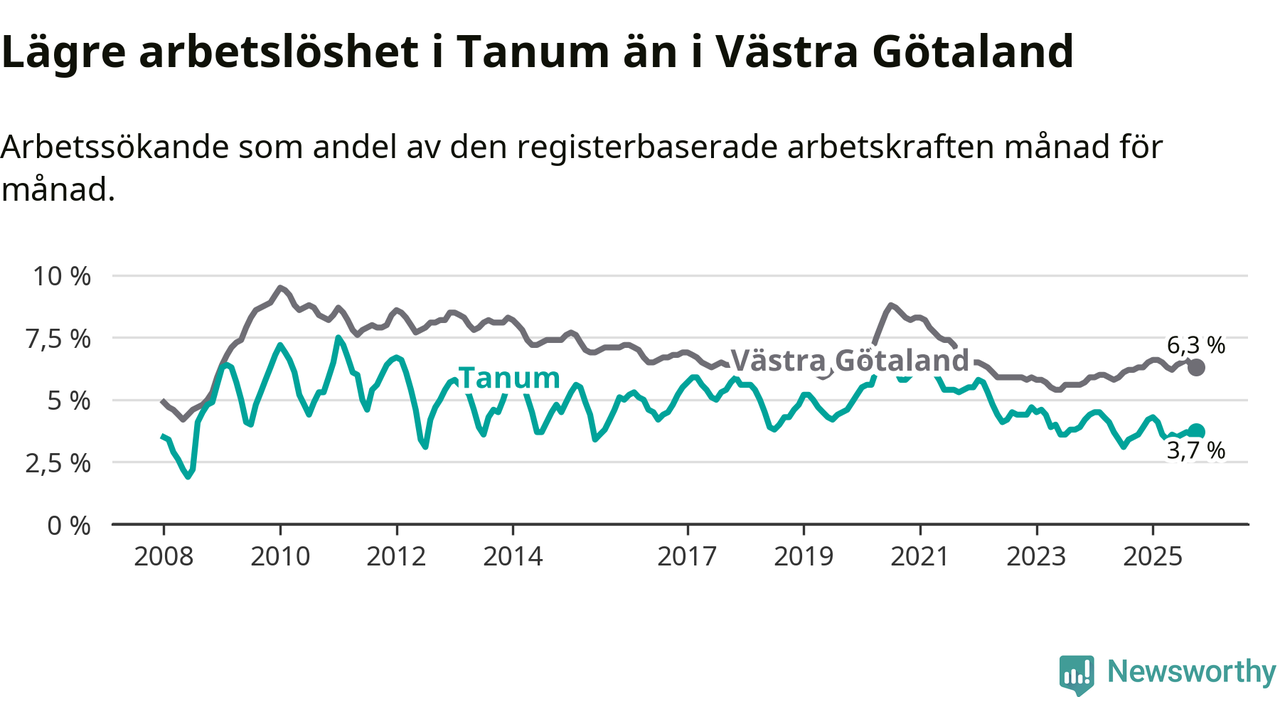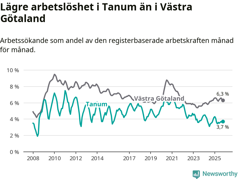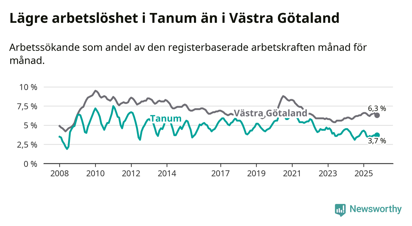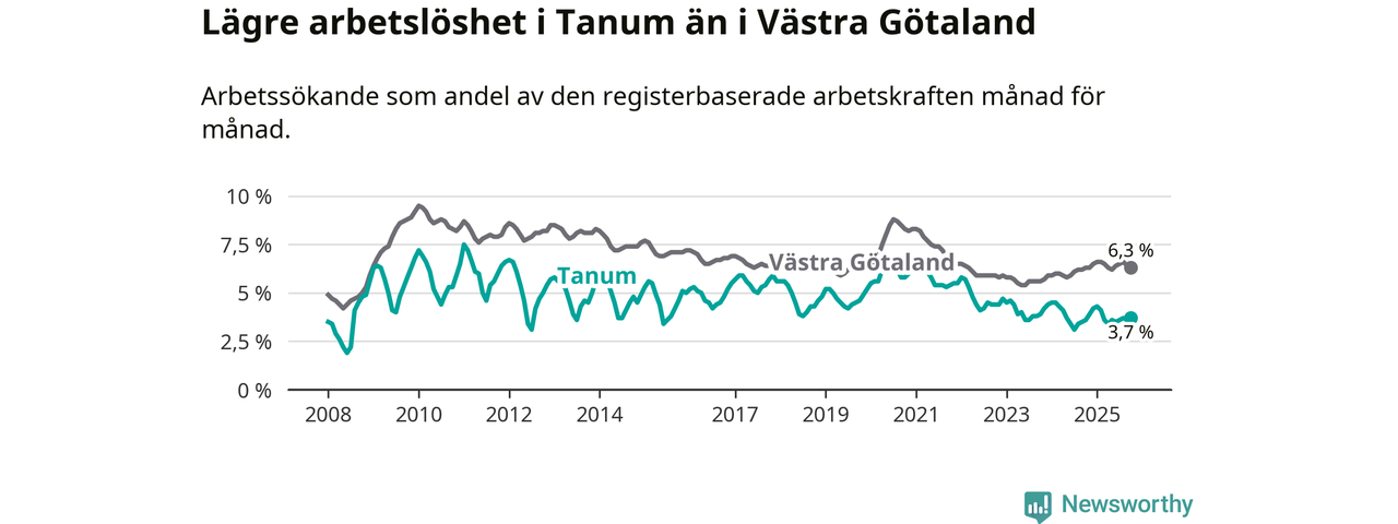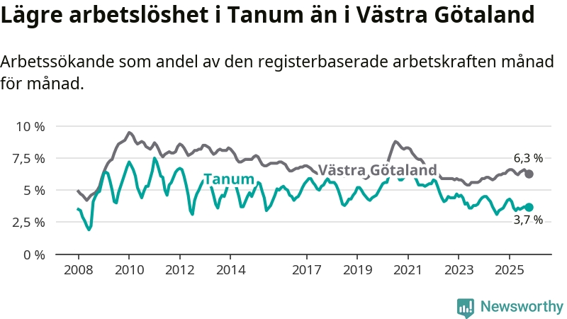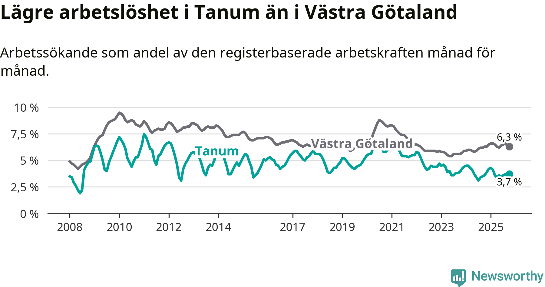 Graf: Arbetslöshet i Tanums kommun och Västra Götalands län