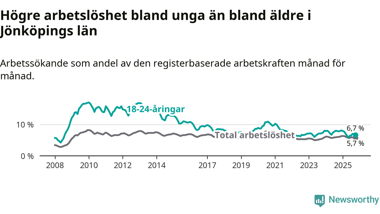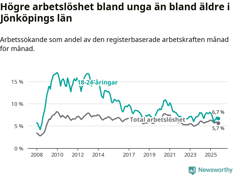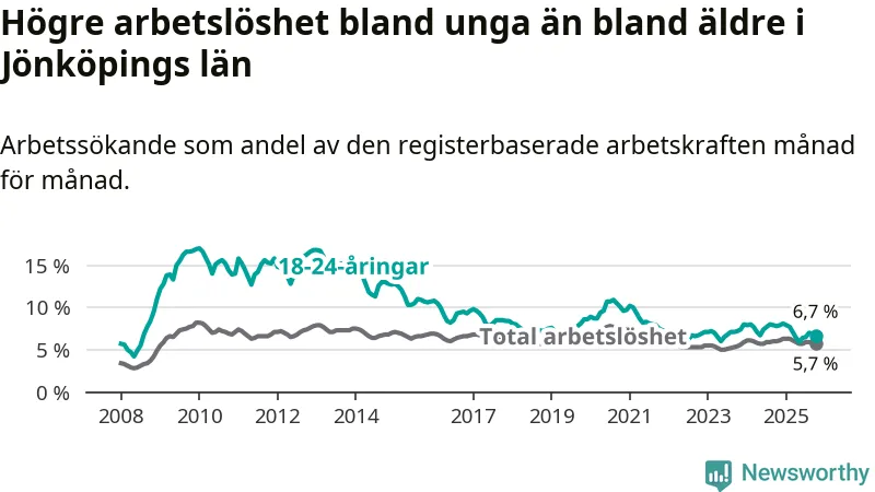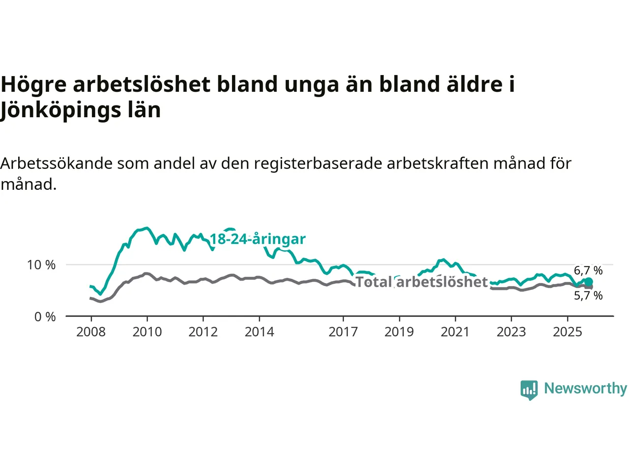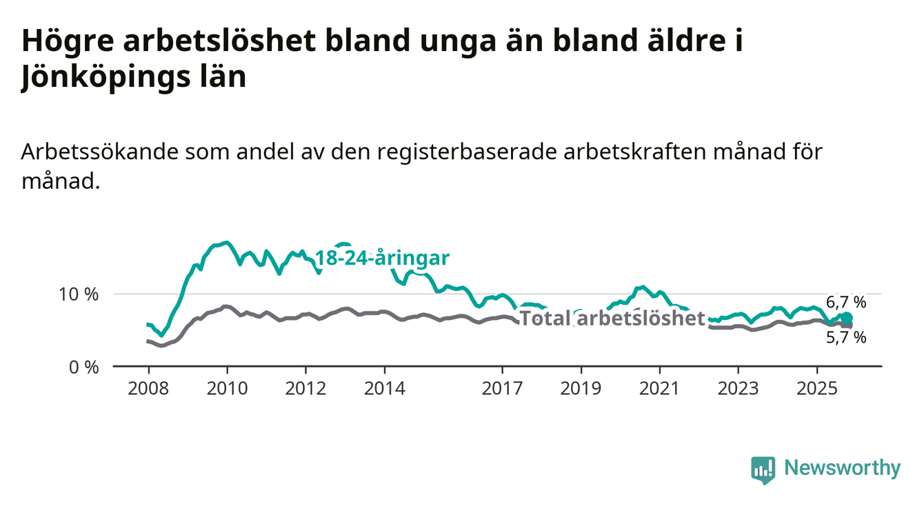 Graf: Arbetslöshet bland unga i Jönköpings län och Sverige