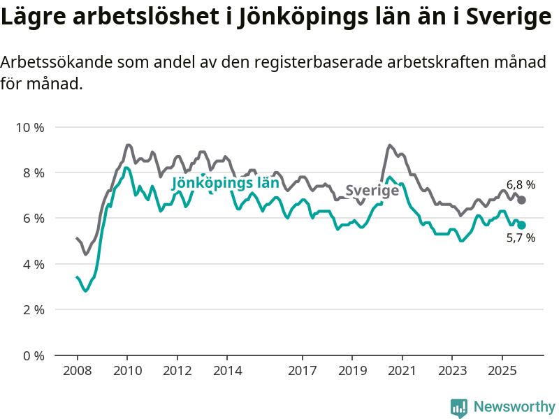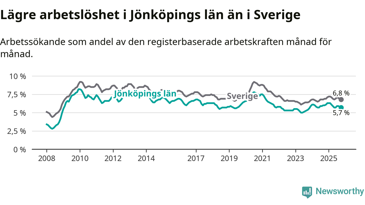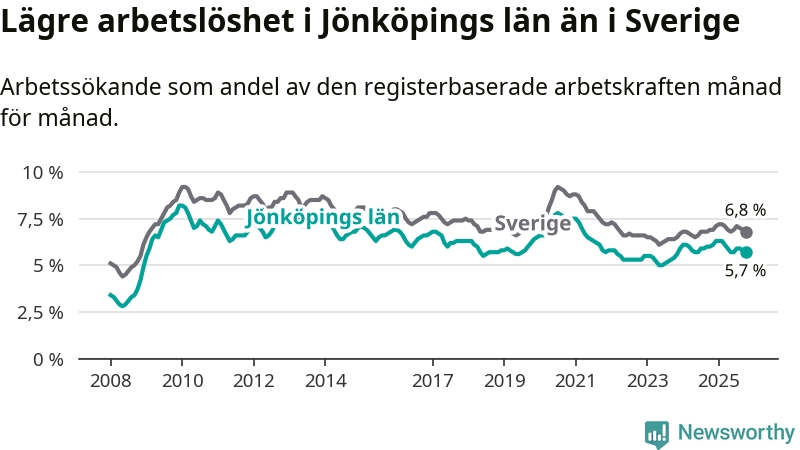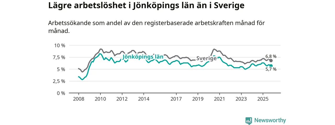 Graf: Arbetslöshet i Jönköpings län och Sverige
