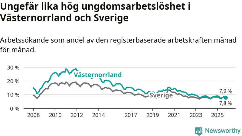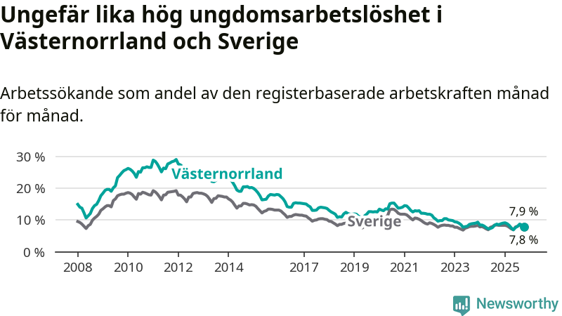 | Bland ungdomar | 7,9 % | −0,6 % ▼ | 7,8 % | −0,5 % ▼ |