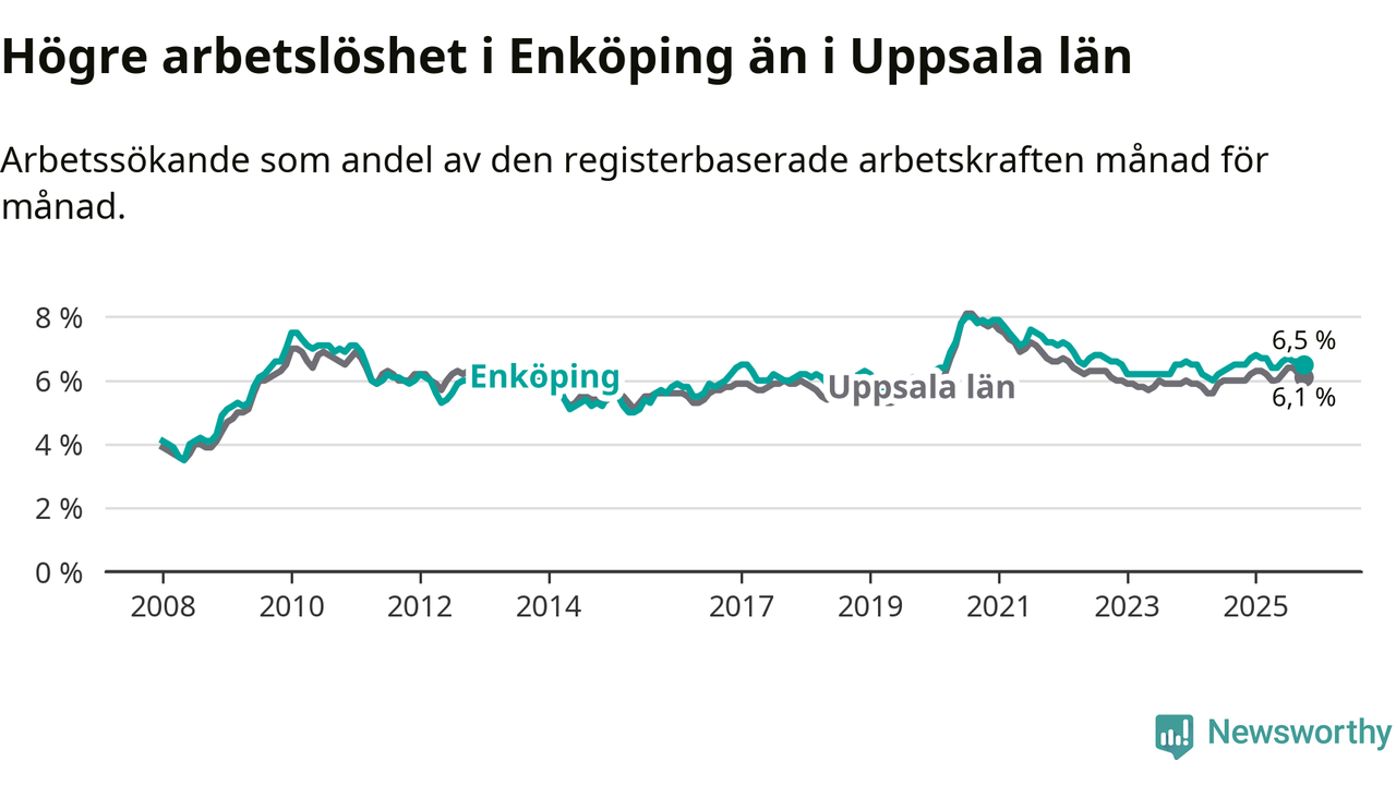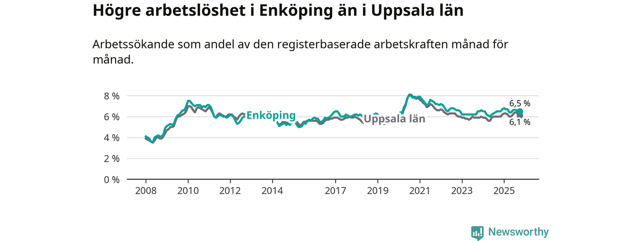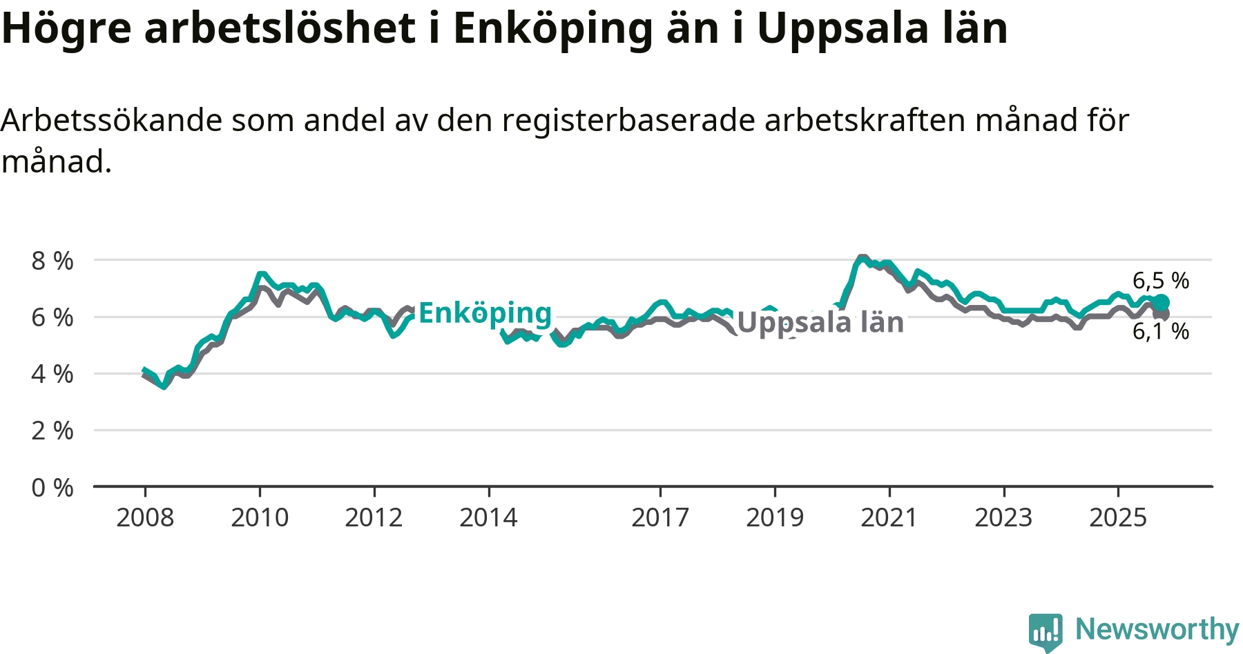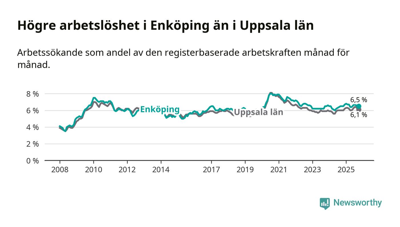 Graf: Arbetslöshet i Enköpings kommun och Uppsala län