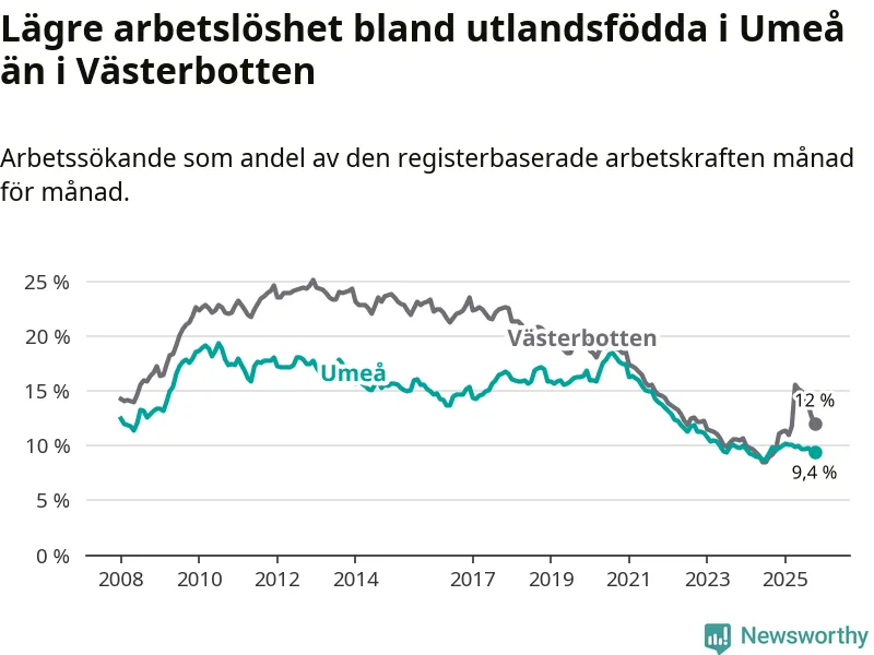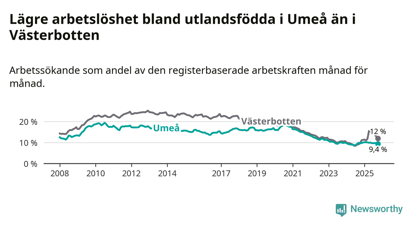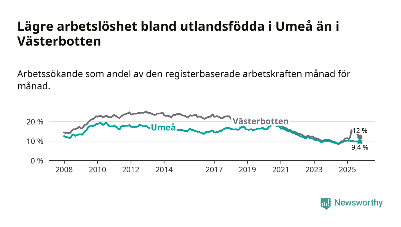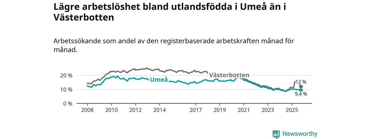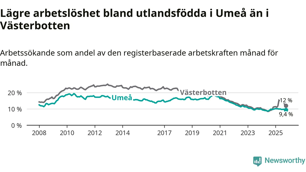 Arbetslösheten bland utlandsfödda sjunker i Umeå – medan den stiger i Västerbotten