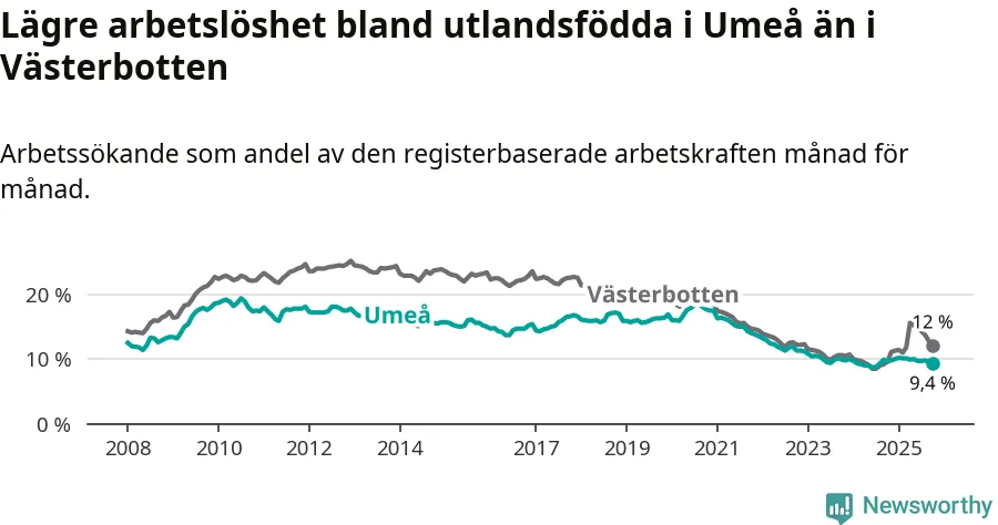 Arbetslöshet bland utlandsfödda i Västerbottens län