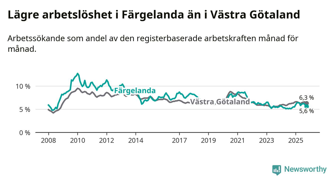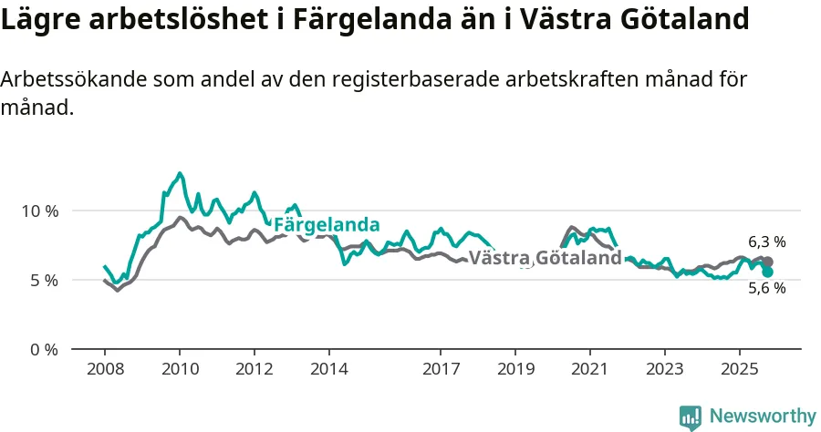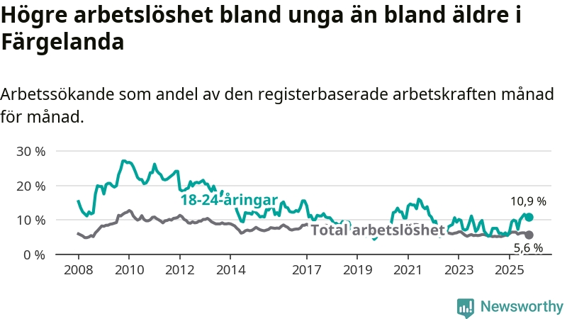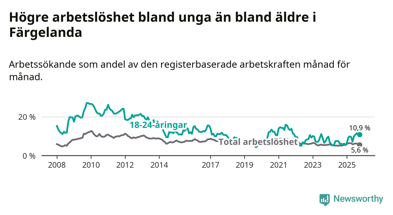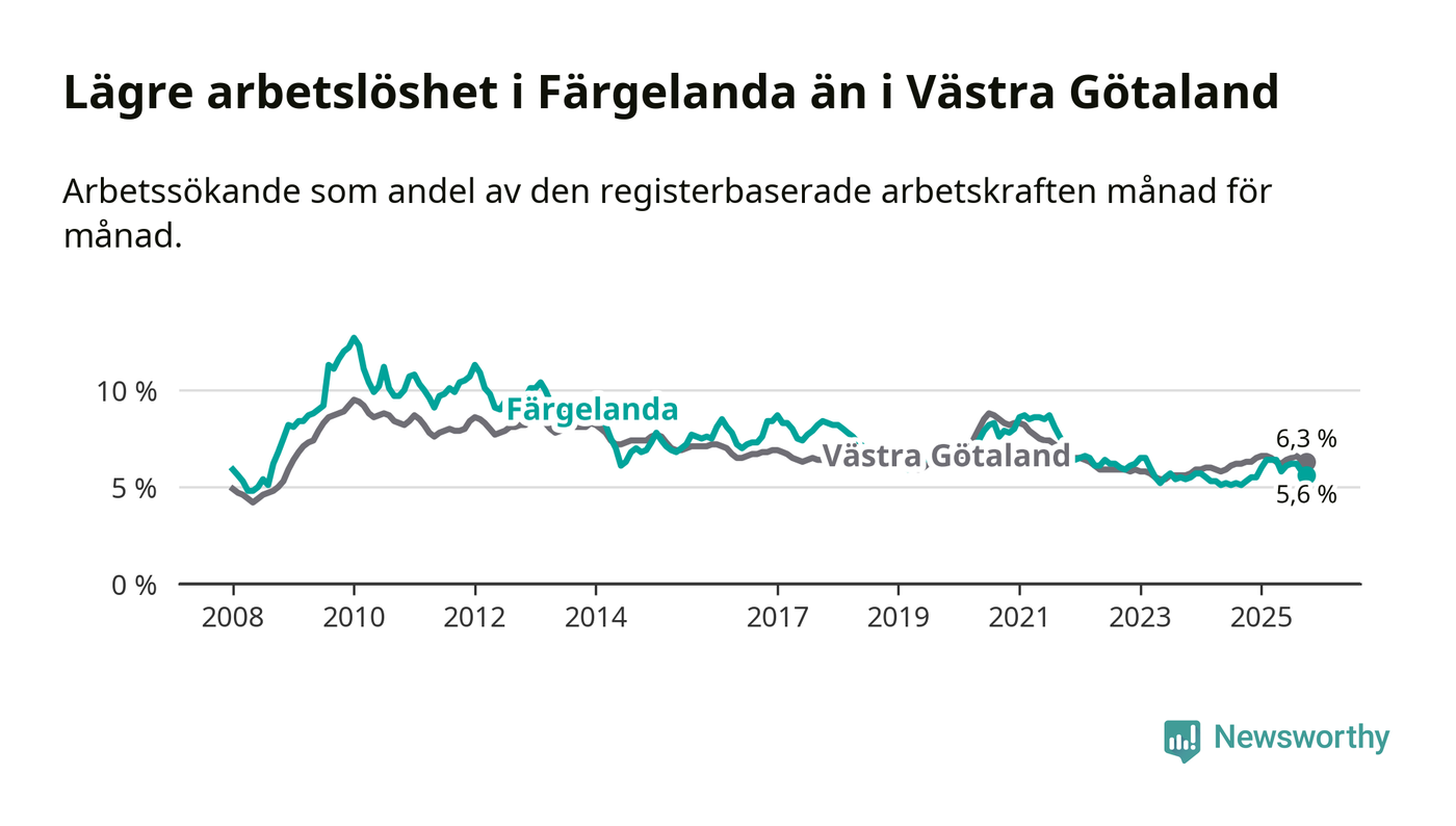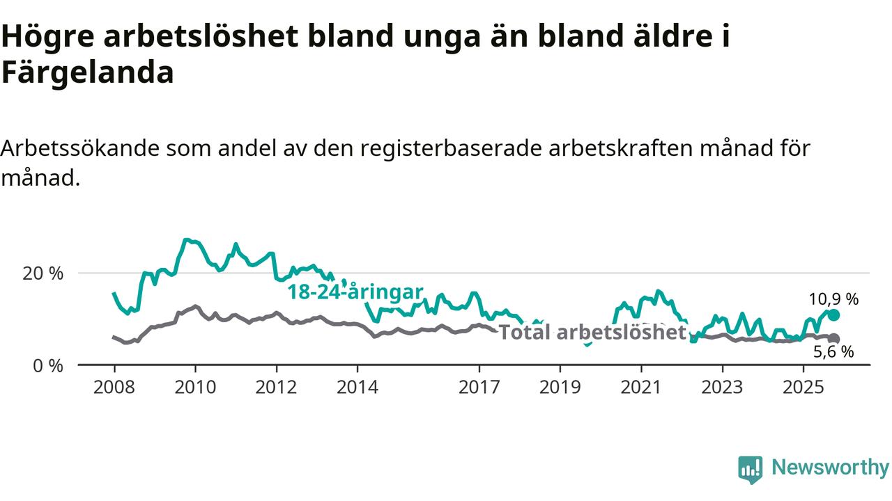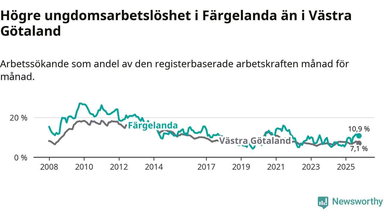 Färgelanda kommun såg under oktober en svagare utveckling på arbetsmarknaden för unga än länet. Kommunen har passerat Västra Götalands län och har nu högre ungdomsarbetslöshet.