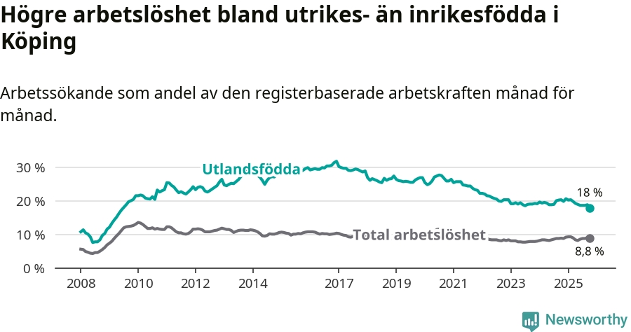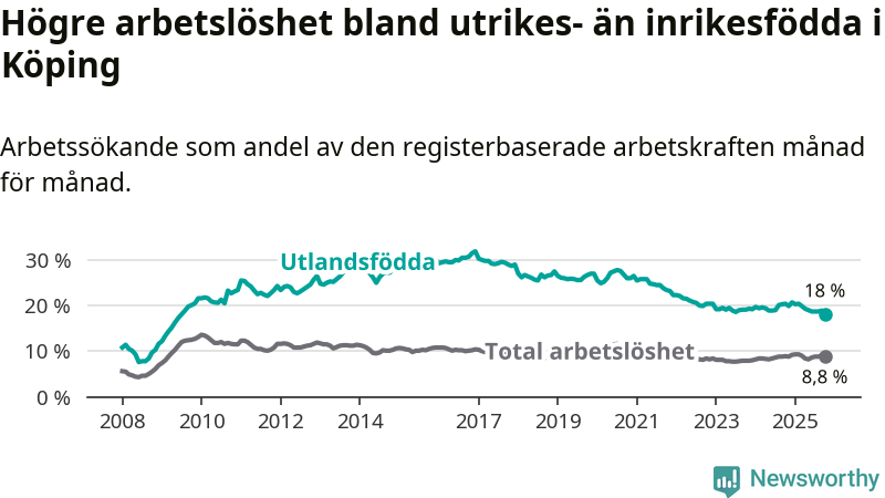 Läs mer om arbetslösheten bland utlandsfödda längre ner i den här texten.