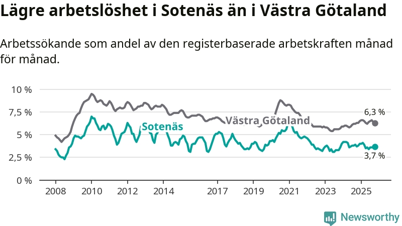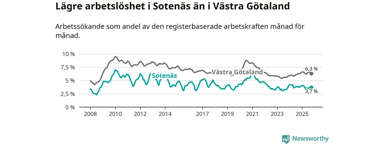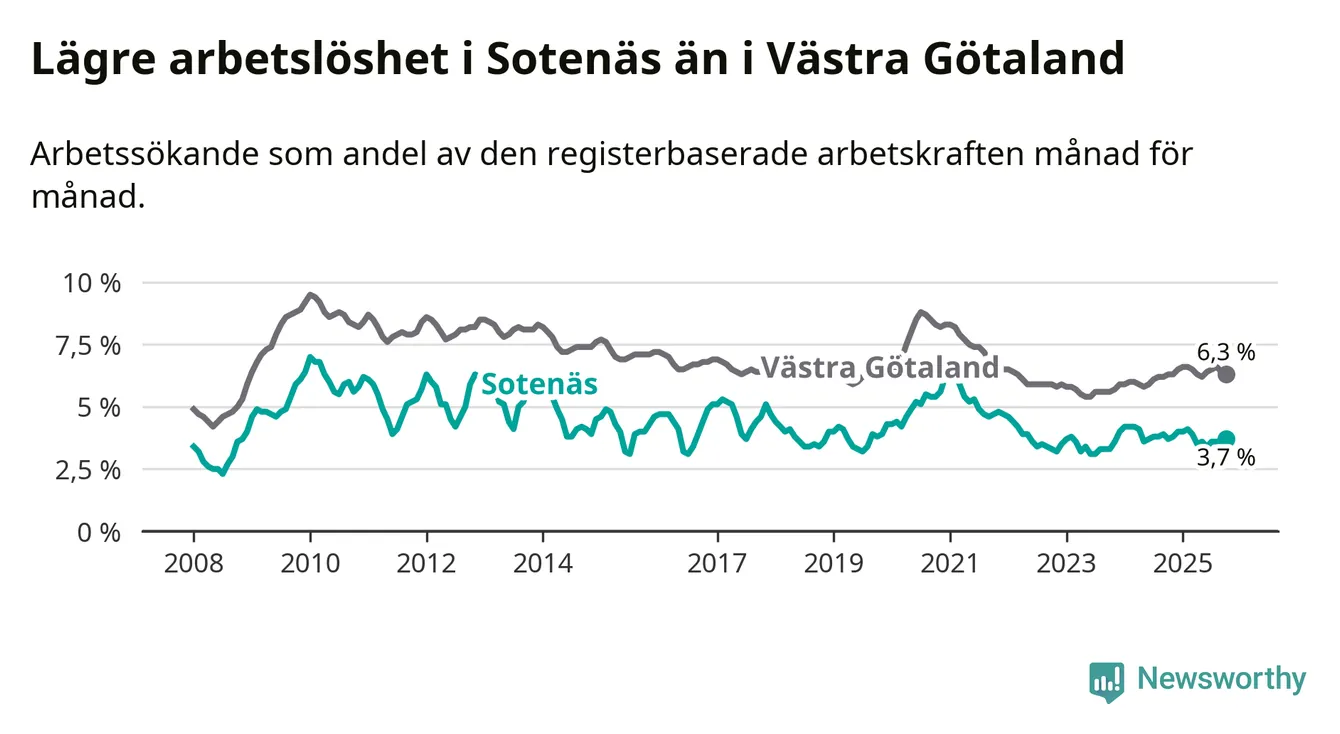 Graf: Arbetslöshet i Sotenäs kommun och Västra Götalands län