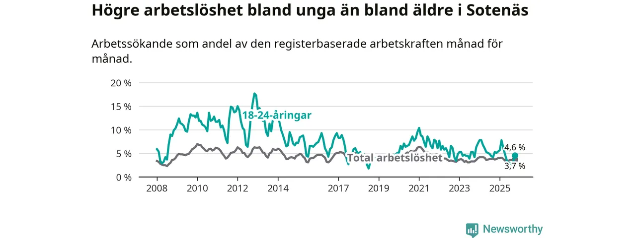 Graf: Arbetslöshet bland unga i Sotenäs kommun och Västra Götalands län