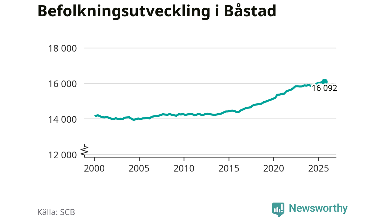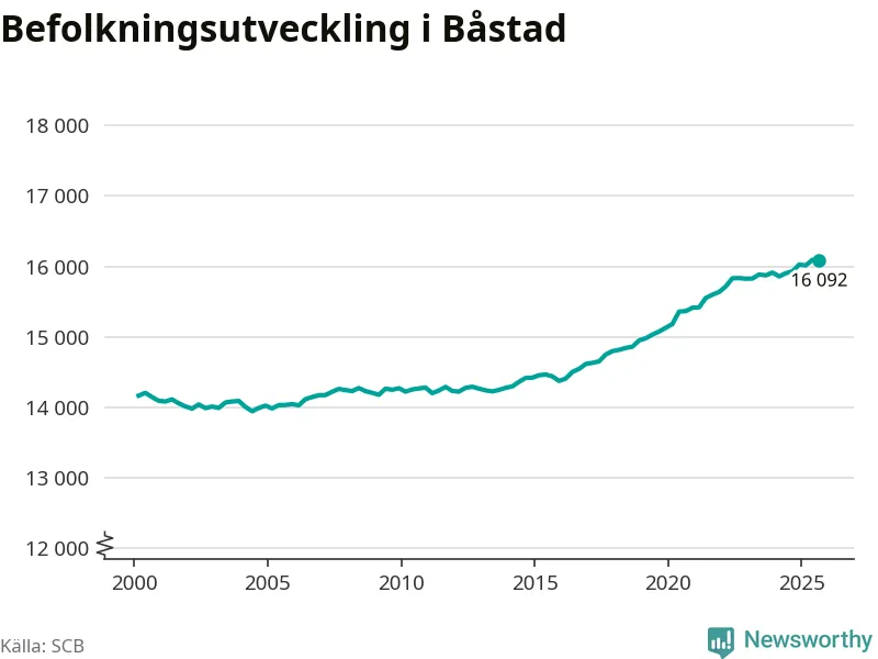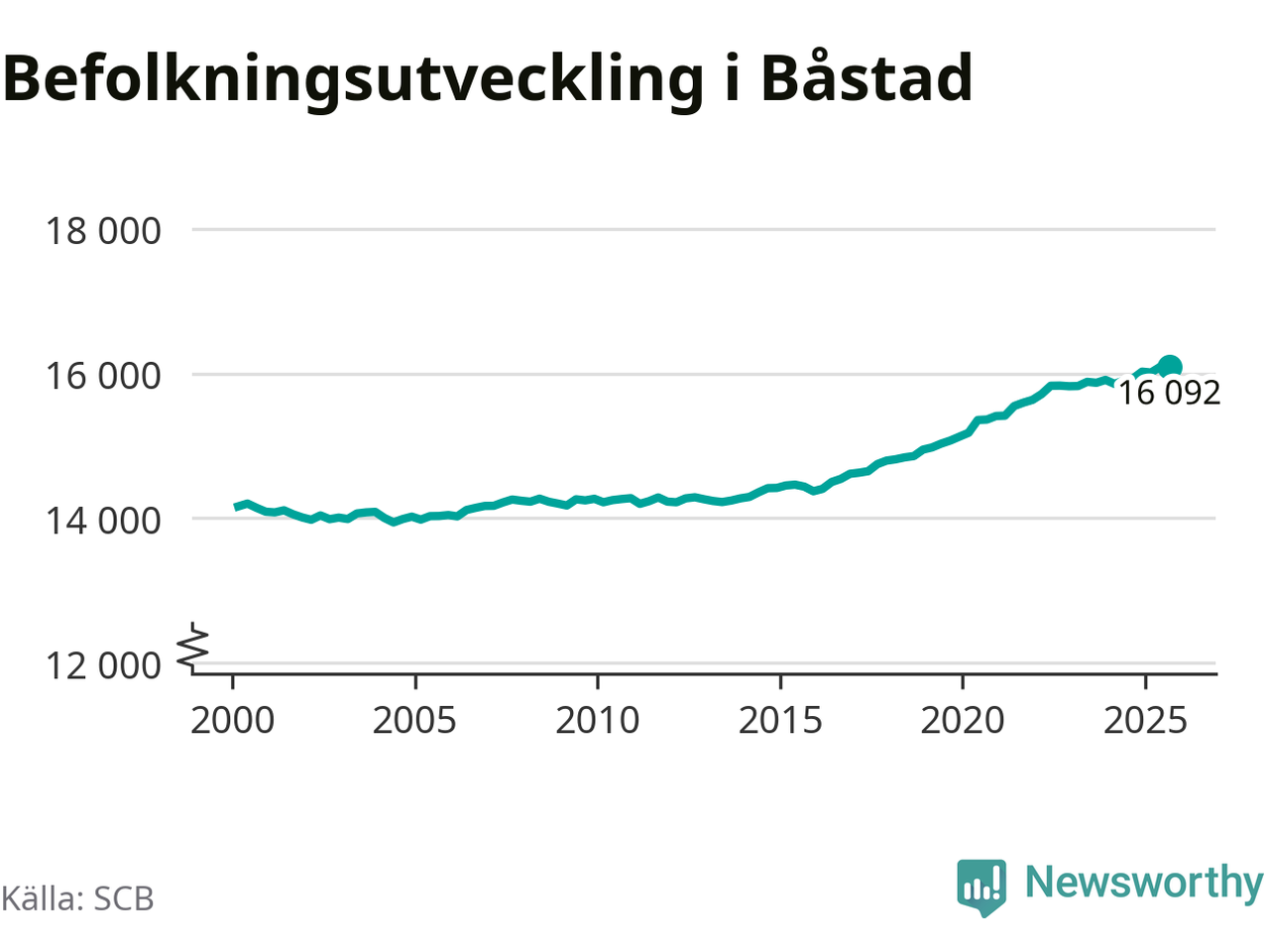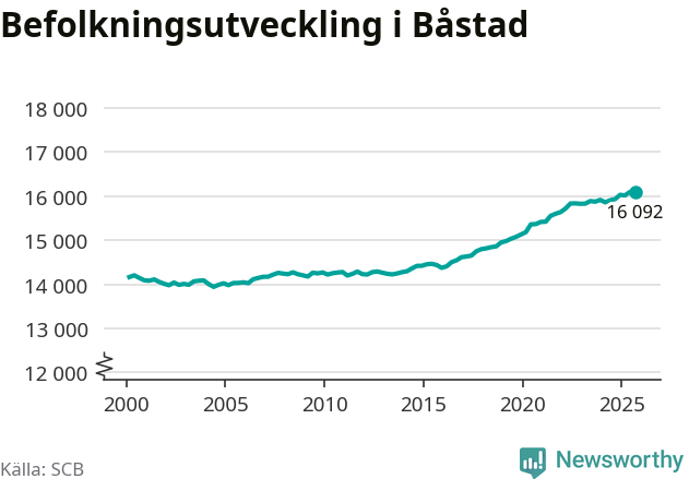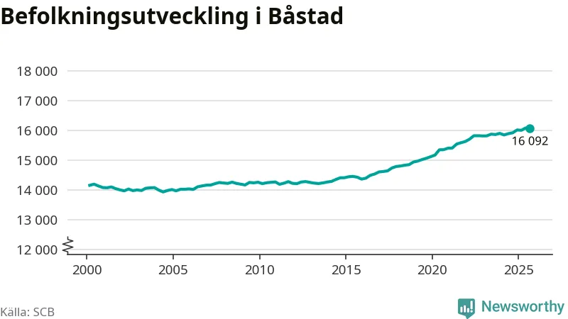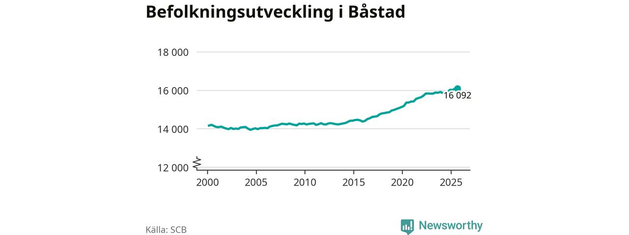 I slutet av tredje kvartalet 2025 bodde 16 092 personer i Båstads kommun, enligt SCB:s senaste siffror. Det är ungefär 160 personer fler än vid samma tidpunkt förra året.