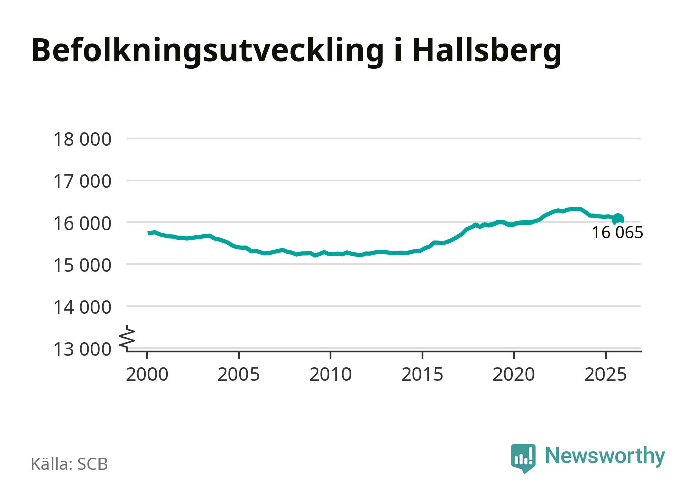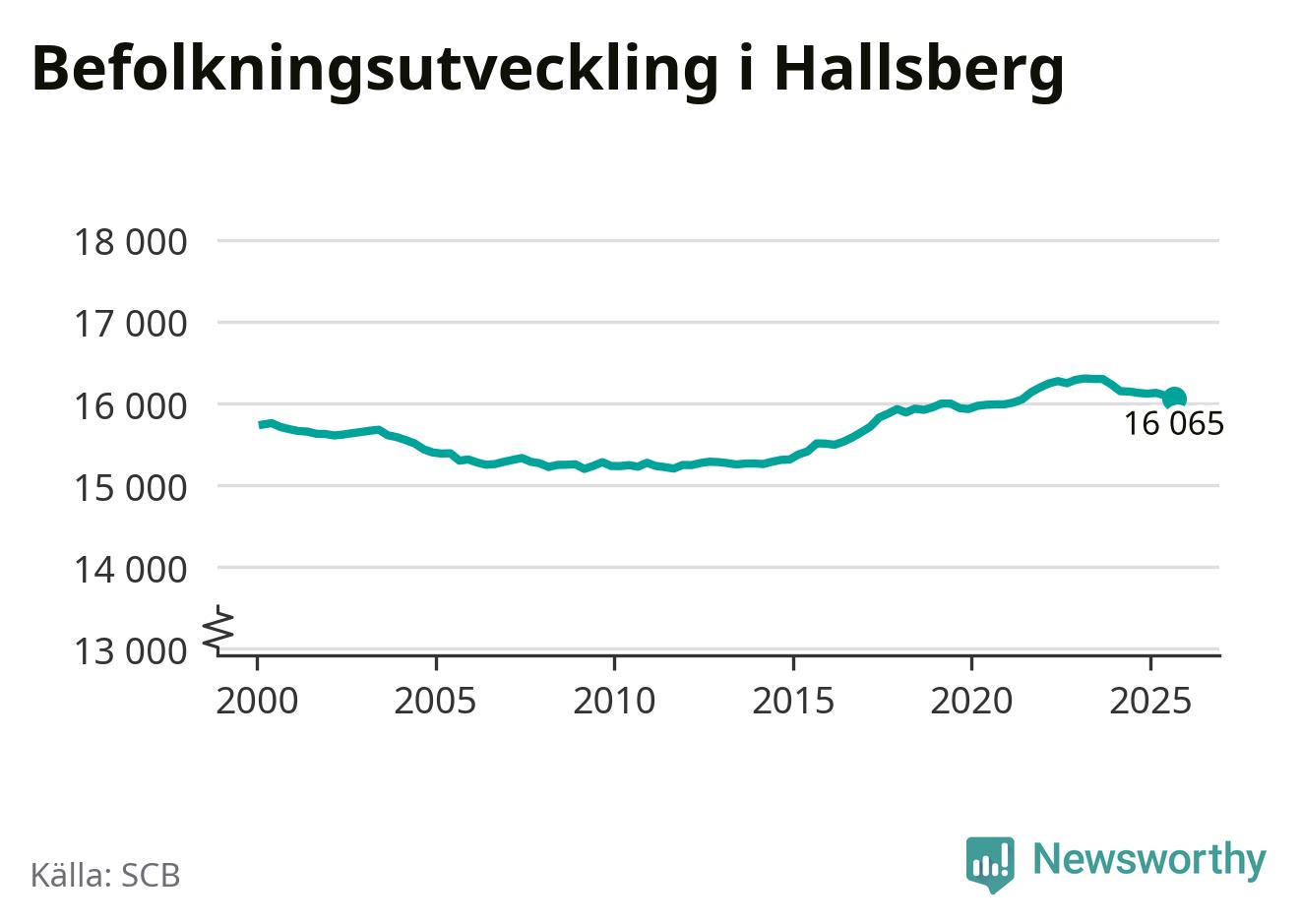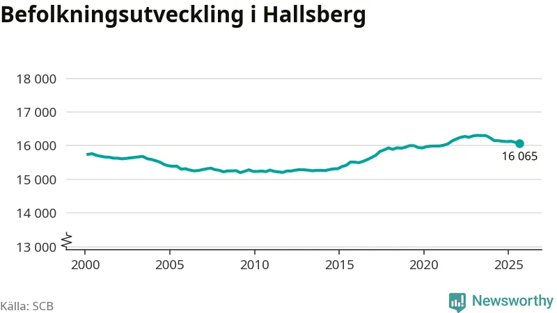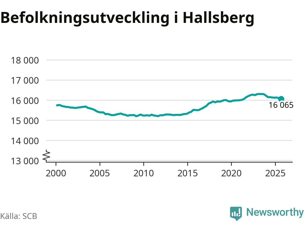 Jämfört med för ett år sedan har befolkningen i Hallsberg minskat med drygt 60 personer. Sedan millennieskiftet har folkmängden ökat med runt 320 personer, eller 2 procent.