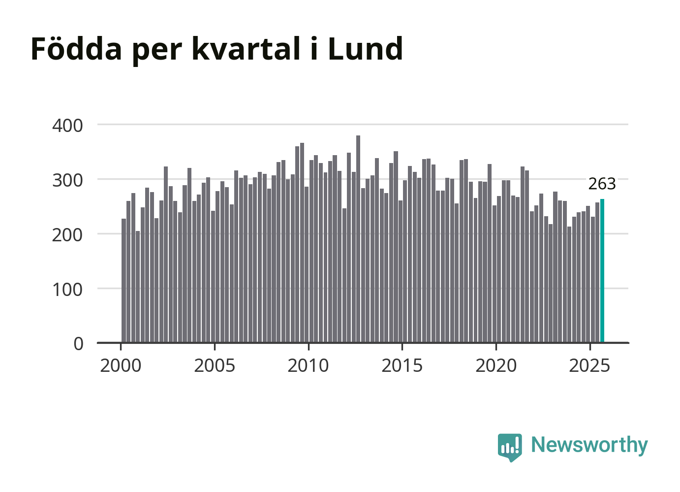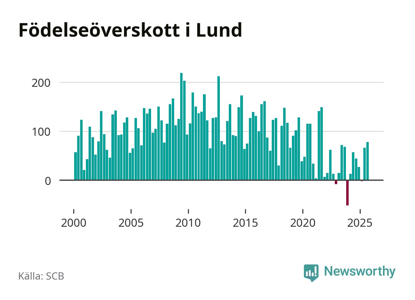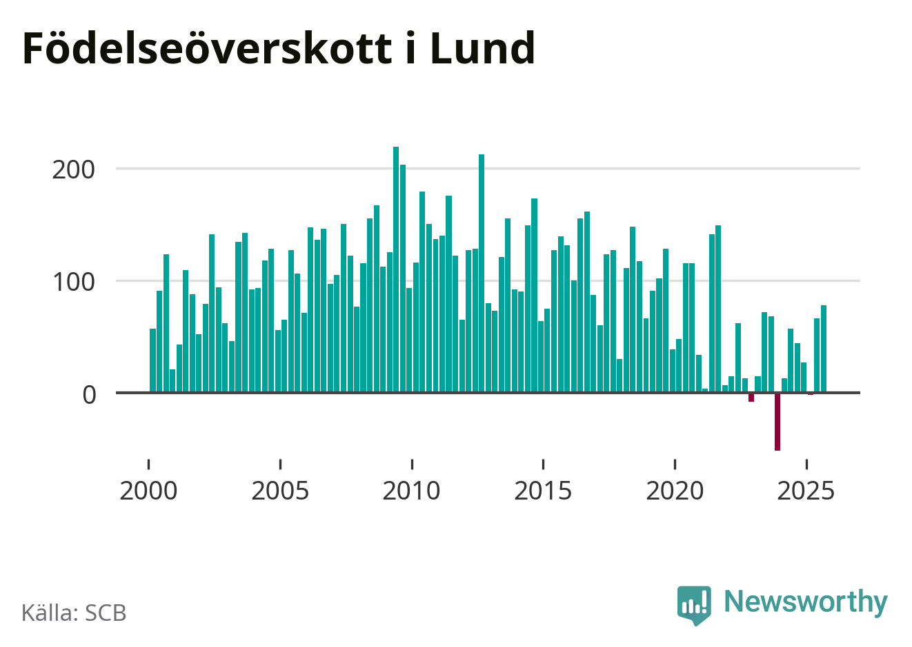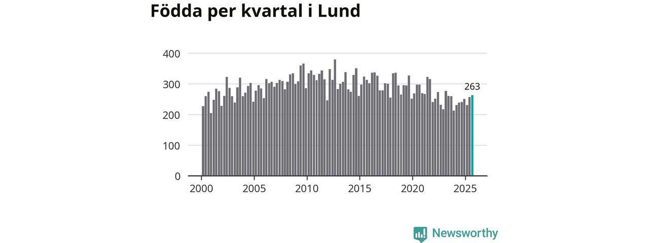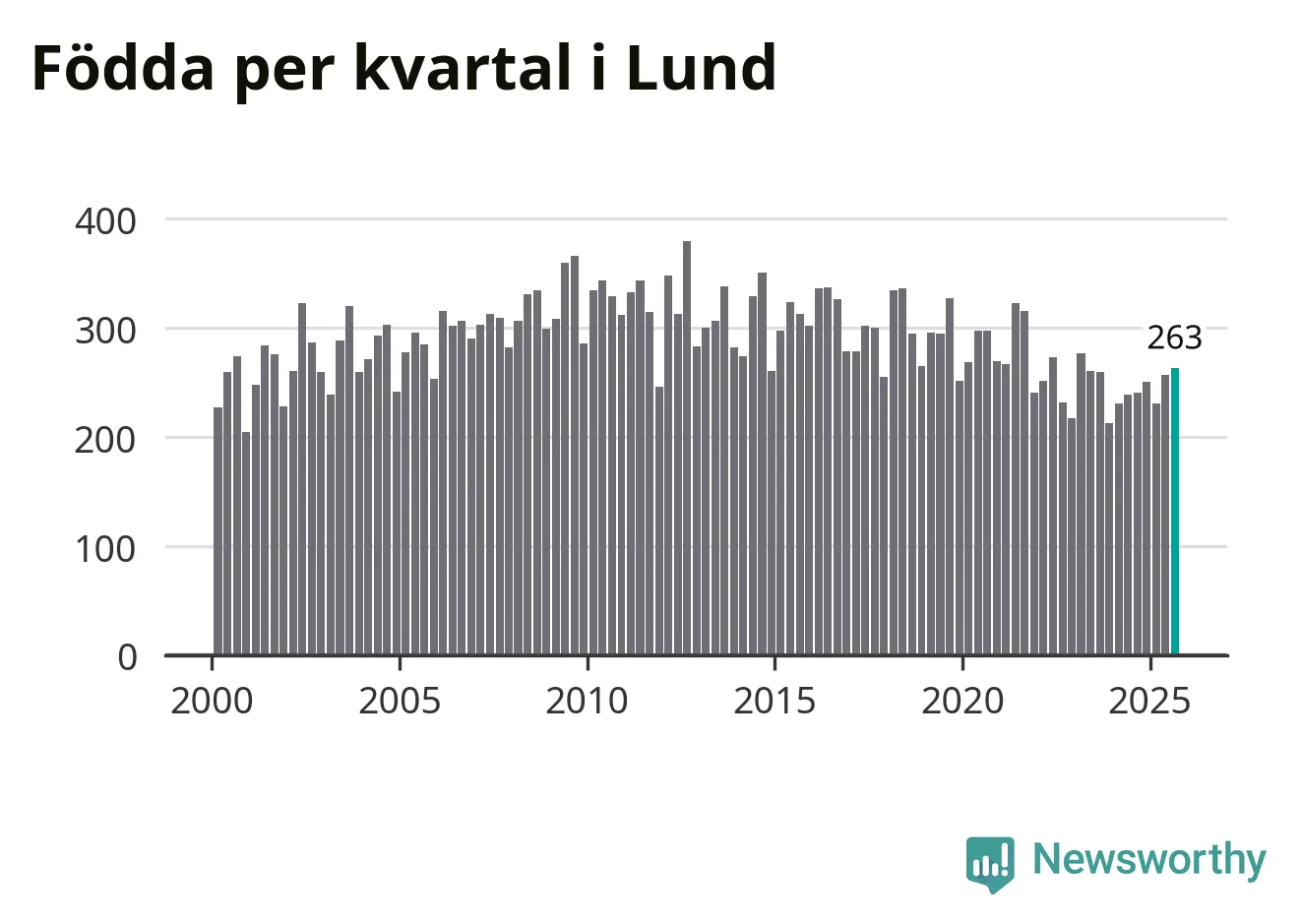 Enligt SCB:s siffror föddes 263 barn i Lund under det senaste kvartalet. Samtidigt avled 185 personer. Lund hade alltså ett positivt födelsenetto, vilket kommunen historiskt sett nästan alltid har haft.