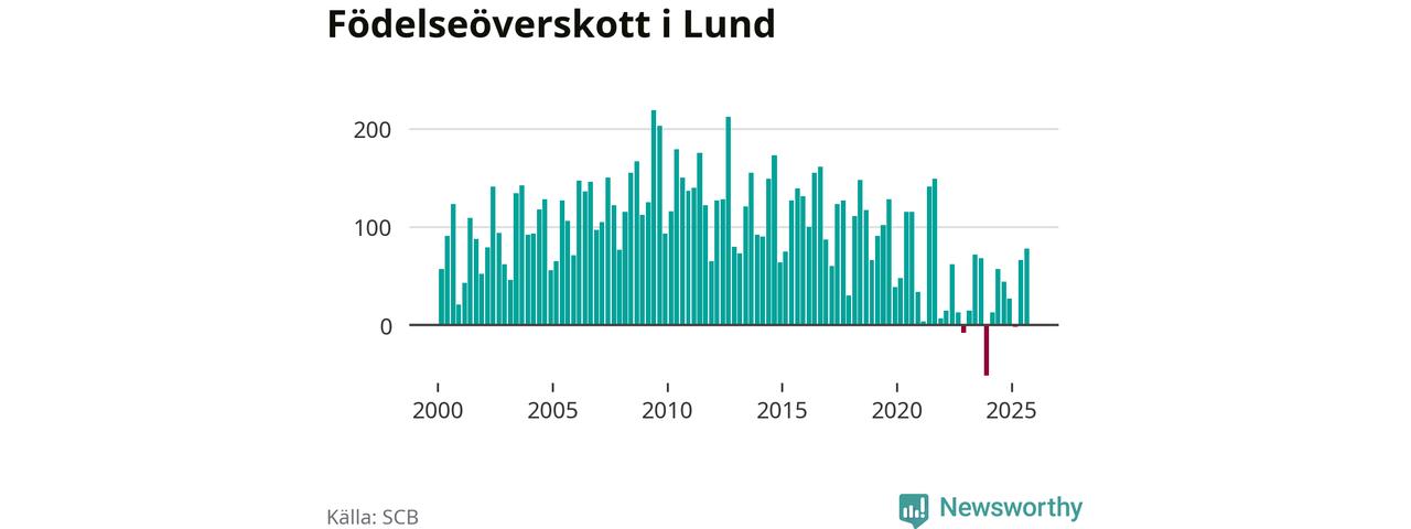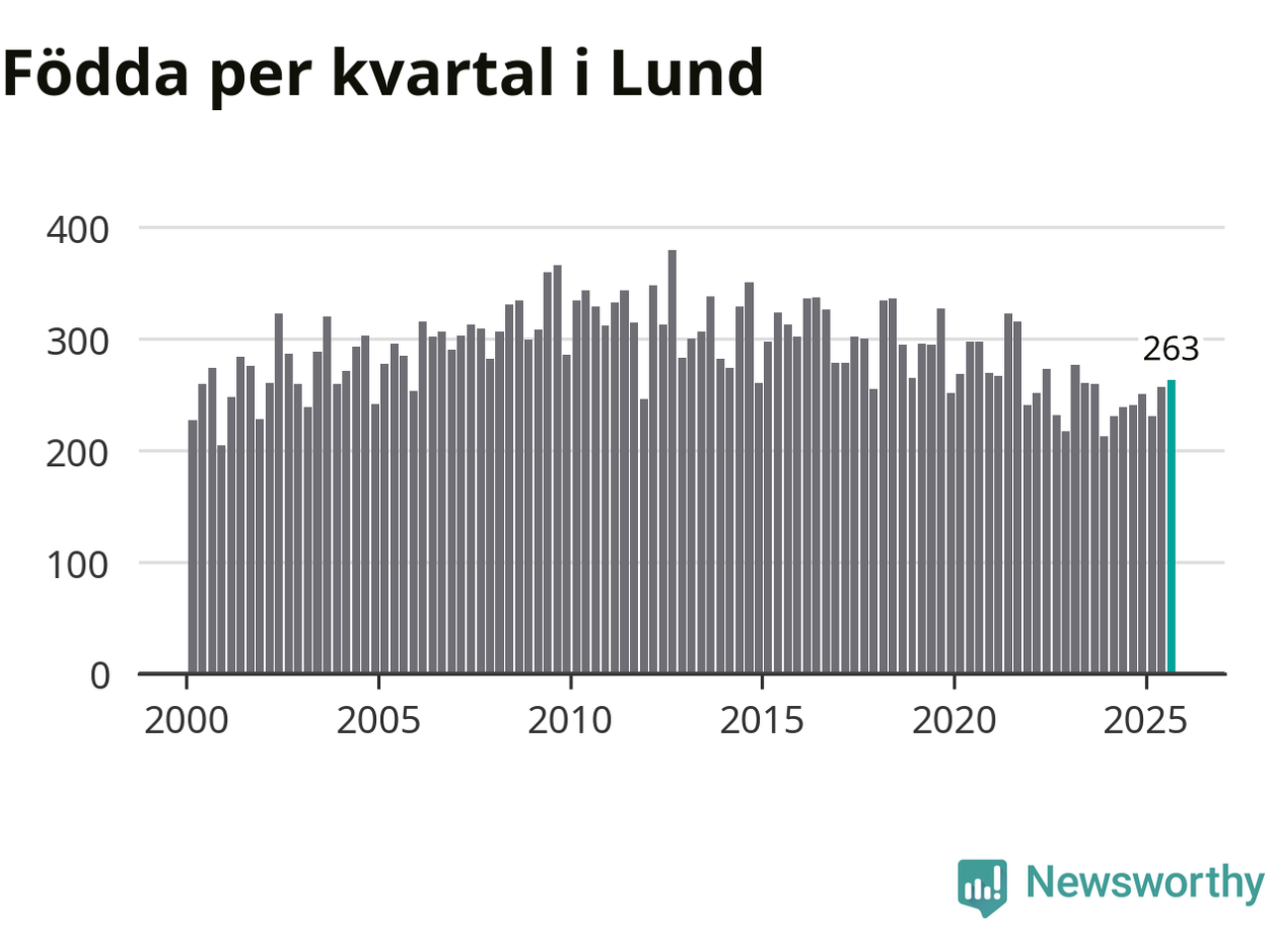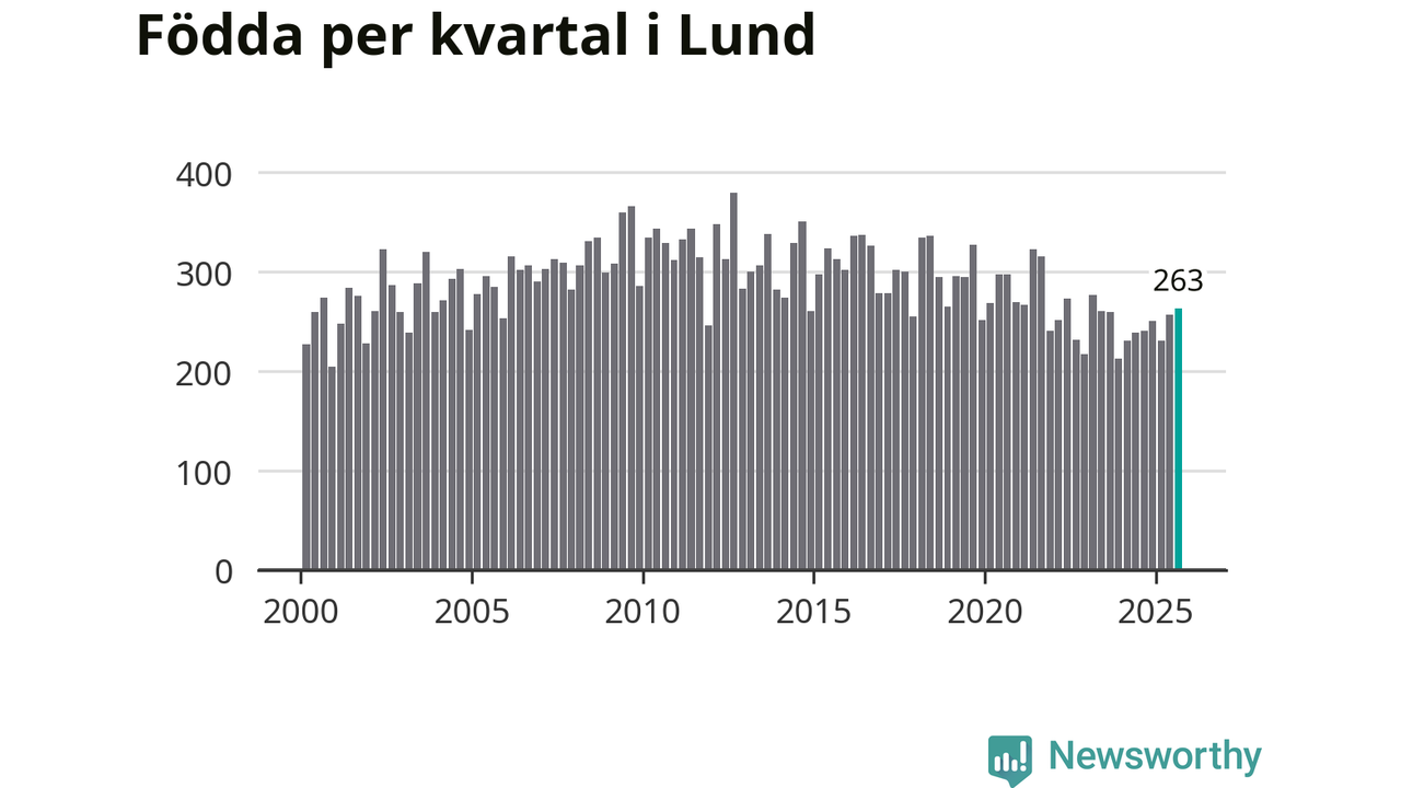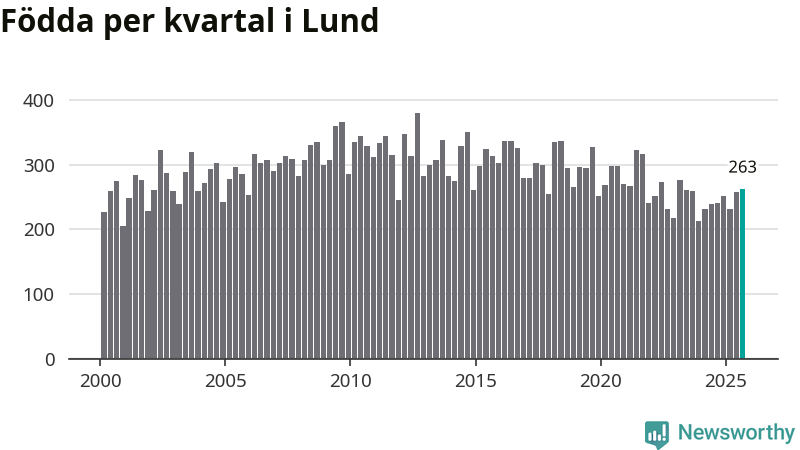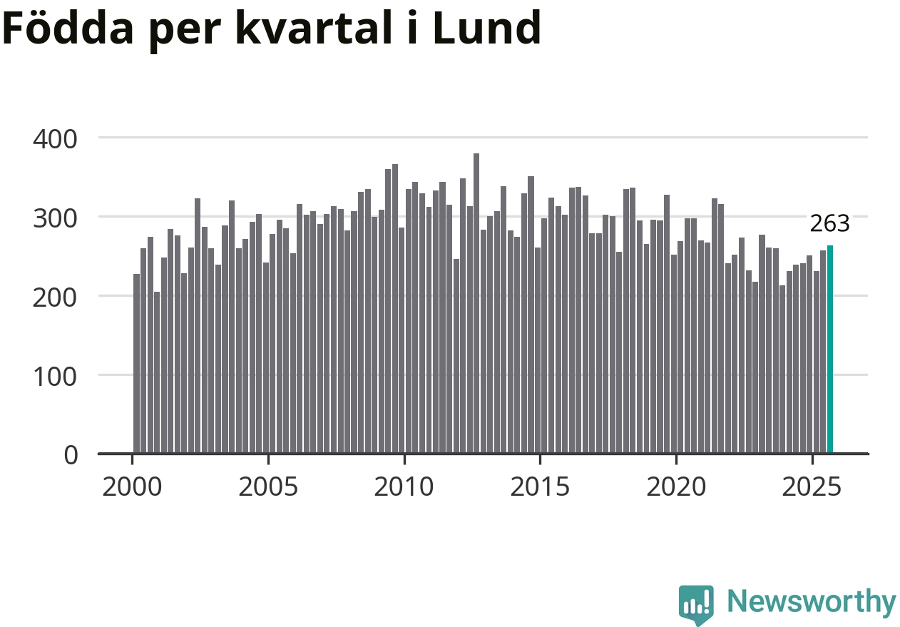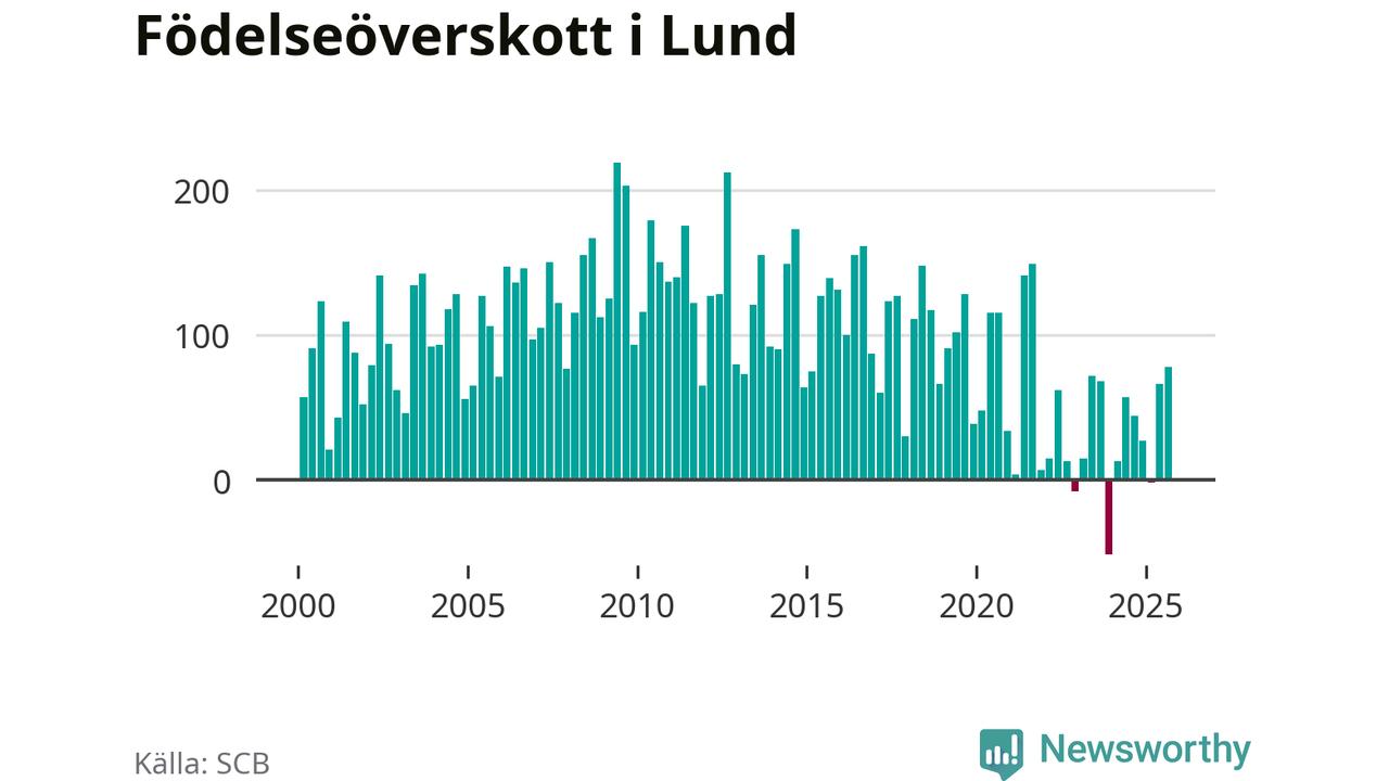 Enligt SCB:s siffror föddes 263 barn i Lund under det senaste kvartalet. Samtidigt avled 185 personer. Lund hade alltså ett positivt födelsenetto, vilket kommunen historiskt sett nästan alltid har haft.
