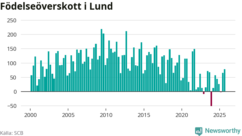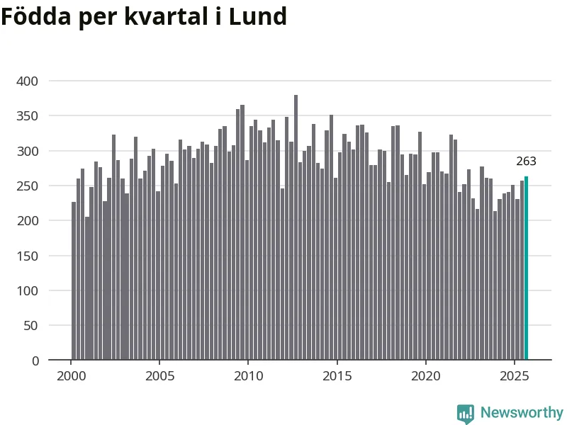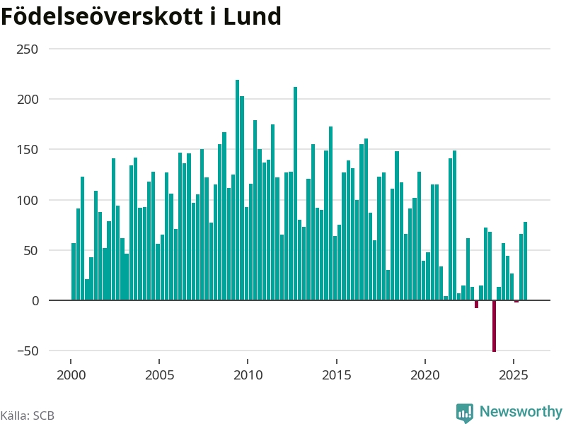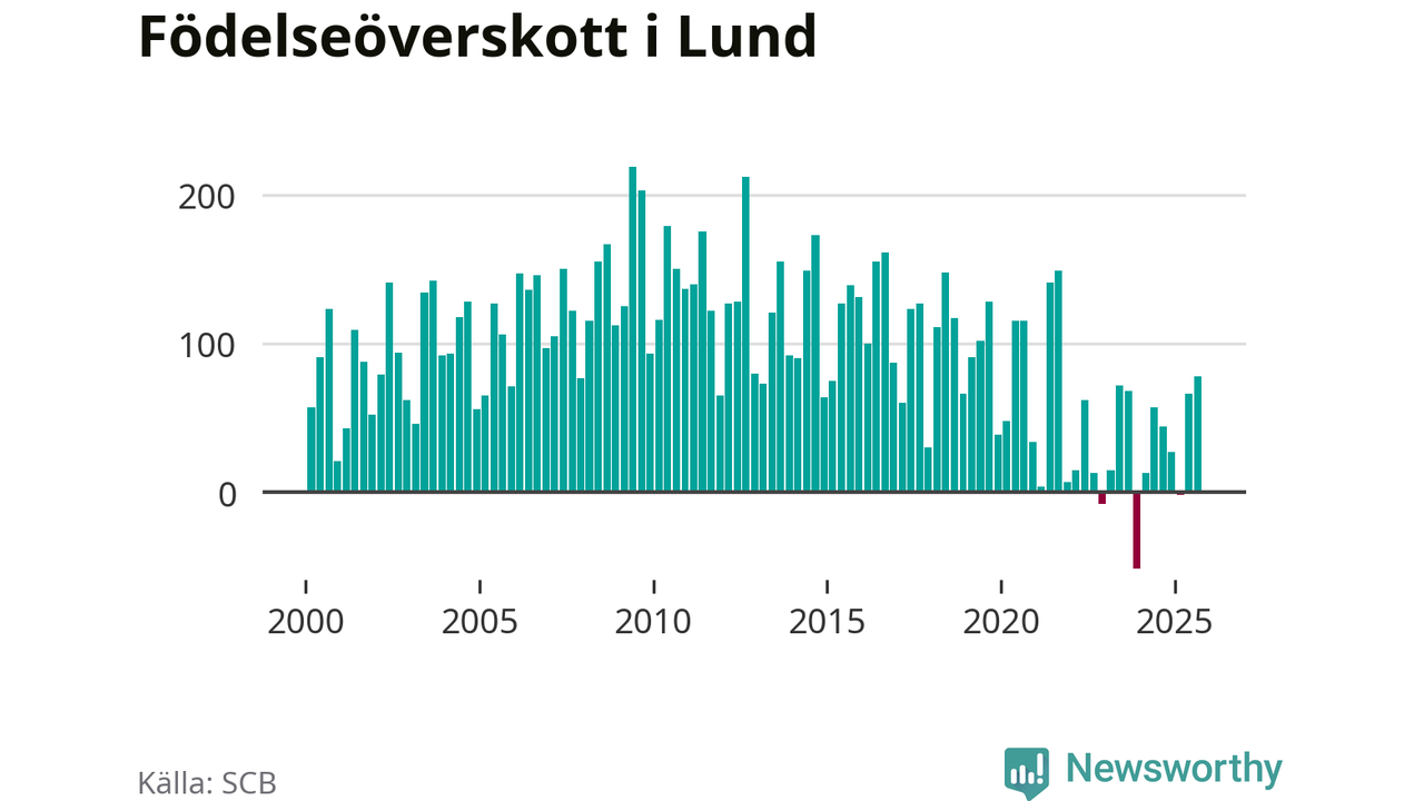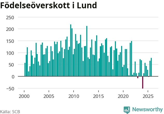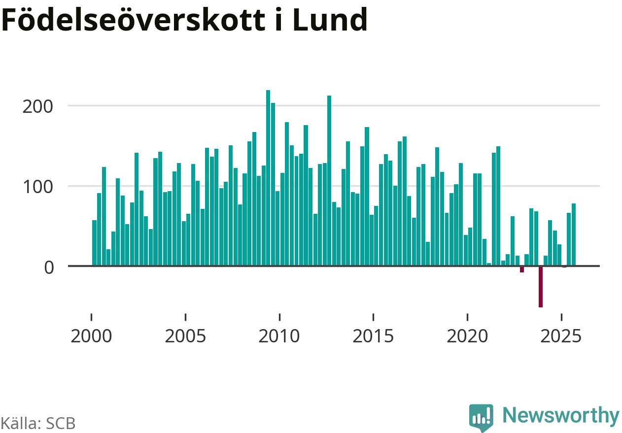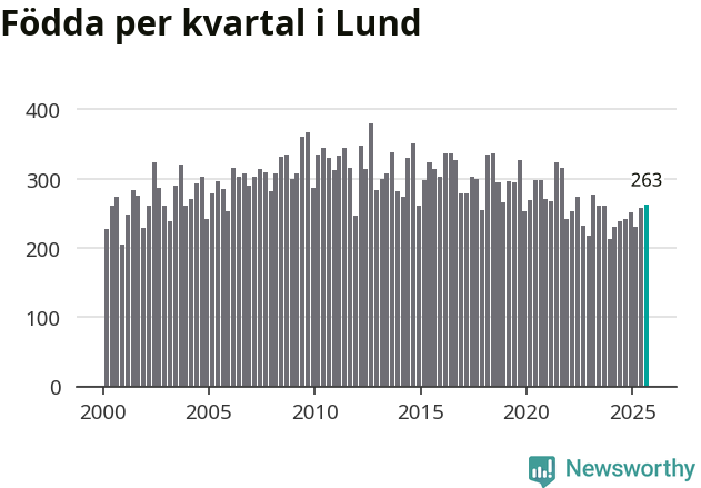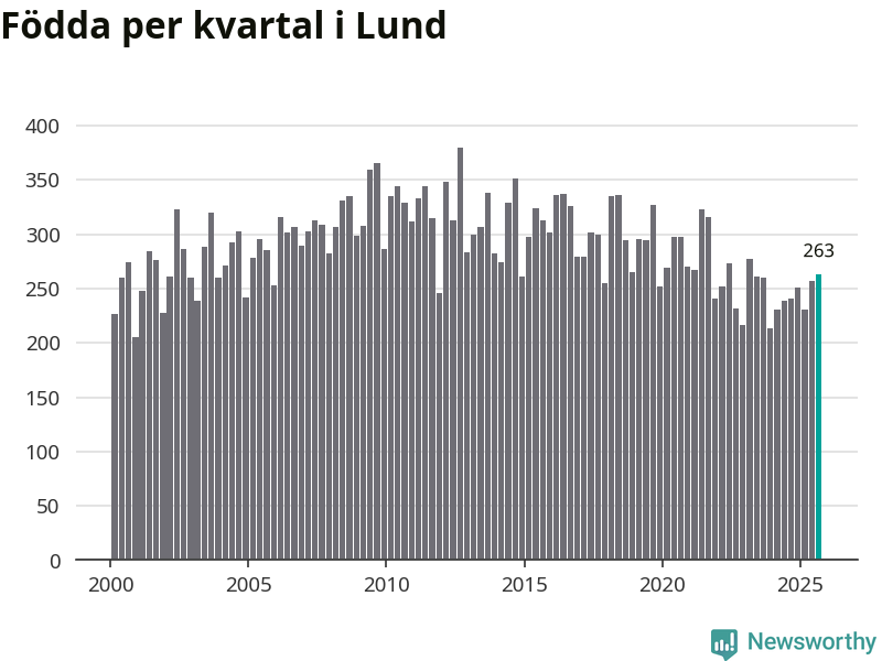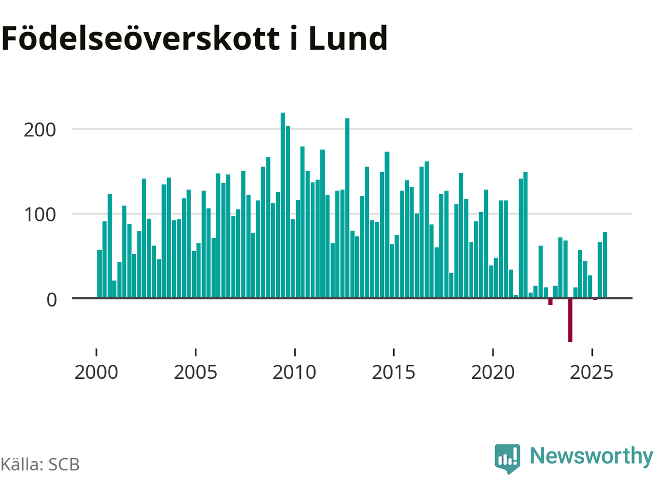 Enligt SCB:s siffror föddes 263 barn i Lund under det senaste kvartalet. Samtidigt avled 185 personer. Lund hade alltså ett positivt födelsenetto, vilket kommunen historiskt sett nästan alltid har haft.