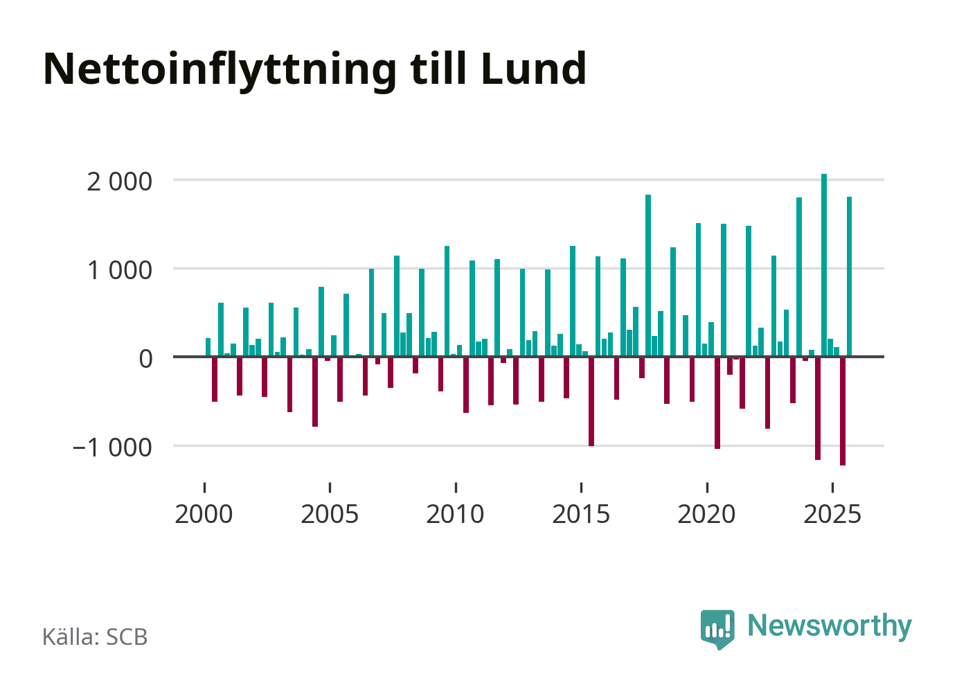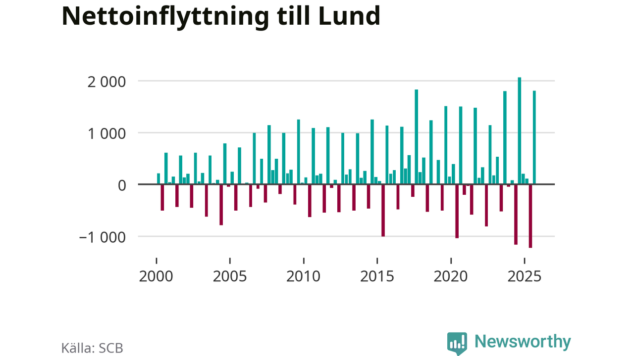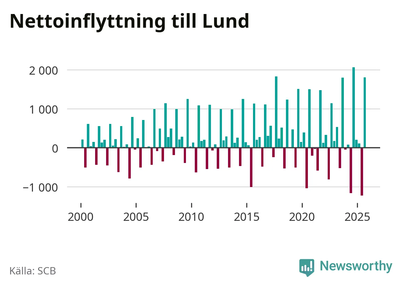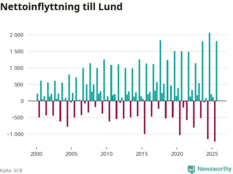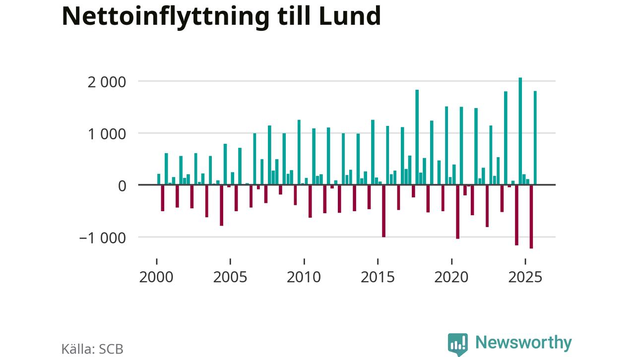 Under tredje kvartalet 2025 flyttade 5 412 personer till kommunen medan 3 604 personer flyttade därifrån. Det är historiskt sett en stor inflyttning under ett kvartal – men samtidigt var utflyttningen relativt stor. Sedan seklets början har Lund oftast haft ett positivt flyttnetto, inklusive det senaste kvartalet.