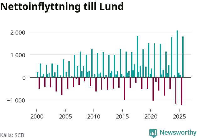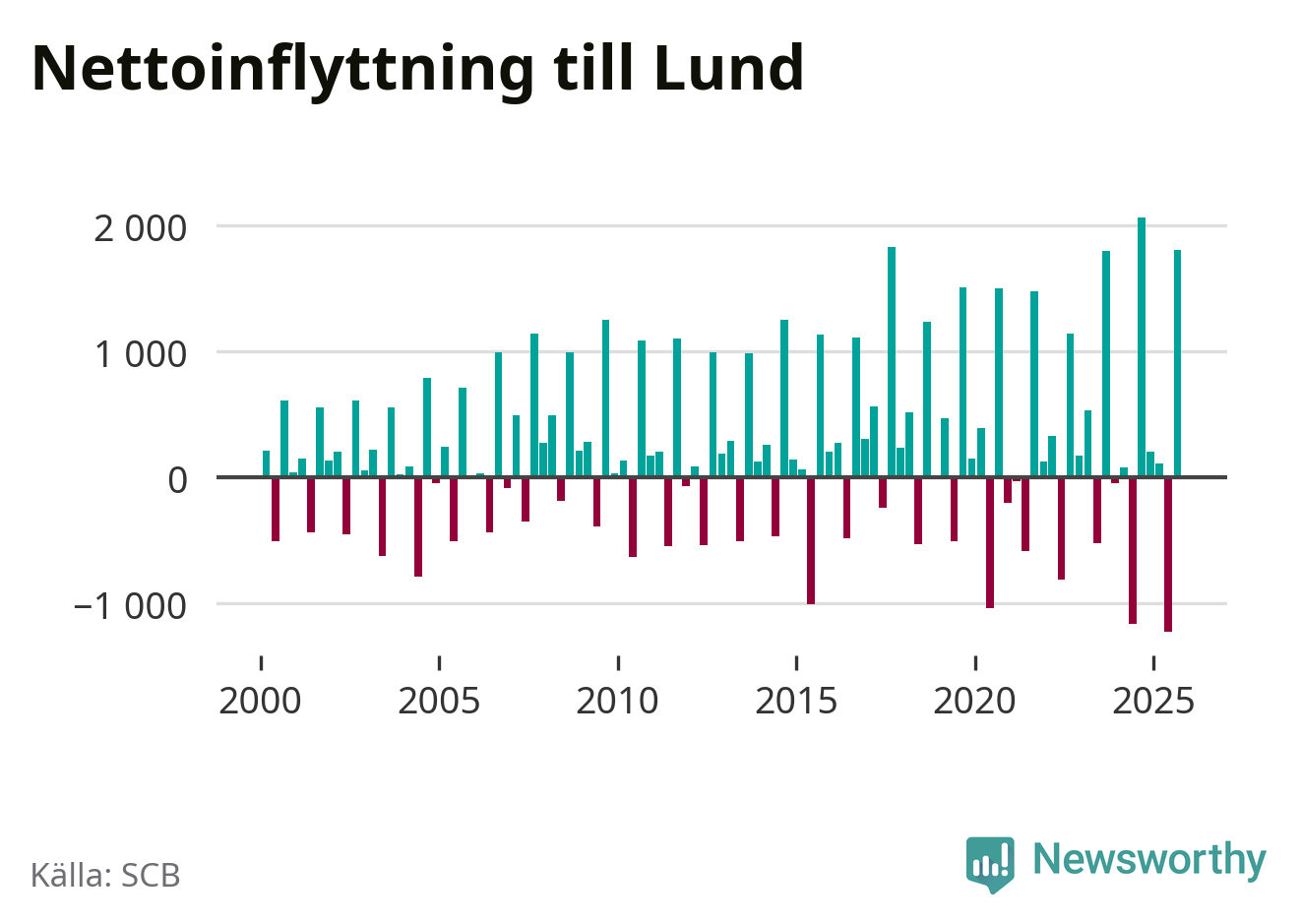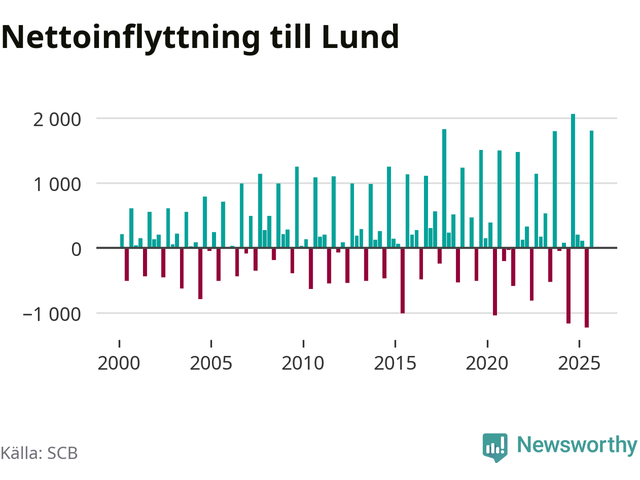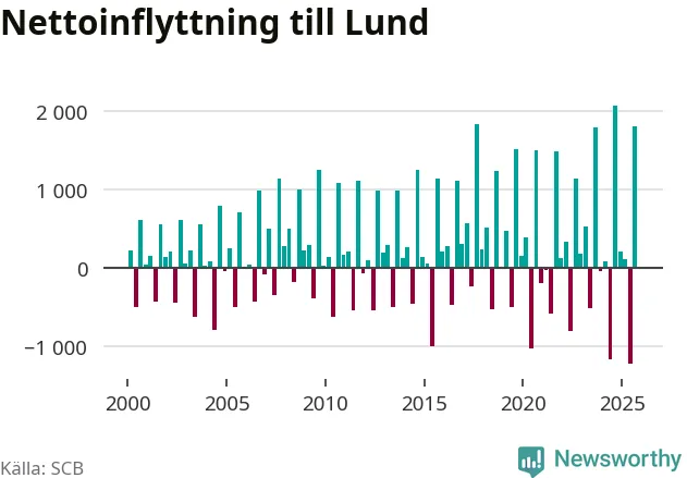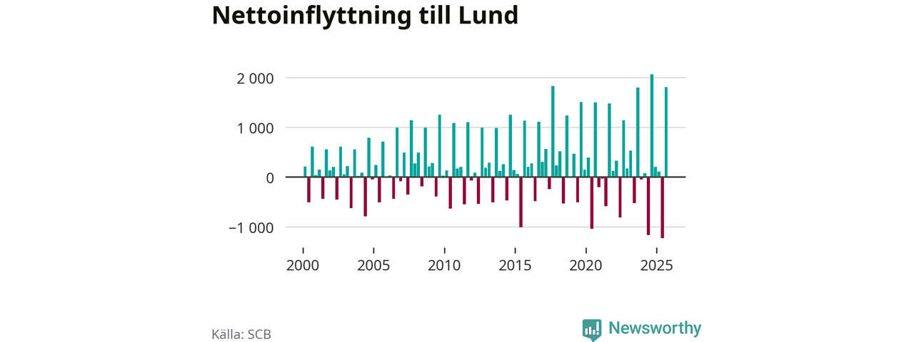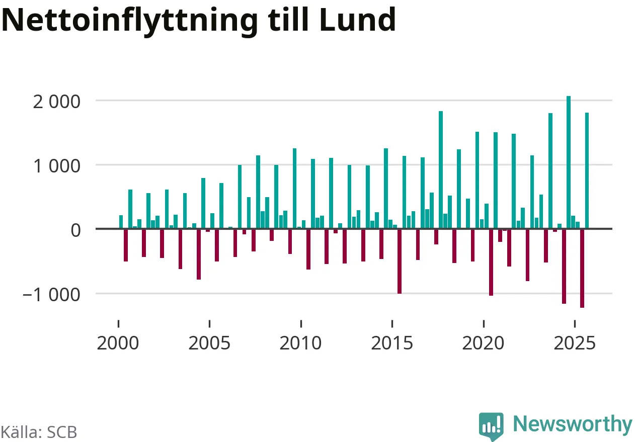 Under tredje kvartalet 2025 flyttade 5 412 personer till kommunen medan 3 604 personer flyttade därifrån. Det är historiskt sett en stor inflyttning under ett kvartal – men samtidigt var utflyttningen relativt stor. Sedan seklets början har Lund oftast haft ett positivt flyttnetto, inklusive det senaste kvartalet.