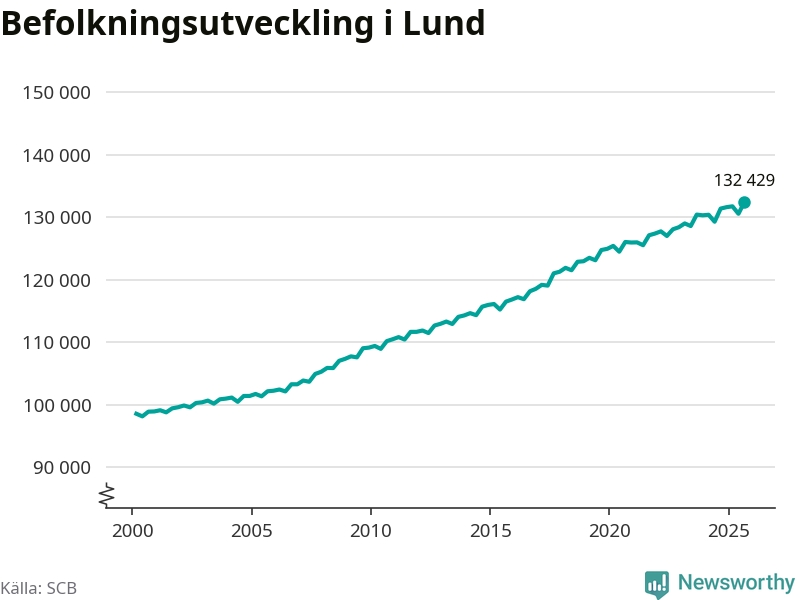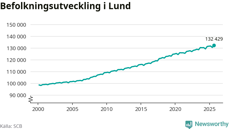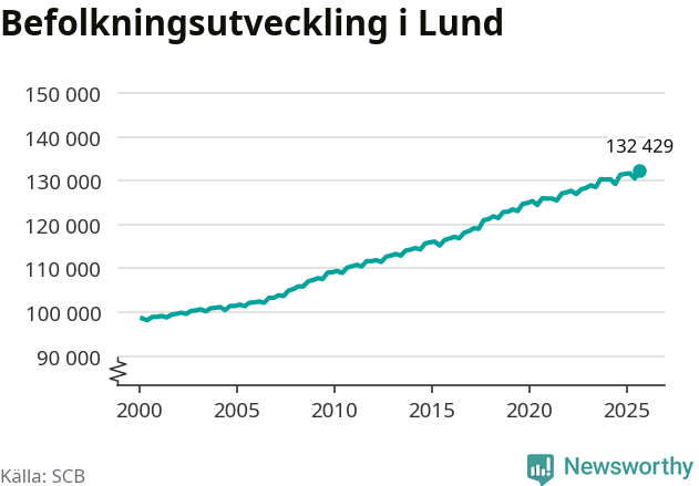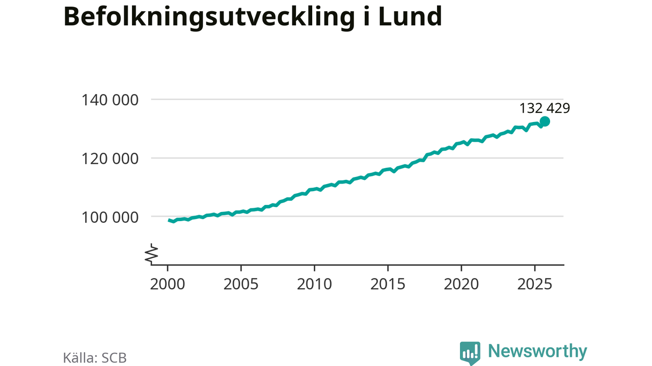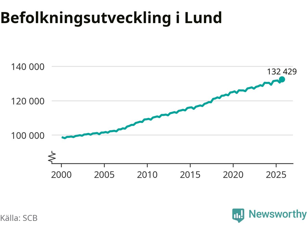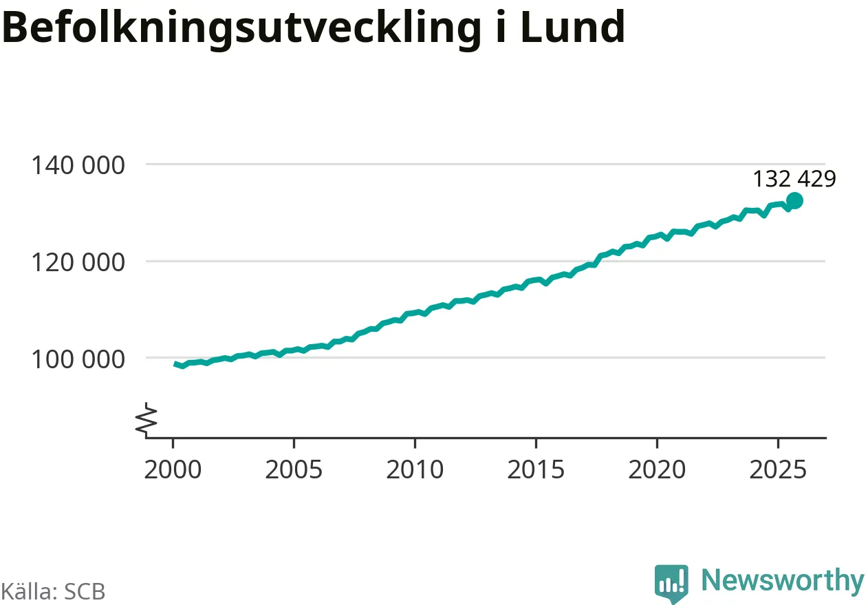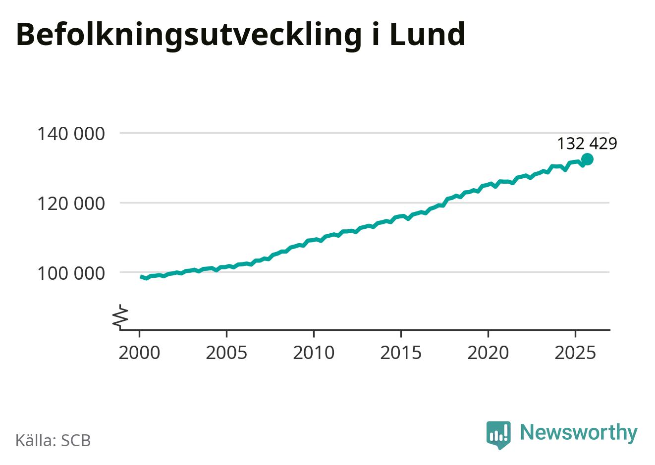 Befolkningen ökade i Lunds kommun under det tredje kvartalet 2025. Den 30 september bodde enligt SCB:s senaste siffror 132 429 personer i kommunen, vilket är 1 895 fler än i slutet av andra kvartalet. Lund ökade därmed mest av alla kommuner i Sverige procentuellt sett.