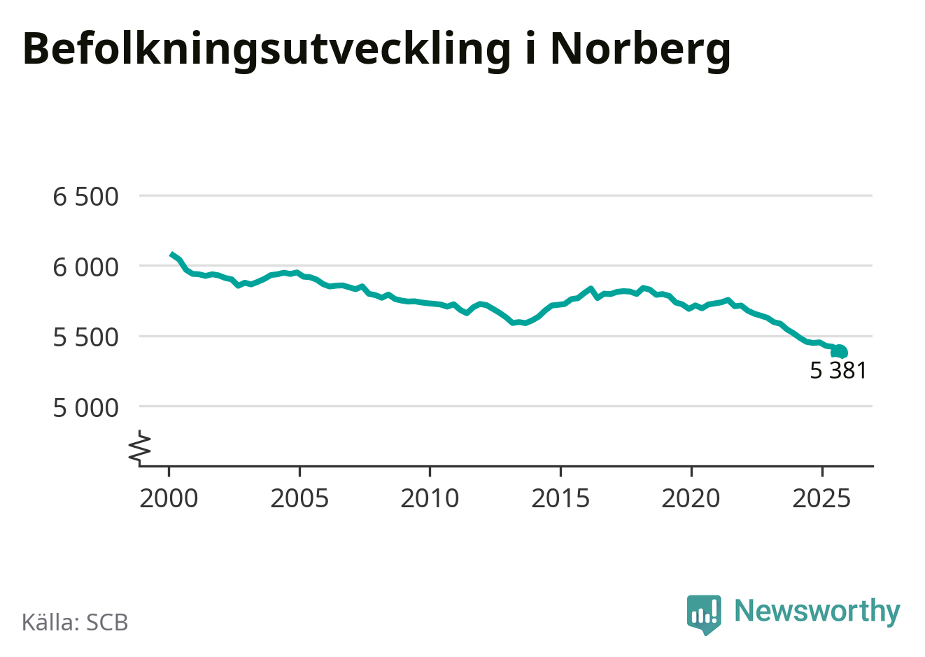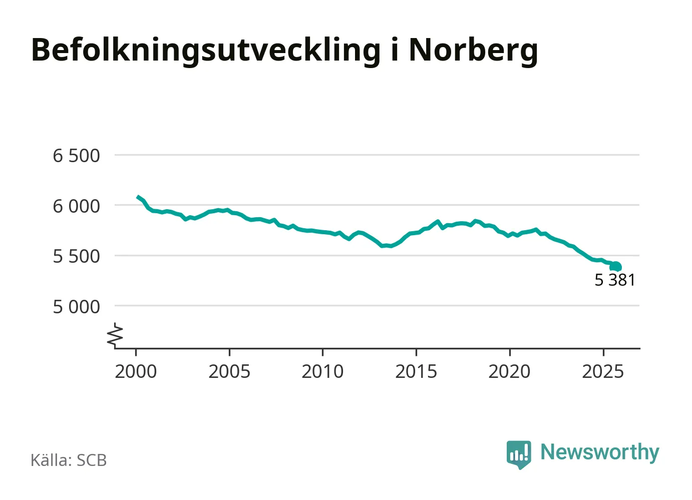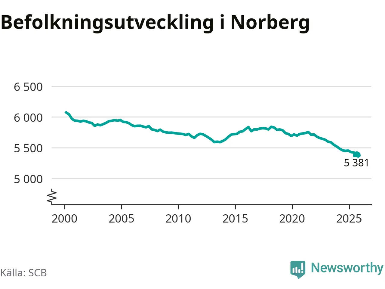 Befolkningen minskade i Norbergs kommun under det tredje kvartalet 2025. Den 30 september bodde enligt SCB:s senaste siffror 5 381 personer i kommunen, vilket är 40 färre än i slutet av andra kvartalet. Minskningen är den näst största i Västmanland procentuellt sett.