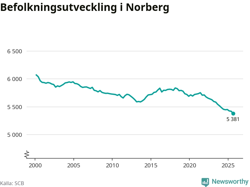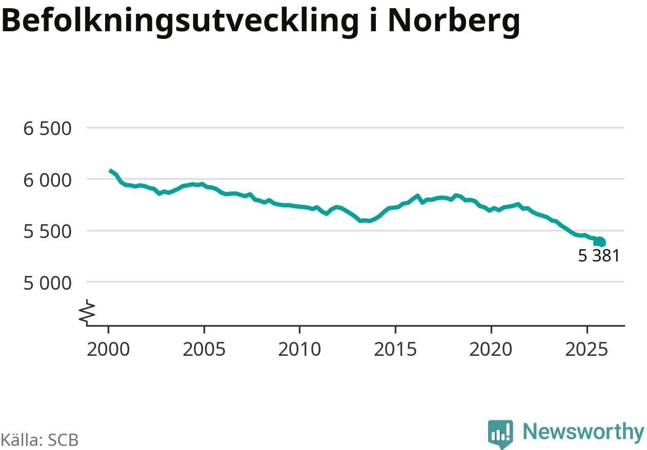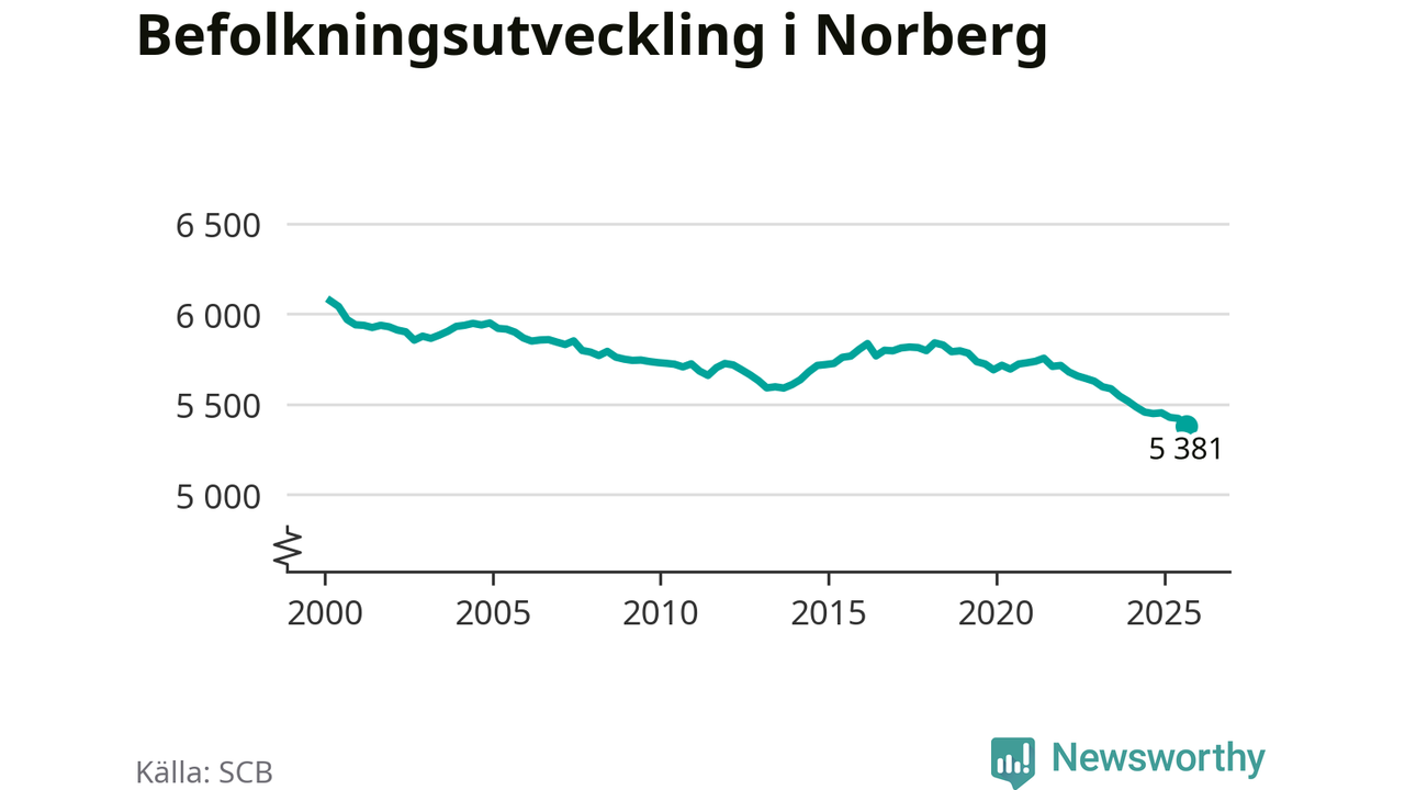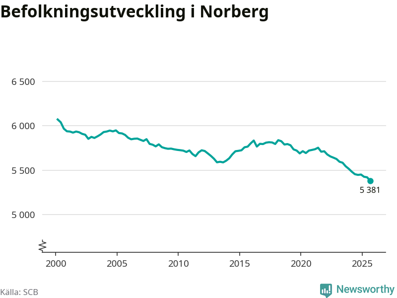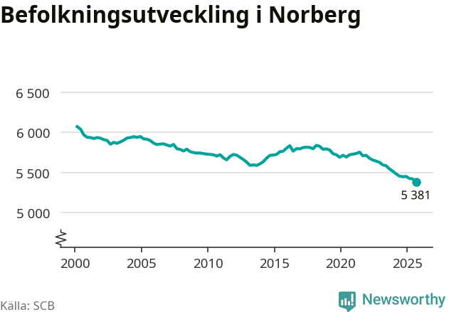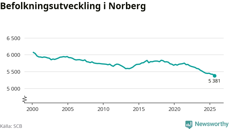 Befolkningen minskade i Norbergs kommun under det tredje kvartalet 2025. Den 30 september bodde enligt SCB:s senaste siffror 5 381 personer i kommunen, vilket är 40 färre än i slutet av andra kvartalet. Minskningen är den näst största i Västmanland procentuellt sett.