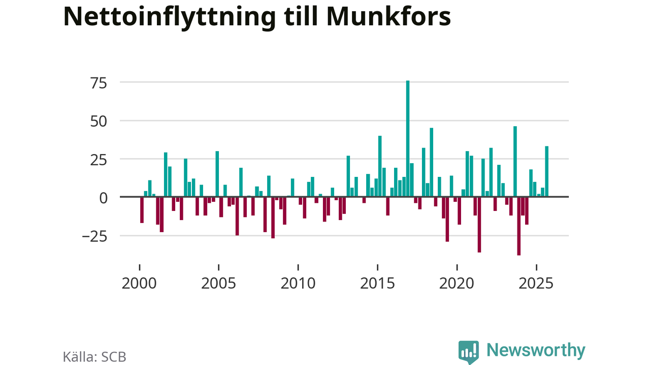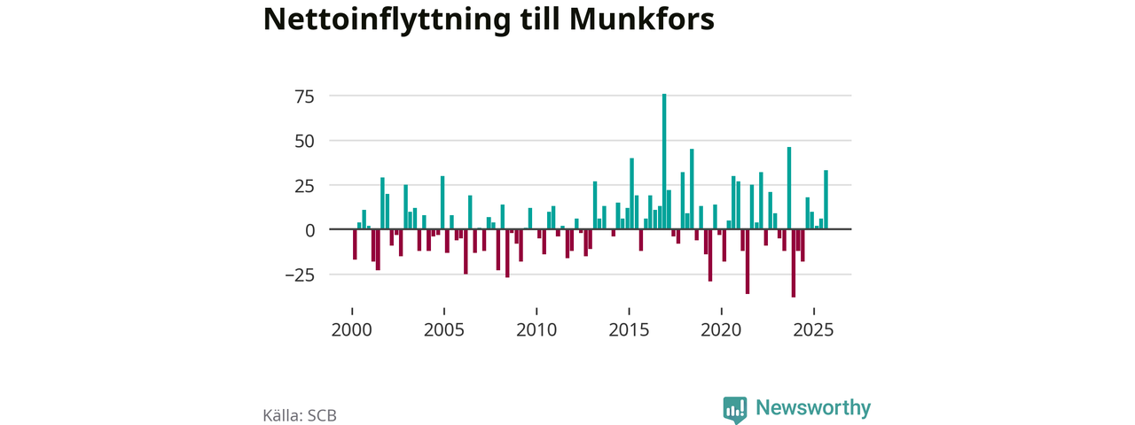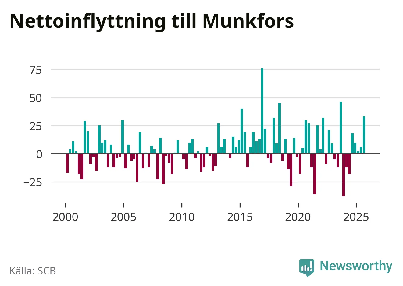 Munkfors kommun ökade med 30 invånare under tredje kvartalet 2025. Det är den största procentuella ökningen i Värmland, visar SCB:s senaste befolkningsstatistik.