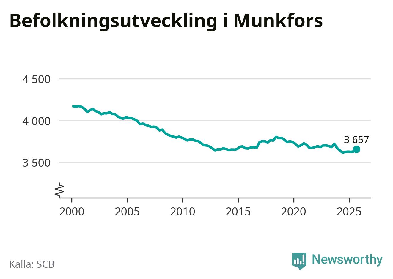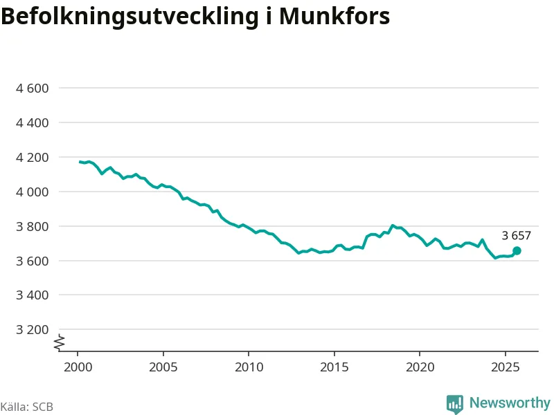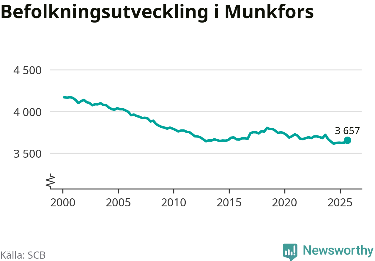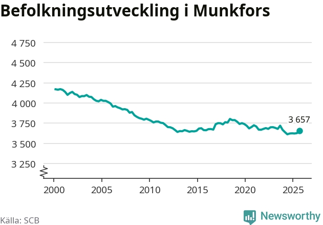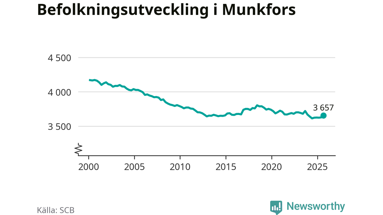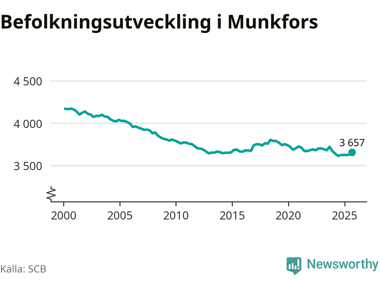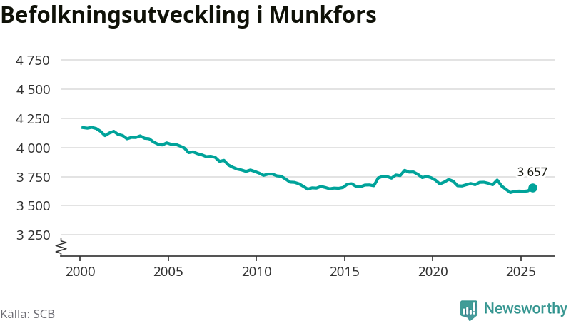 Befolkningen ökade i Munkfors kommun under det tredje kvartalet 2025. Den 30 september bodde enligt SCB:s senaste siffror 3 657 personer i kommunen, vilket är 30 fler än i slutet av andra kvartalet. Folkökningen är den största i Värmland procentuellt sett.