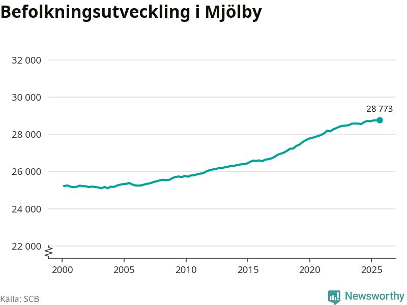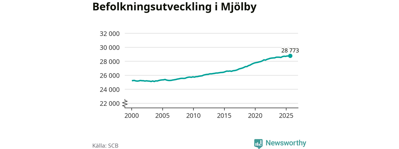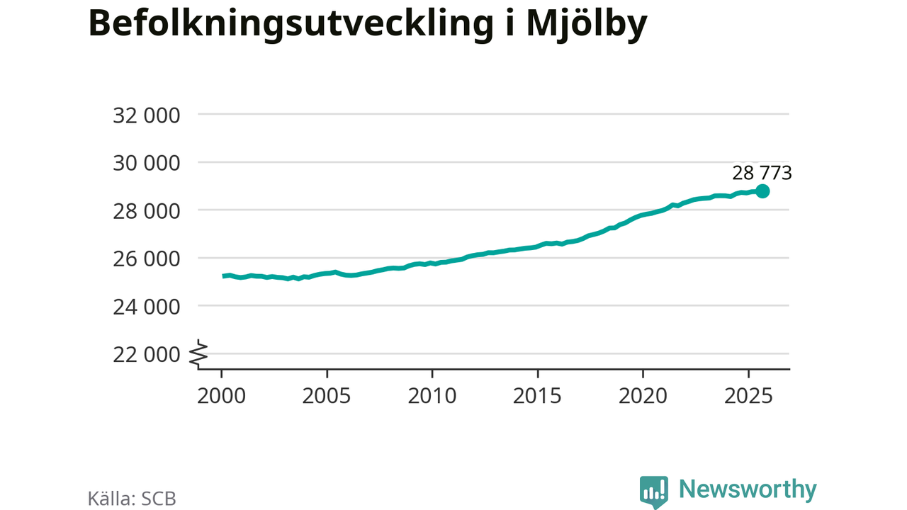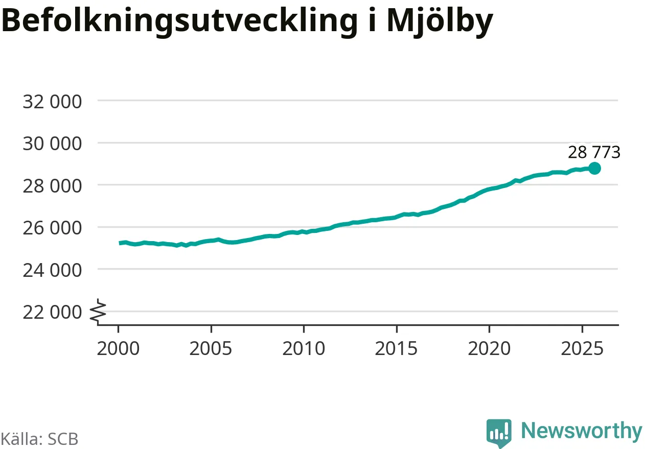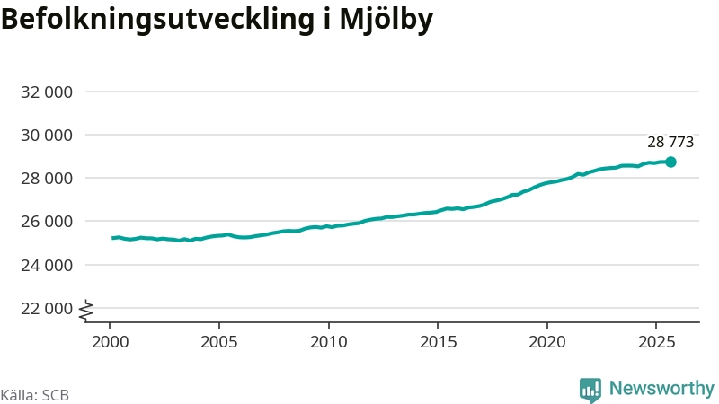 Befolkningen ökade i Mjölby kommun under det tredje kvartalet 2025. Den 30 september bodde enligt SCB:s senaste siffror 28 773 personer i kommunen, vilket är 22 fler än i slutet av andra kvartalet. Folkökningen är procentuellt sett en av de största i Östergötland.