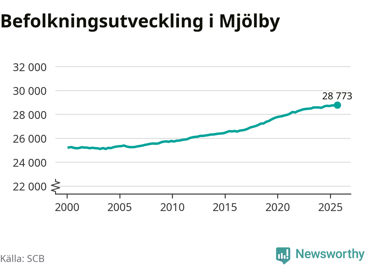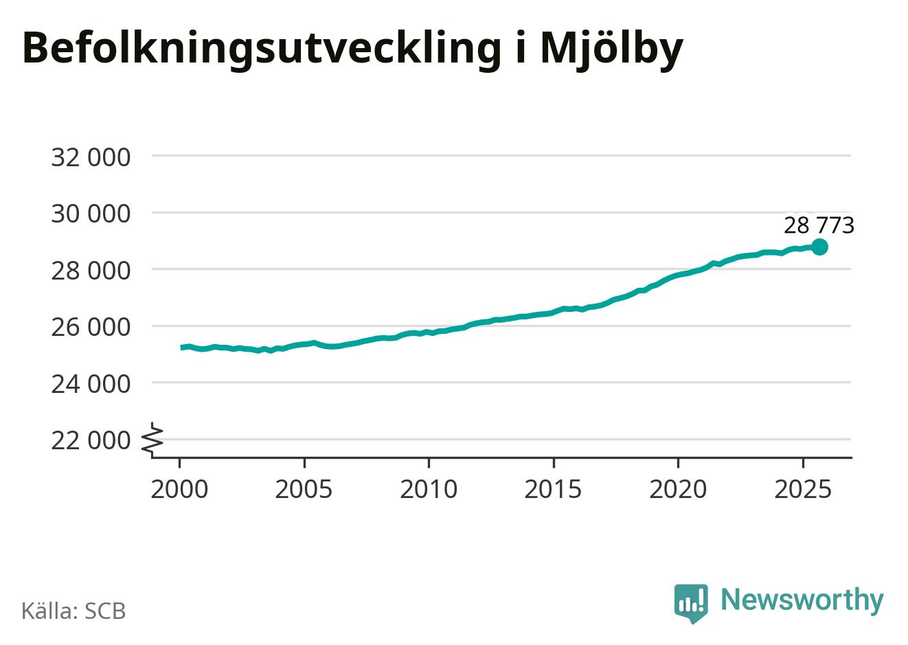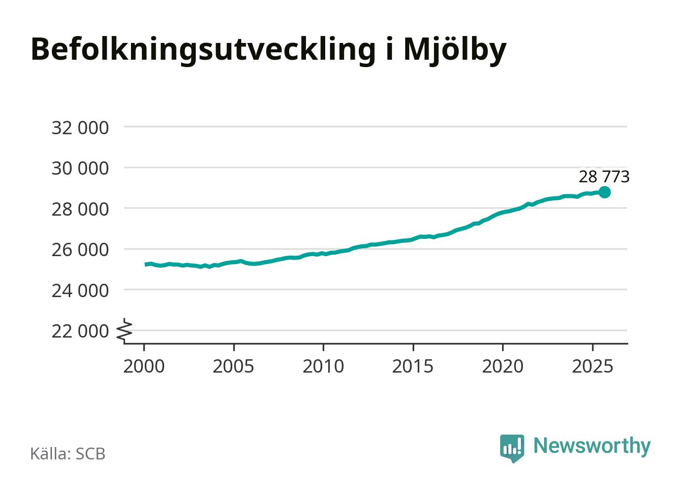 Befolkningen ökade i Mjölby kommun under det tredje kvartalet 2025. Den 30 september bodde enligt SCB:s senaste siffror 28 773 personer i kommunen, vilket är 22 fler än i slutet av andra kvartalet. Folkökningen är procentuellt sett en av de största i Östergötland.