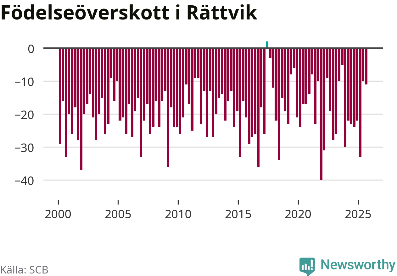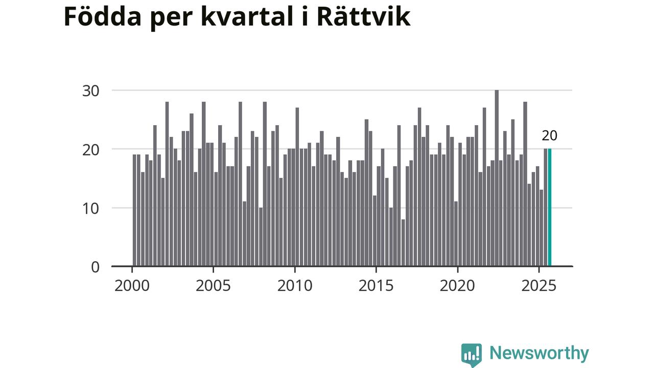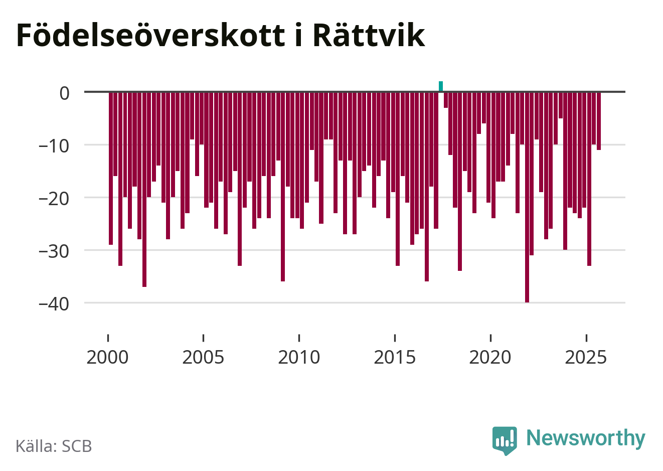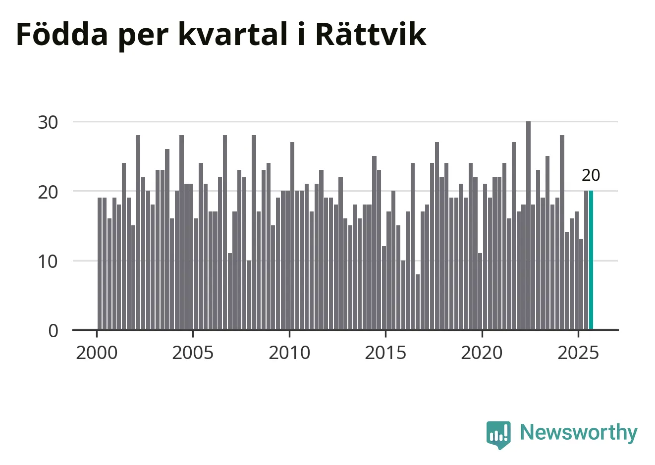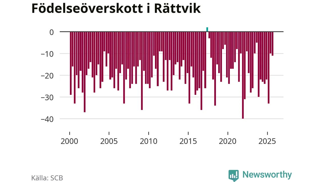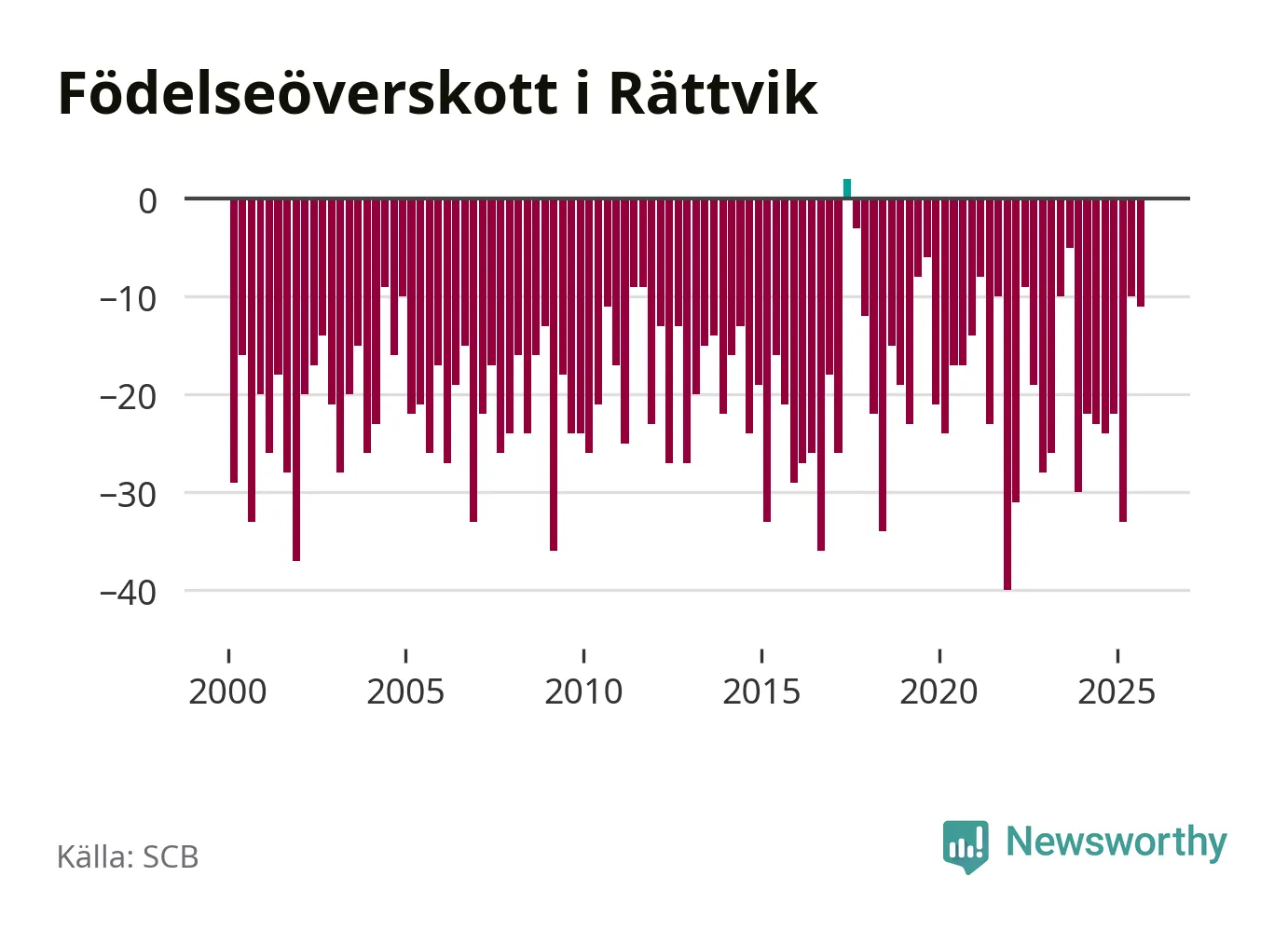 Enligt SCB:s siffror föddes 20 barn i Rättvik under det senaste kvartalet. Samtidigt avled 31 personer. Rättvik hade alltså ett negativt födelsenetto, vilket kommunen historiskt sett nästan alltid har haft.