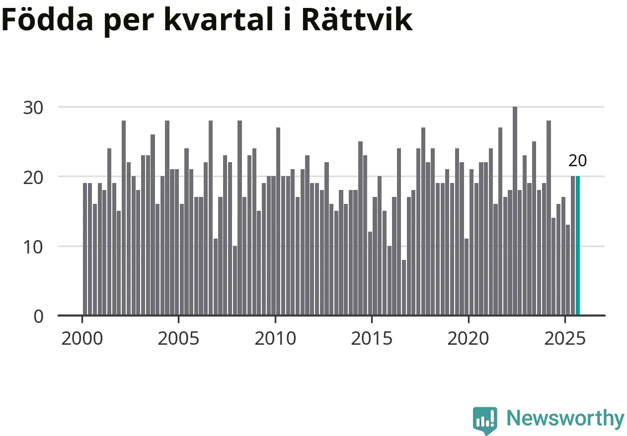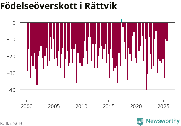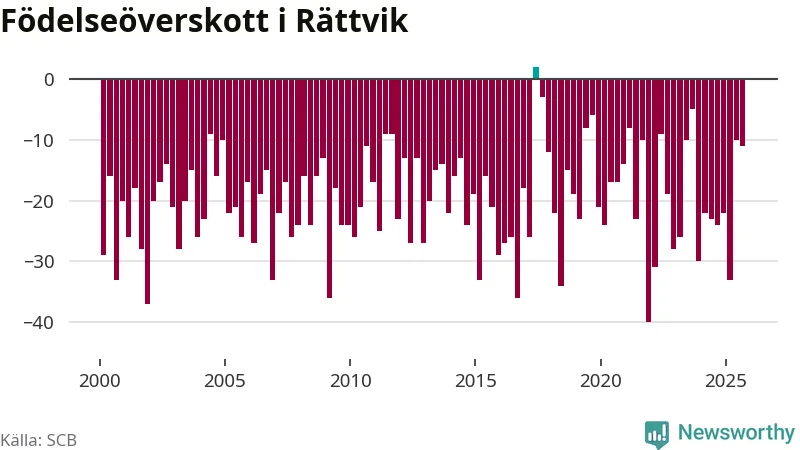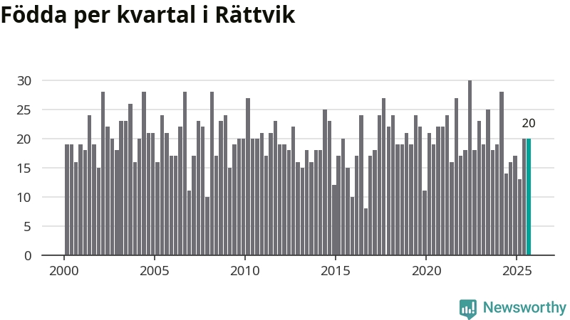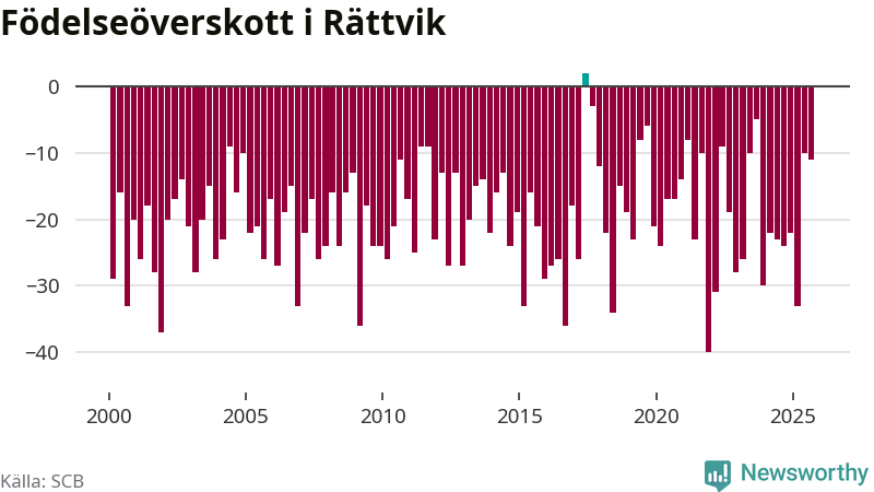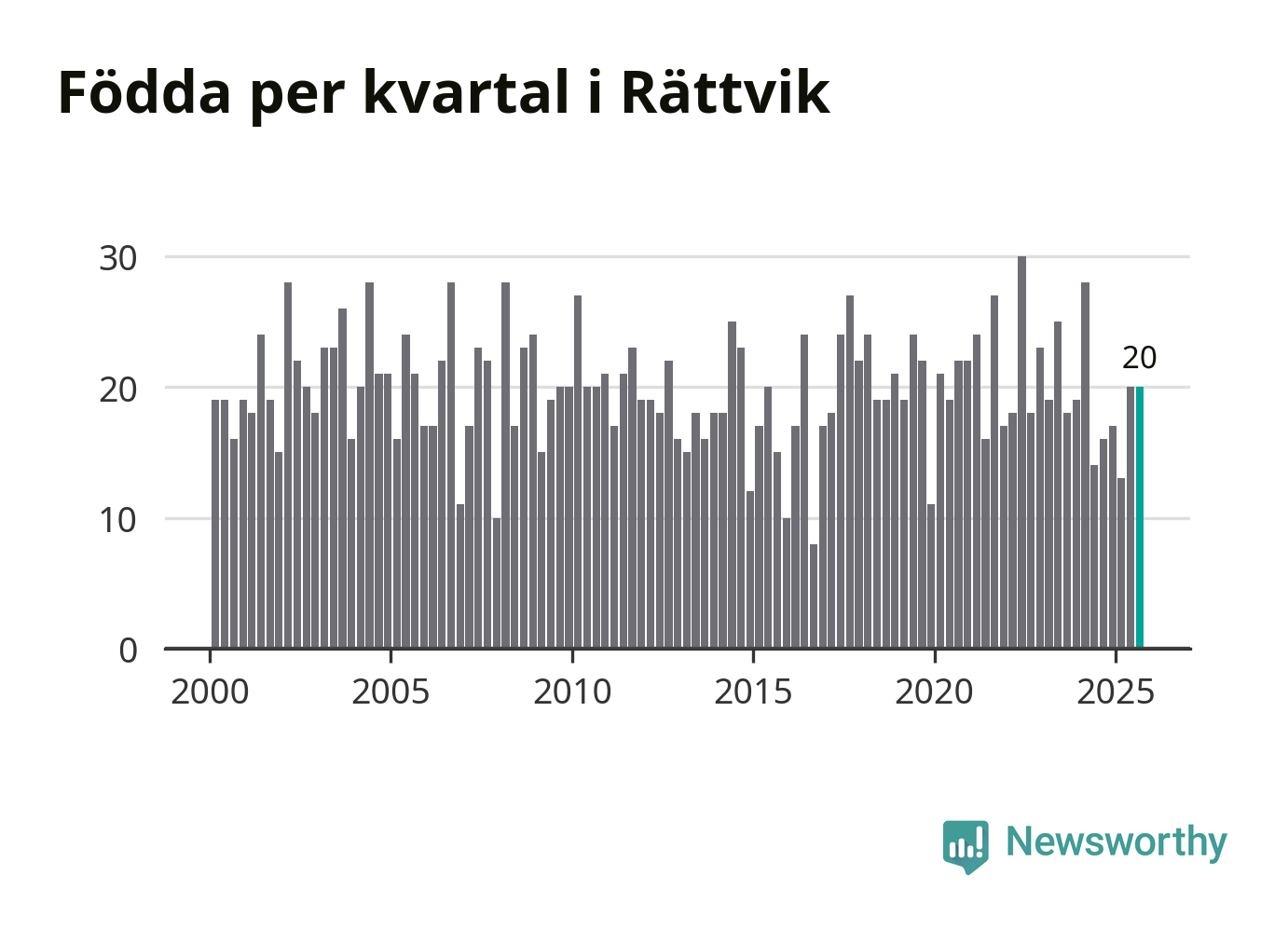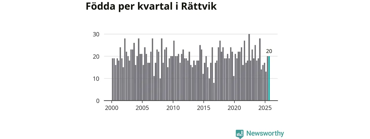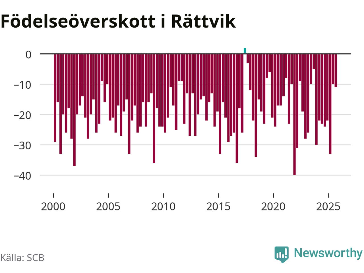 Enligt SCB:s siffror föddes 20 barn i Rättvik under det senaste kvartalet. Samtidigt avled 31 personer. Rättvik hade alltså ett negativt födelsenetto, vilket kommunen historiskt sett nästan alltid har haft.