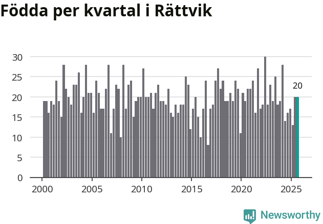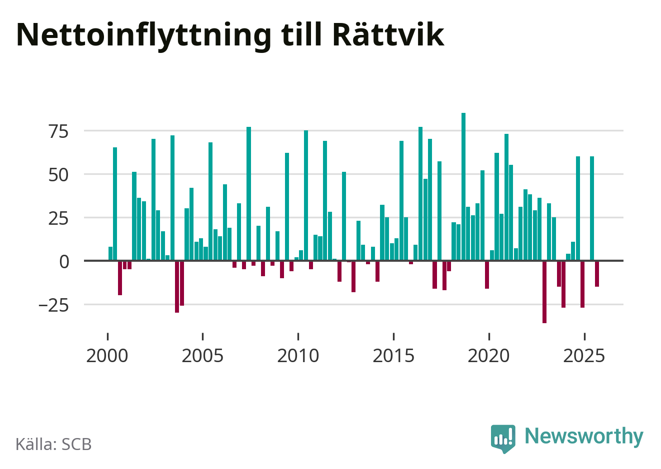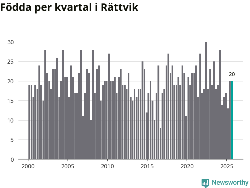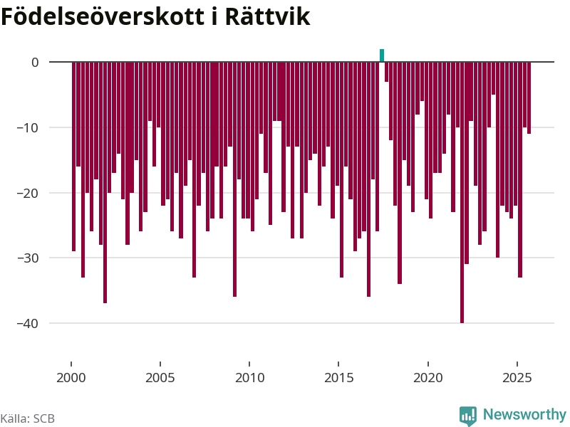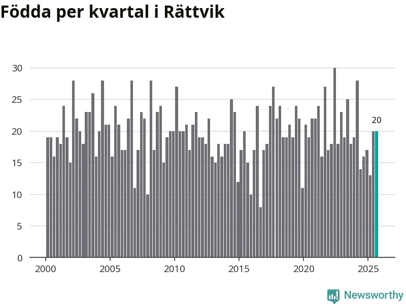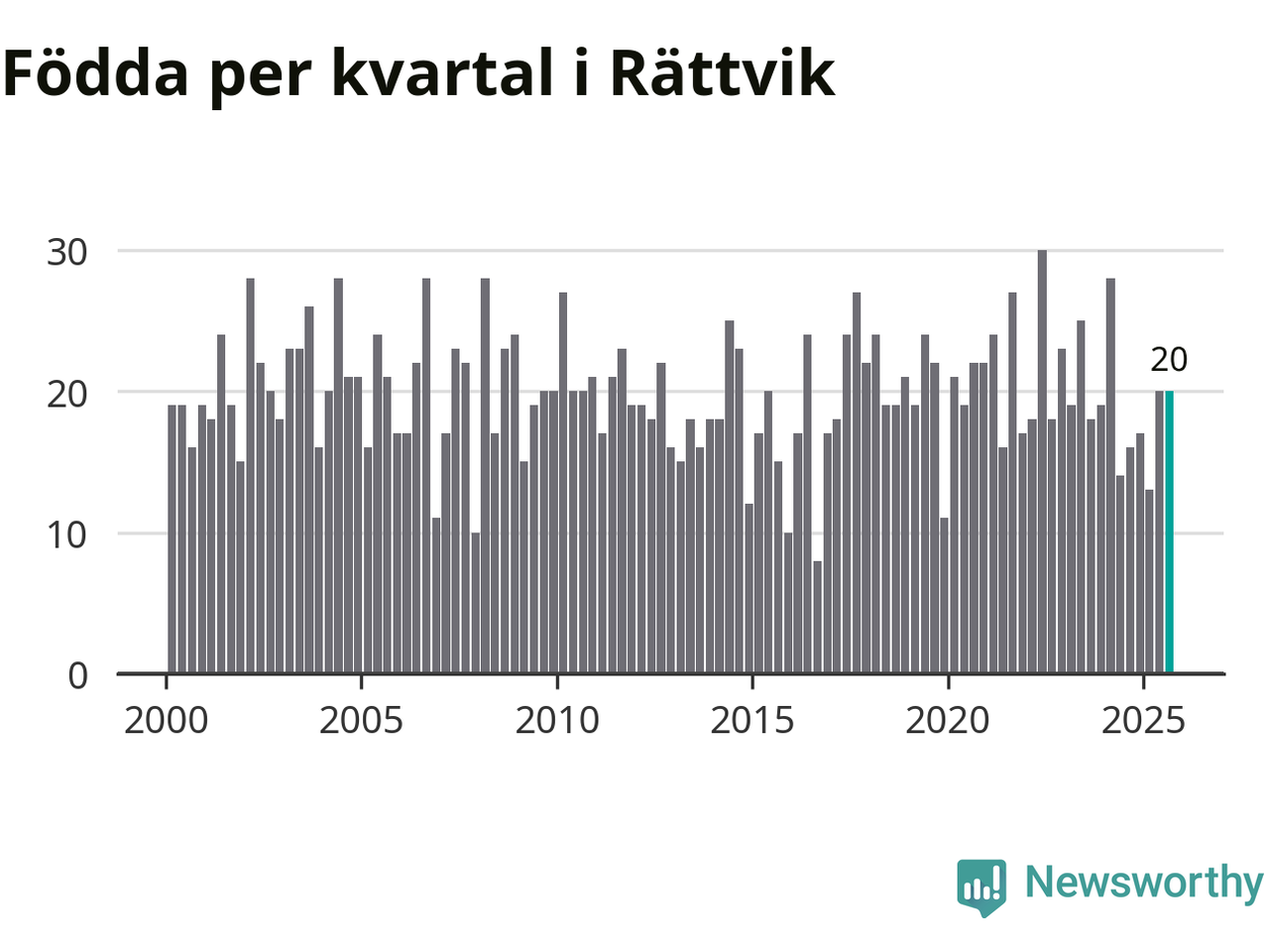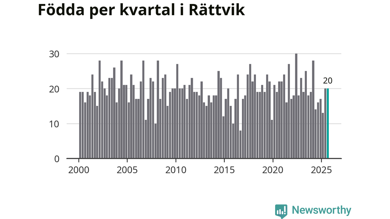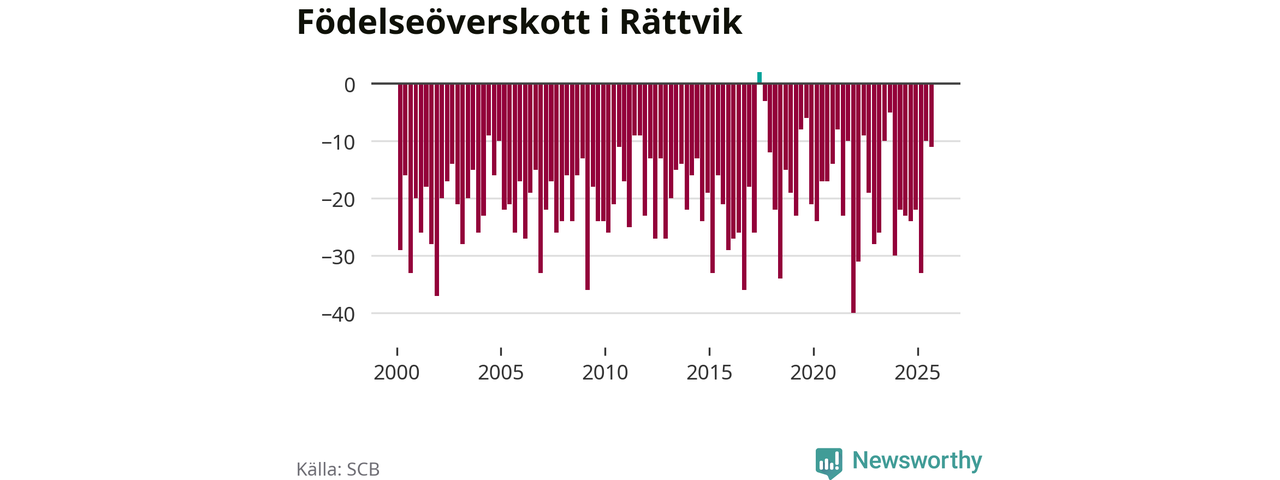 Enligt SCB:s siffror föddes 20 barn i Rättvik under det senaste kvartalet. Samtidigt avled 31 personer. Rättvik hade alltså ett negativt födelsenetto, vilket kommunen historiskt sett nästan alltid har haft.