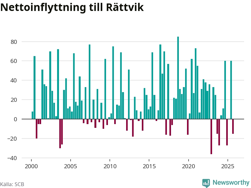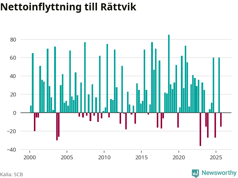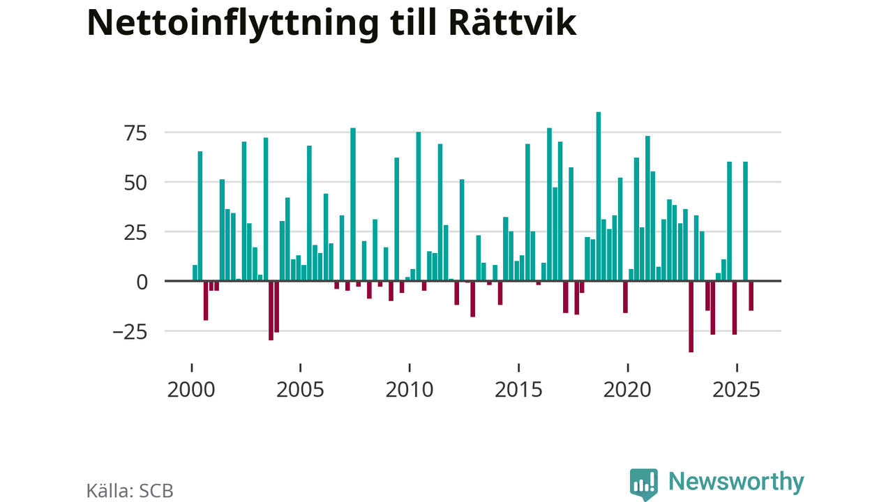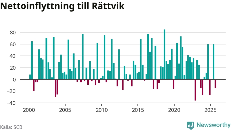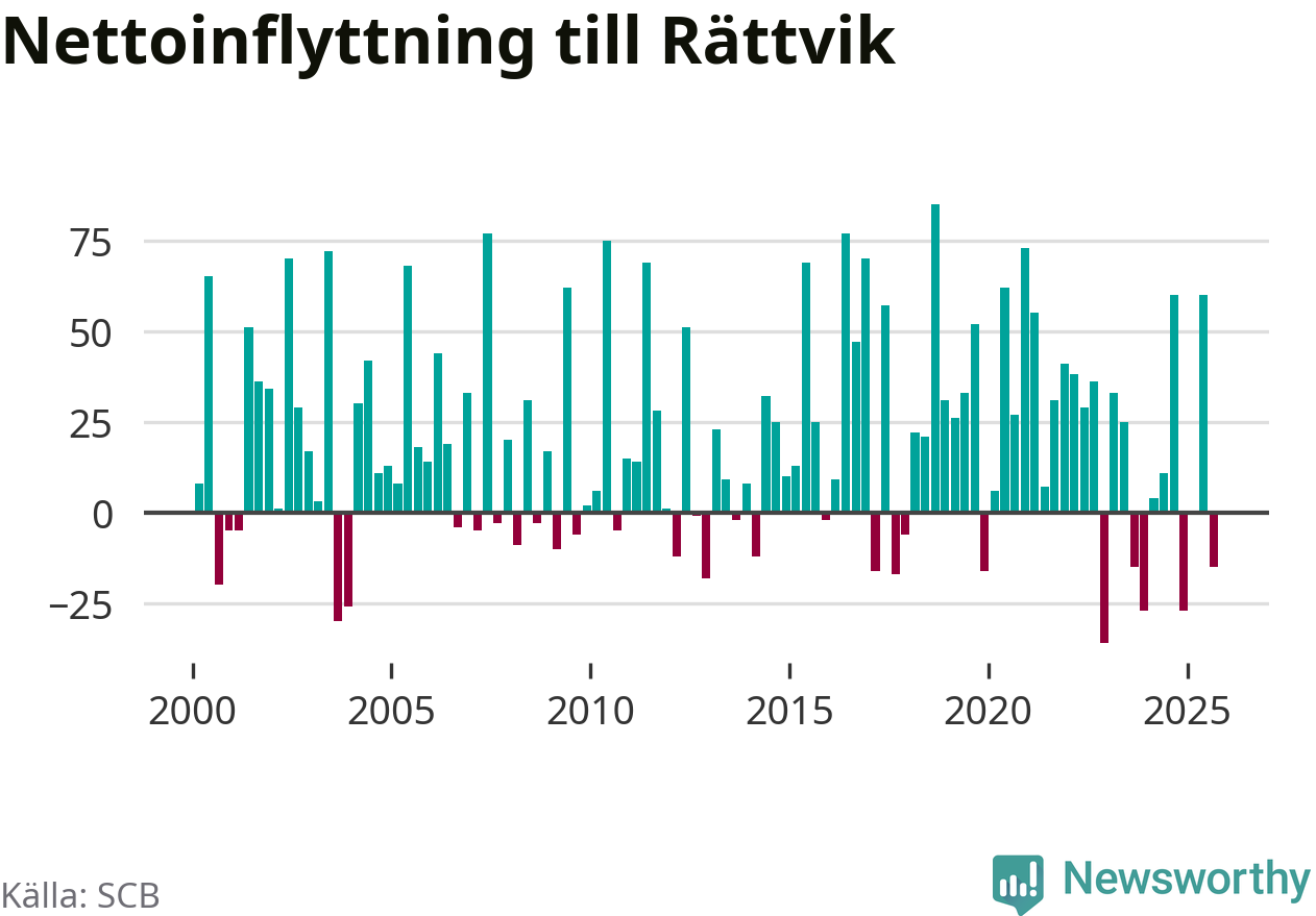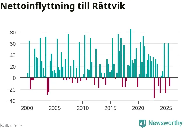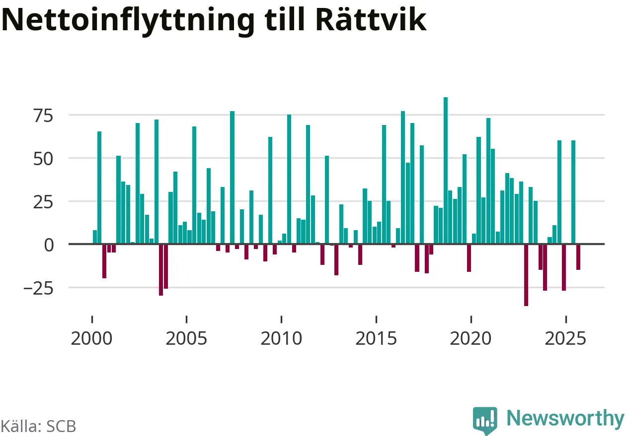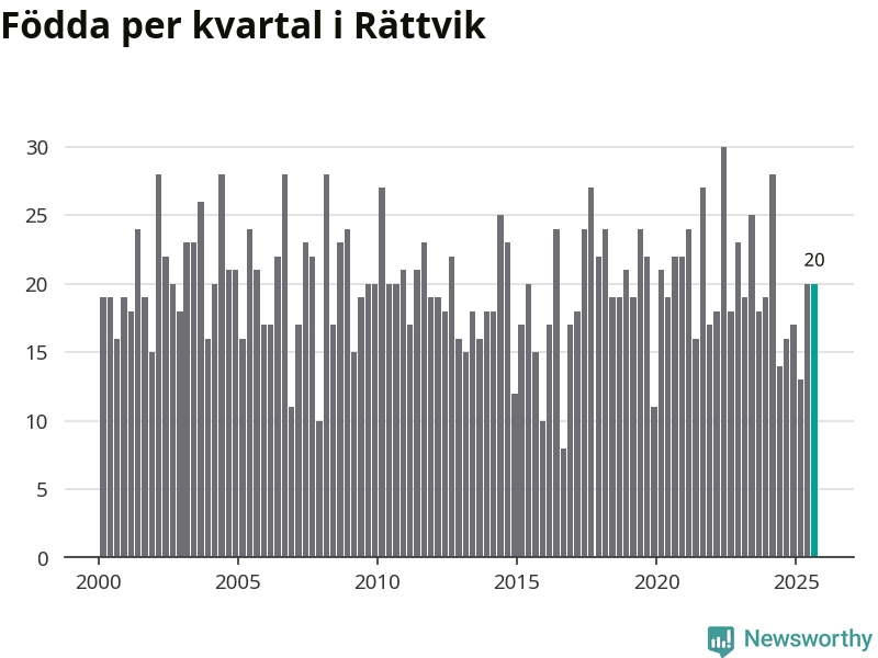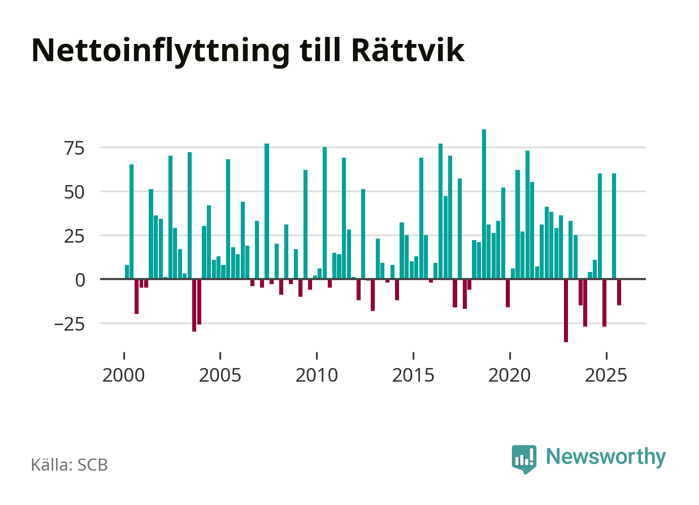 Enligt SCB:s siffror föddes 20 barn i Rättvik under det senaste kvartalet. Samtidigt avled 31 personer. Rättvik hade alltså ett negativt födelsenetto, vilket kommunen historiskt sett nästan alltid har haft.