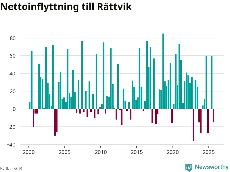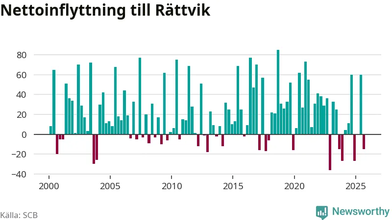 Under tredje kvartalet 2025 flyttade 144 personer till kommunen medan 159 personer flyttade därifrån. Det är historiskt sett en stor utflyttning under ett kvartal. Sedan seklets början har Rättvik oftast haft ett positivt flyttnetto.
