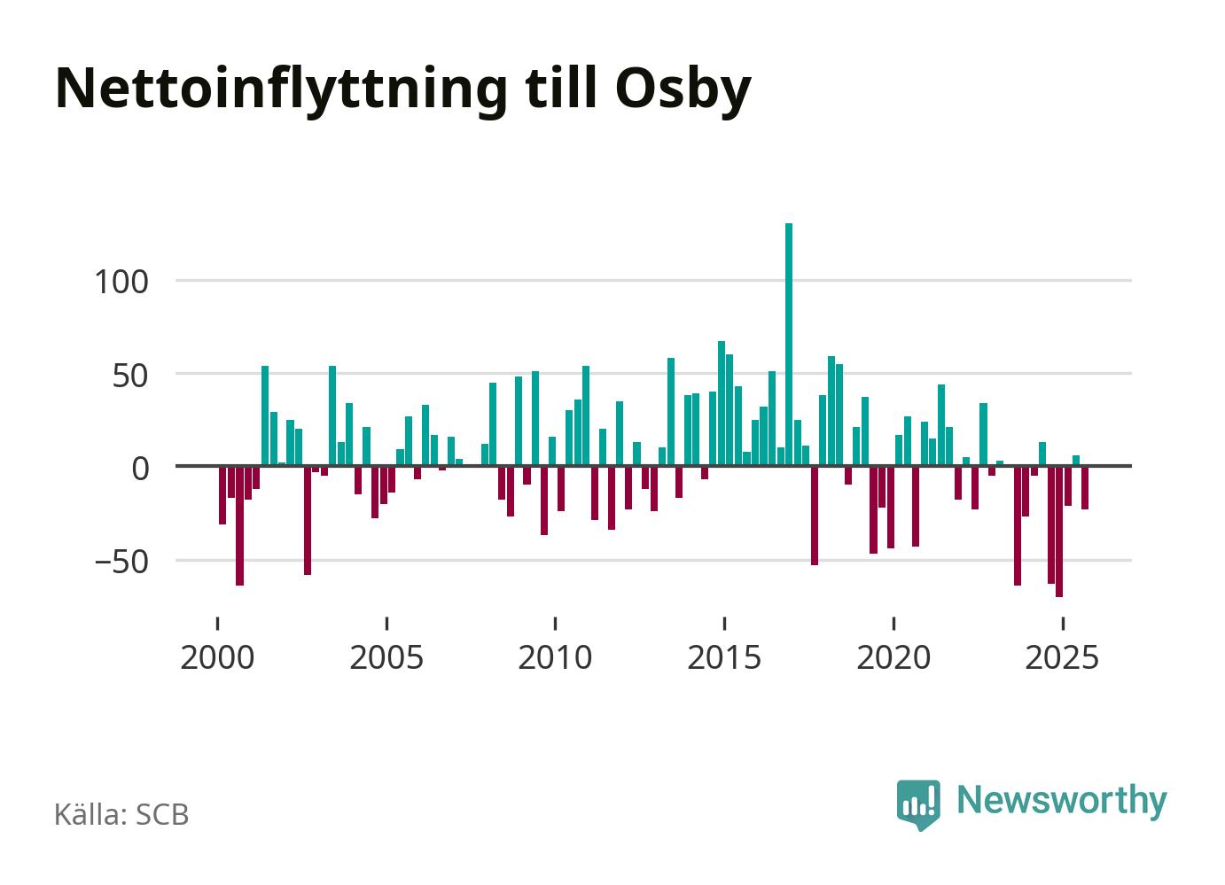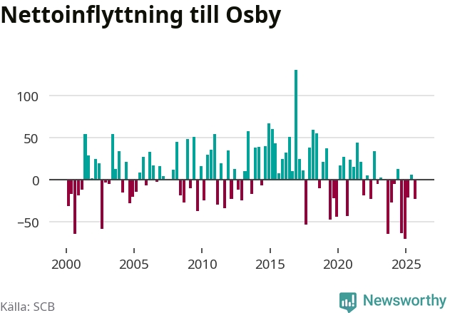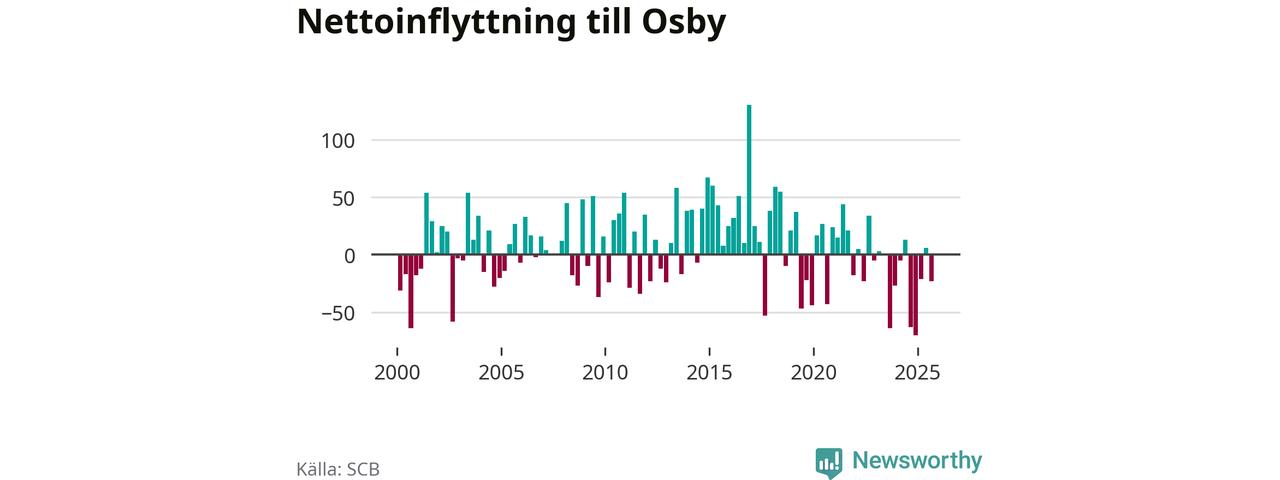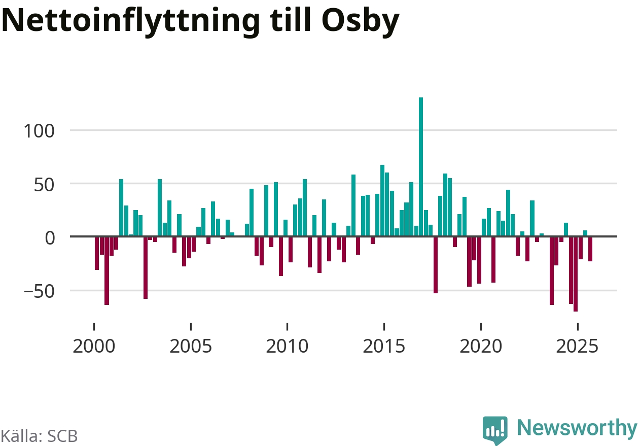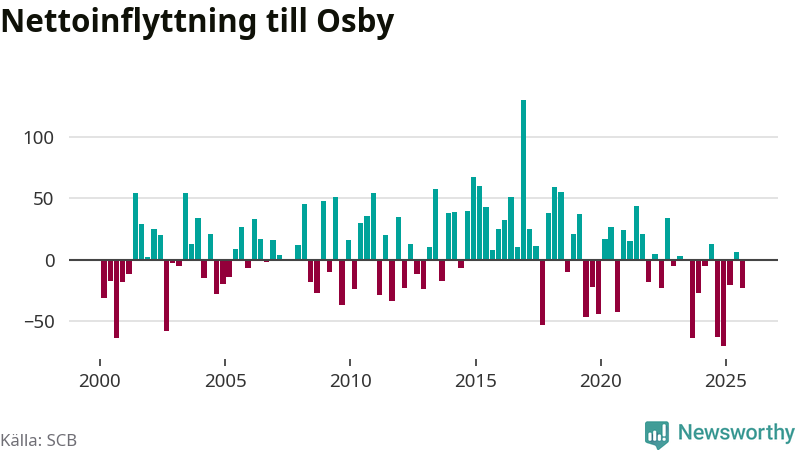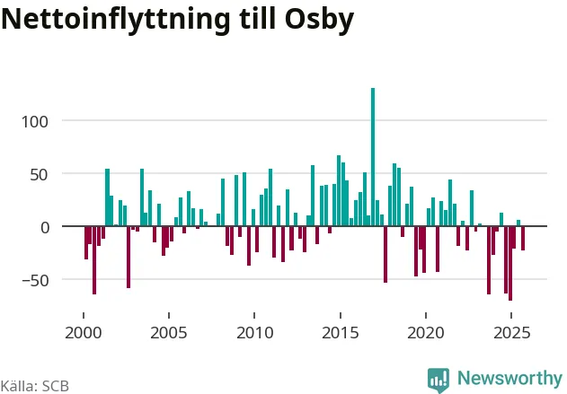 Under tredje kvartalet 2025 flyttade 184 personer till kommunen medan 207 personer flyttade därifrån. Sedan seklets början har Osby oftast haft ett positivt flyttnetto.