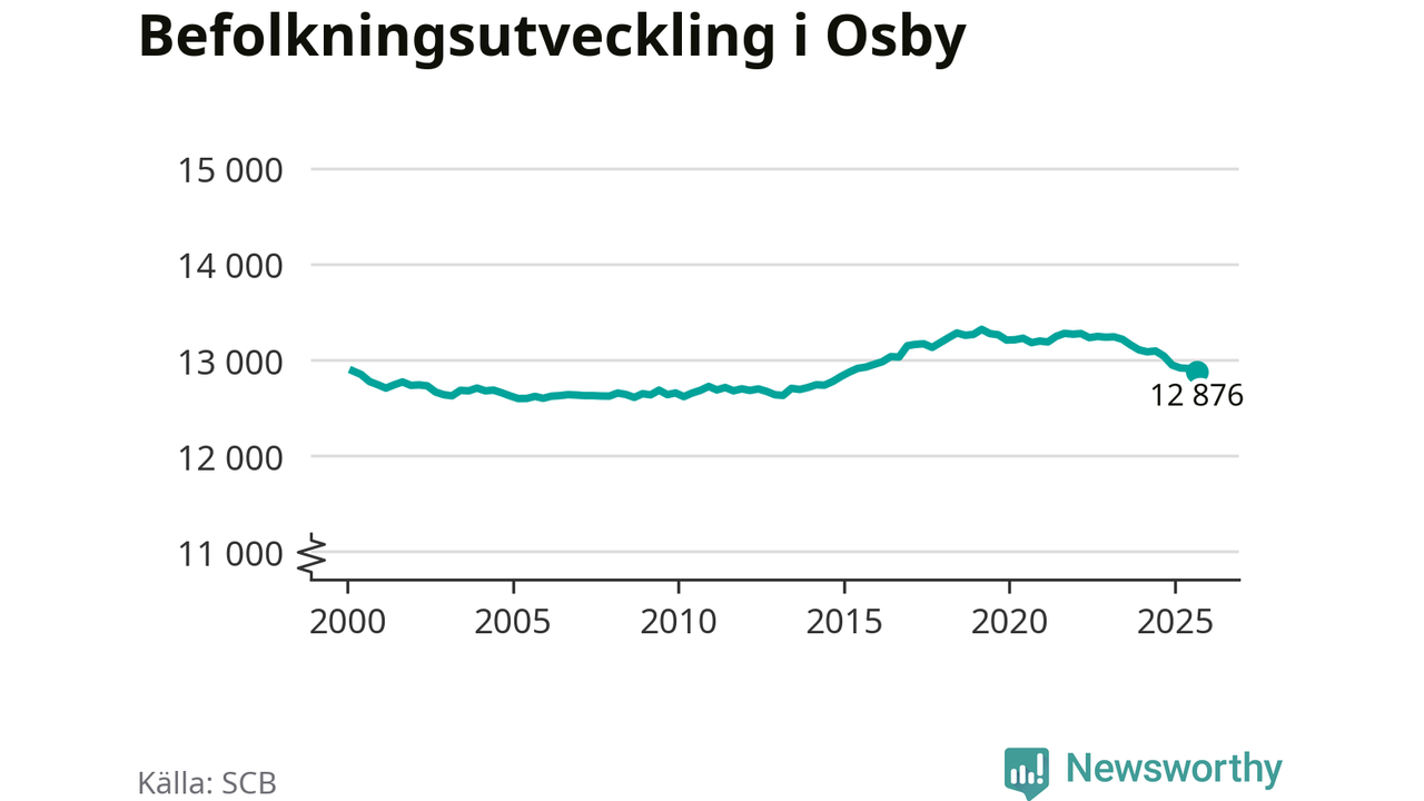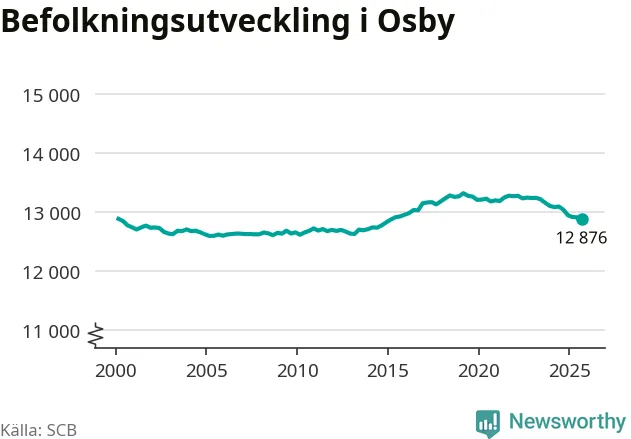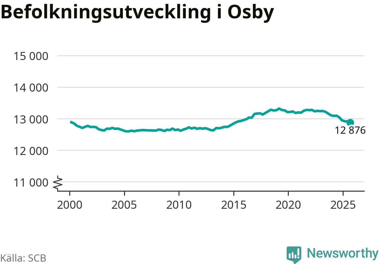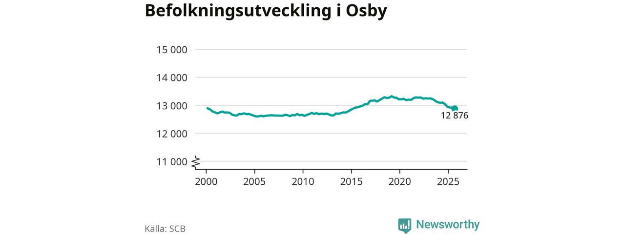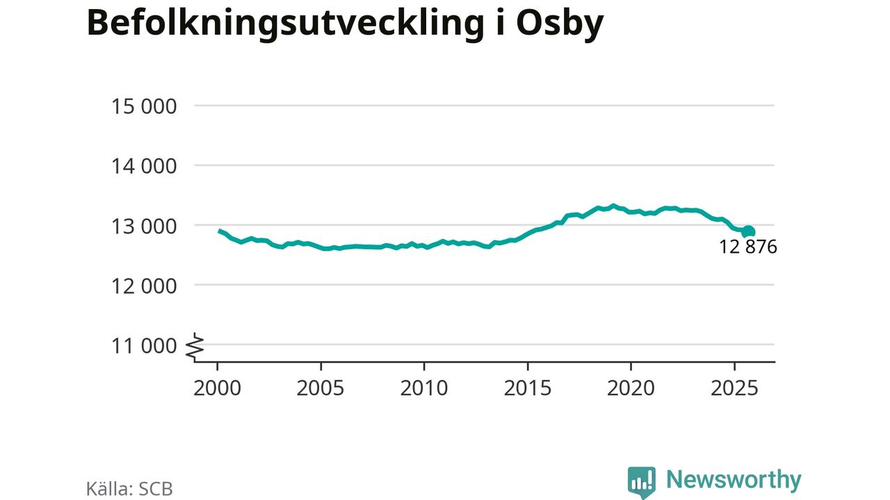 Befolkningen minskade i Osby kommun under det tredje kvartalet 2025. Den 30 september bodde enligt SCB:s senaste siffror 12 876 personer i kommunen, vilket är 35 färre än i slutet av andra kvartalet. Minskningen är procentuellt sett en av de största i Skåne.