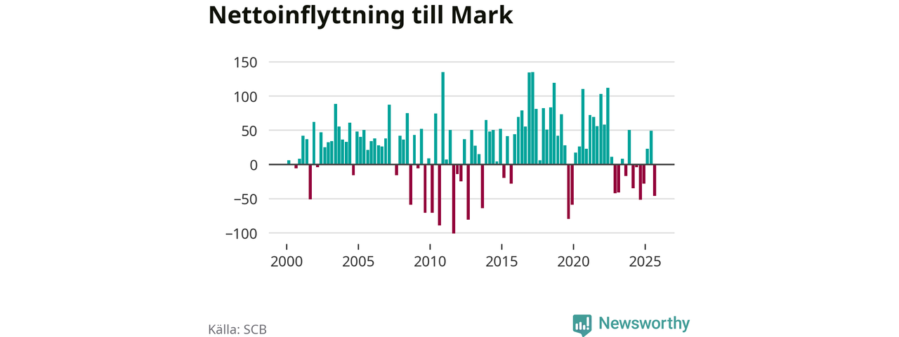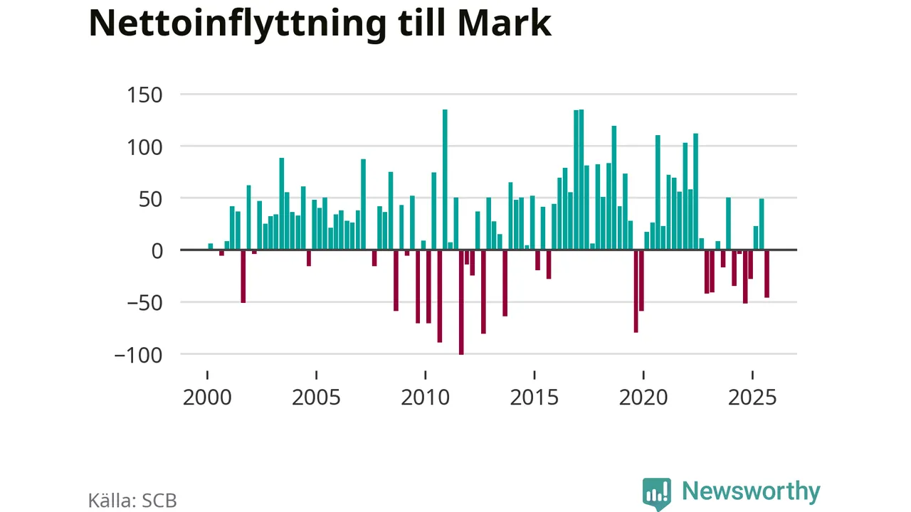 Fler flyttade ut än in: Befolkningen krymper i Mark