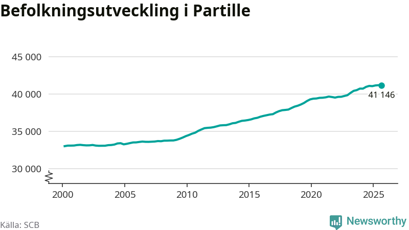 Befolkningen minskade i Partille kommun under det tredje kvartalet 2025. Den 30 september bodde enligt SCB:s senaste siffror 41 146 personer i kommunen, vilket är 43 färre än i slutet av andra kvartalet.