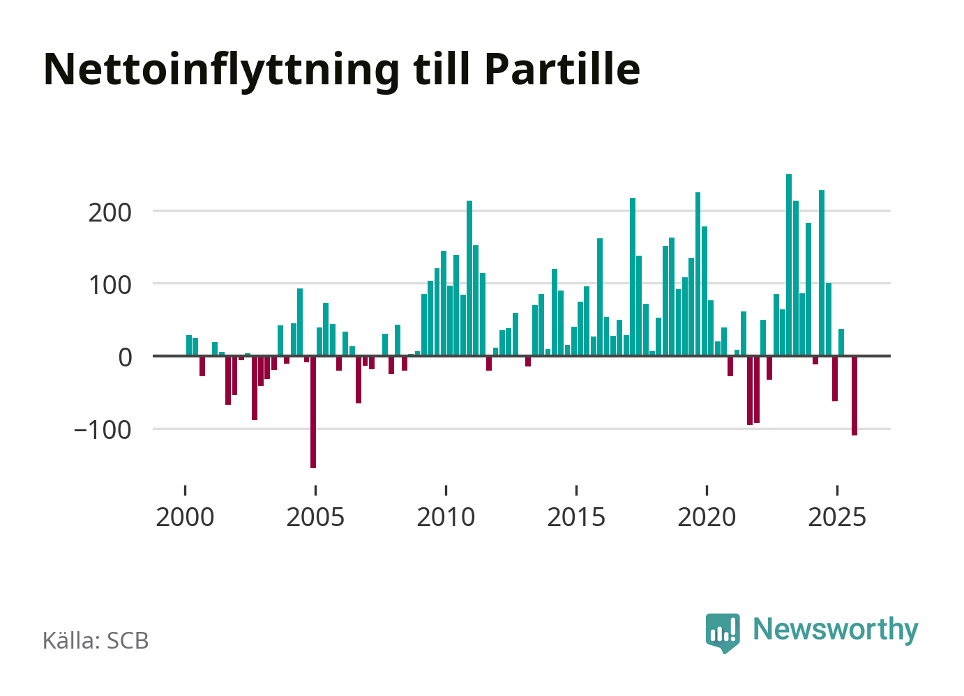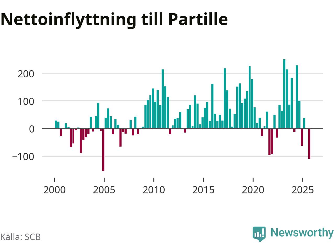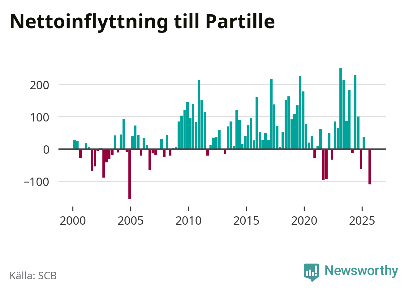 1 020 personer flyttade från Partille kommun under det tredje kvartalet 2025. Det är ovanligt många, visar SCB:s senaste befolkningssiffror.